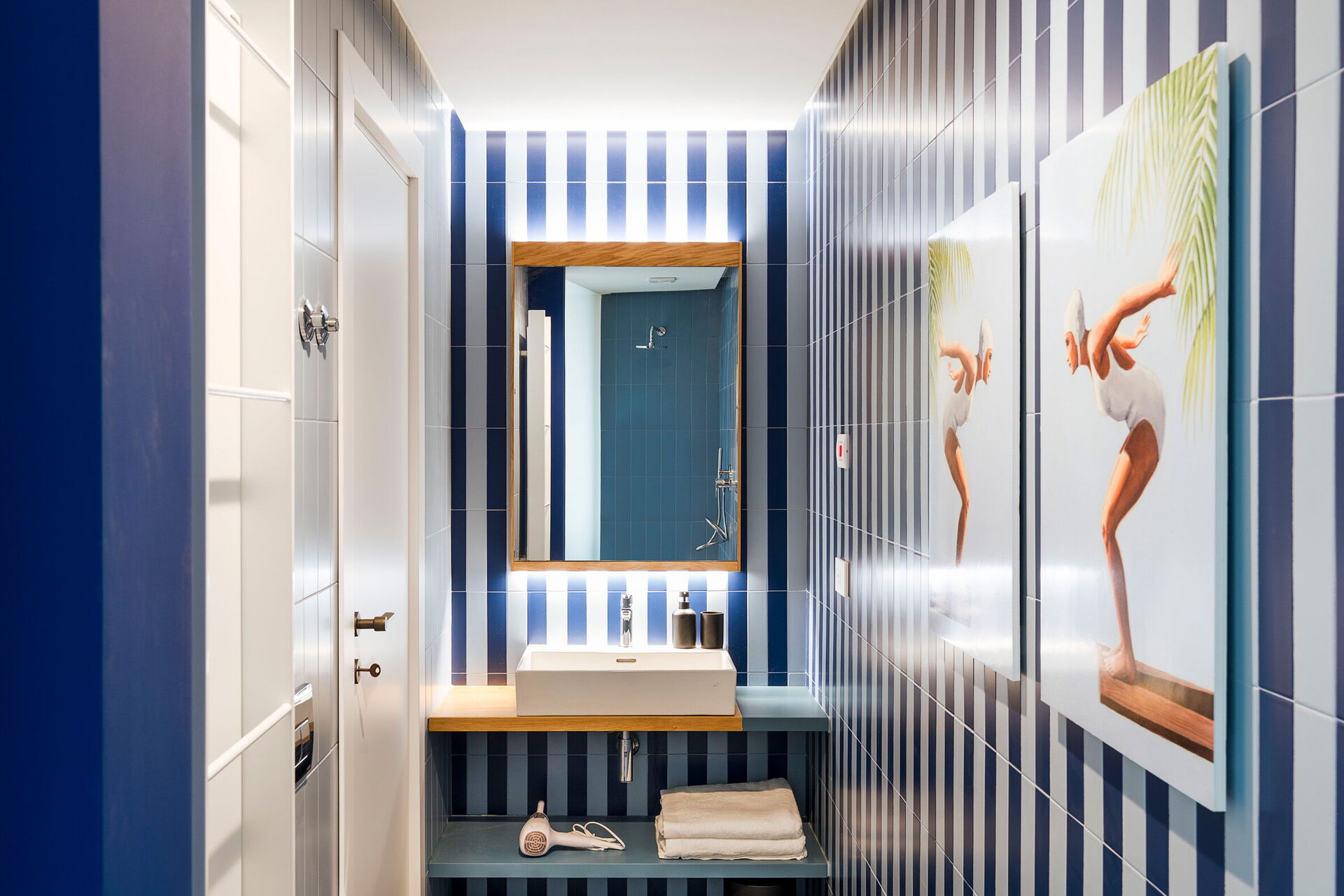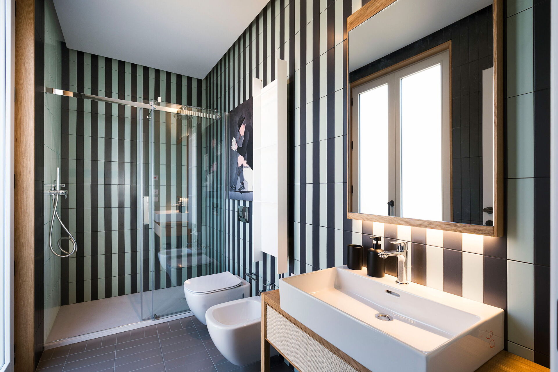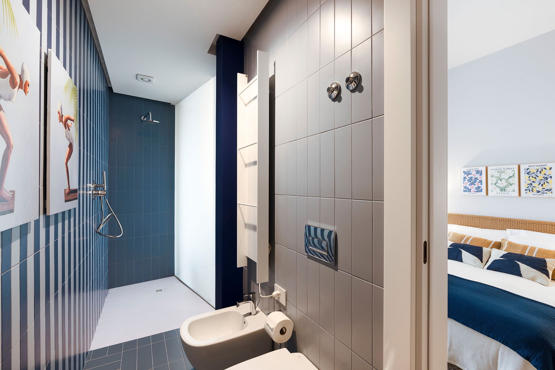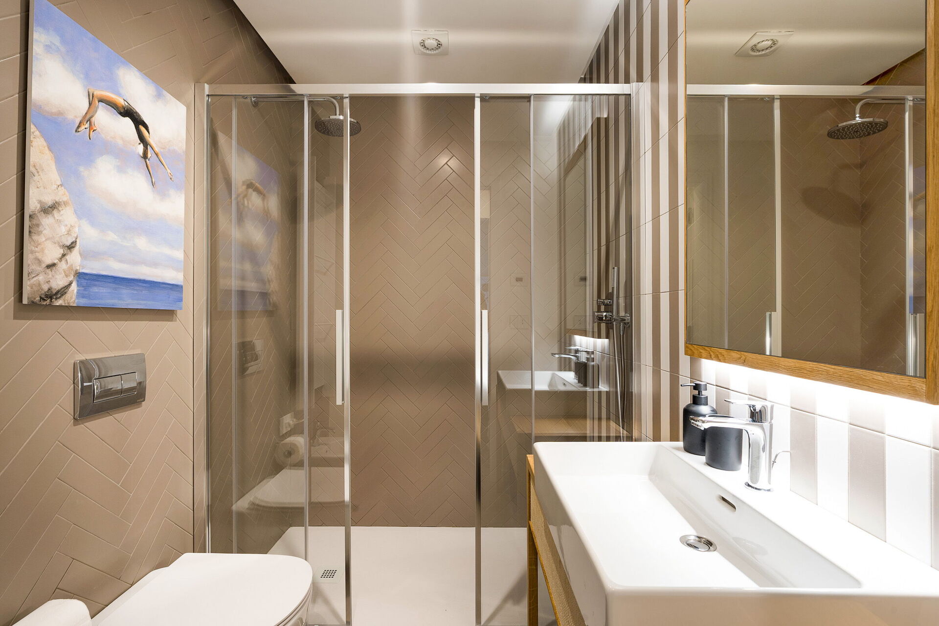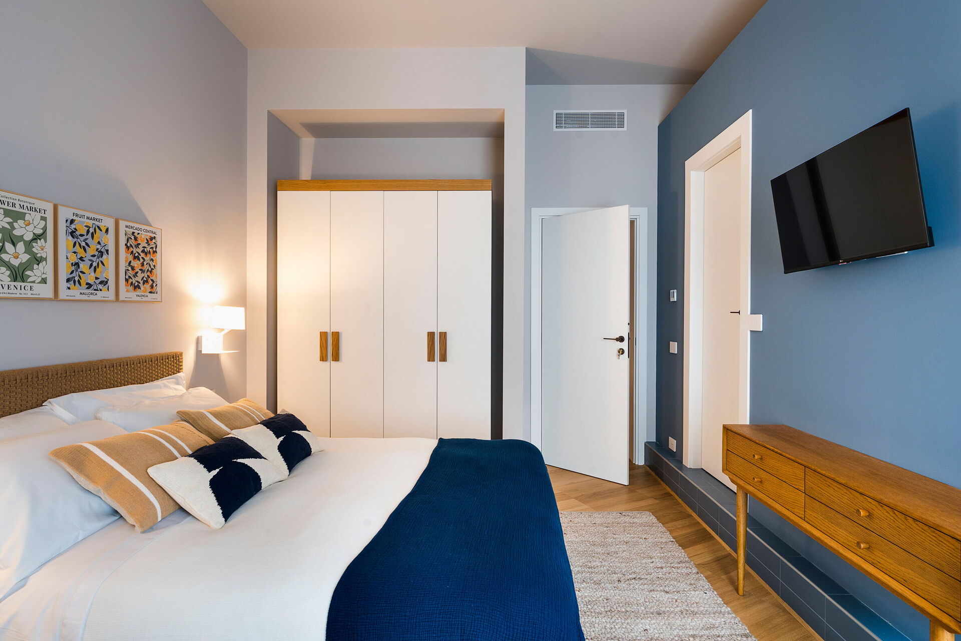 Anden sal: entré, lyst opholdsrum med spiseplads og adgang til en terrasse med panoramaudsigt over den gamle bymidte, køkken (komfur, ovn, køleskab, fryser, opvaskemaskine, mikrobølgeovn, espressomaskine, kaffemaskine, brødrister), vaskerum, dobbeltværelse (sengemål: 160 x 200 cm) med privat badeværelse med bruser, 3 dobbeltværelser (sengemål: 160 x 200 cm) hver med privat badeværelse med bruser.