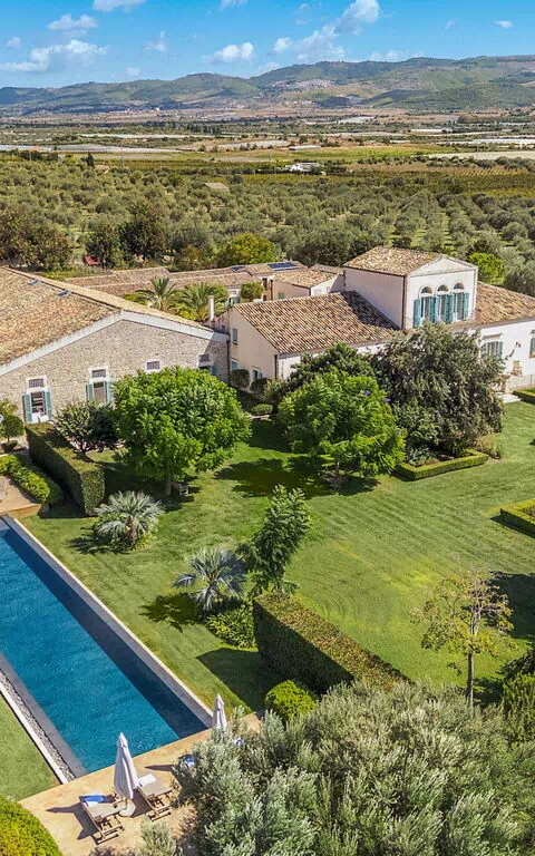 Stor, luksuriøs ejendom med privat pool på Sicilien i en solrig og fredelig beliggenhed omgivet af olivenlunde.