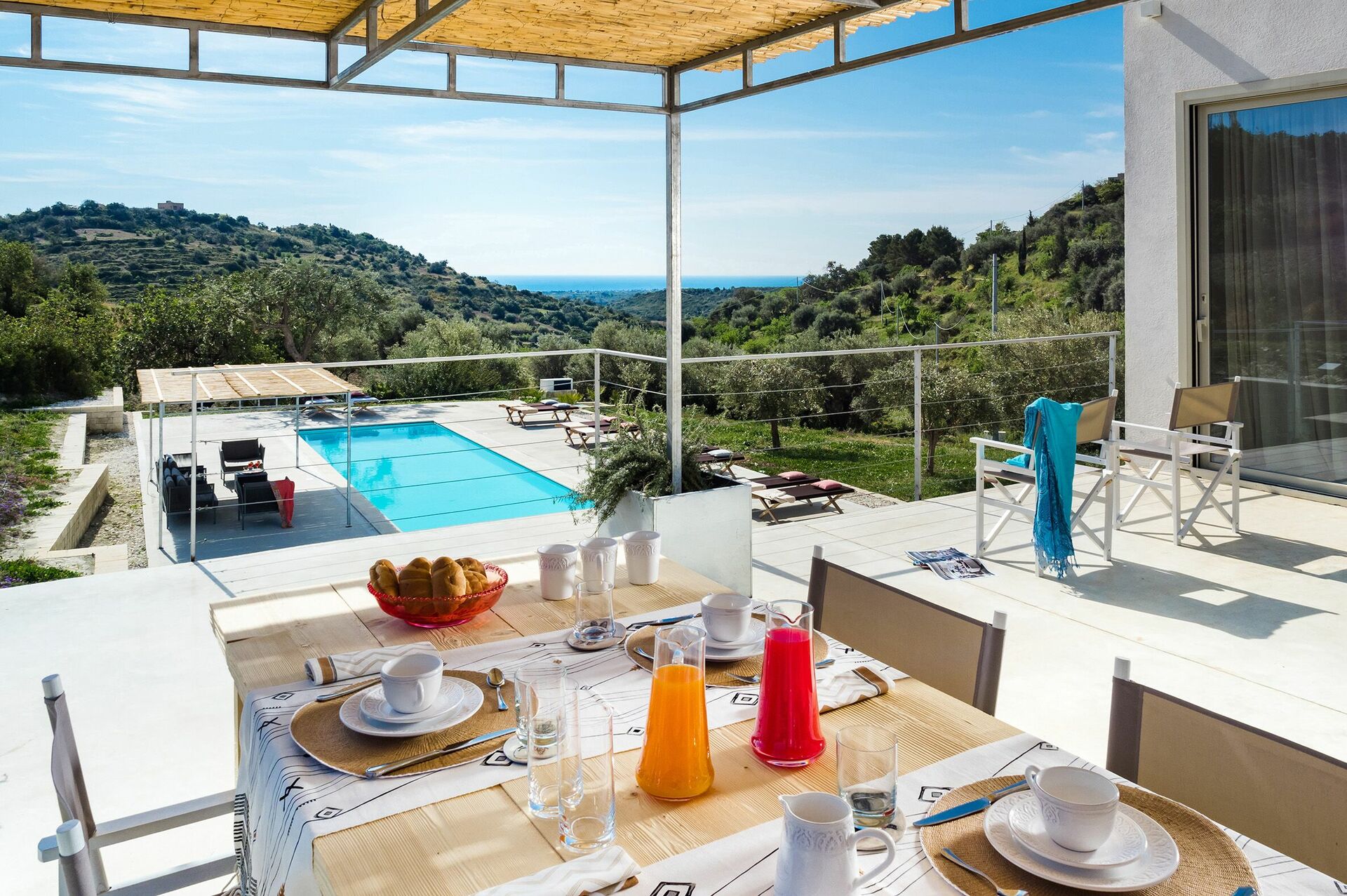 Villa Contra er et moderne hus udstyret med alle slags faciliteter og er perfekt til en ferie med din familie eller en gruppe venner: du vil ikke blive skuffet over det friske interiør og de store møblerede udendørs arealer. Feriehusets placering er rolig med panoramaudsigt over landskabet omkring ejendommen og havet, der er mindre end 10 km væk.