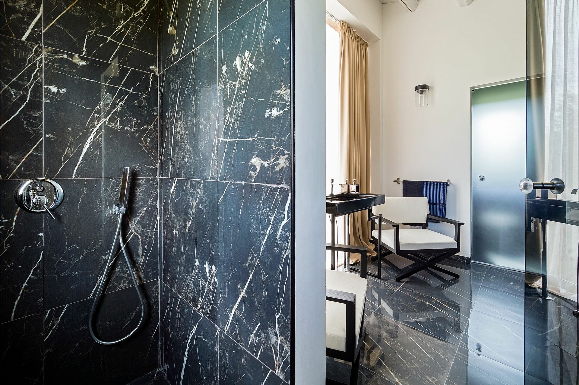 Stueetage: 1 suite med soveværelse med king-size seng, opholdsstue og eget badeværelse med bruser, 1 suite med dobbeltværelse, opholdsstue og eget badeværelse med bruser.