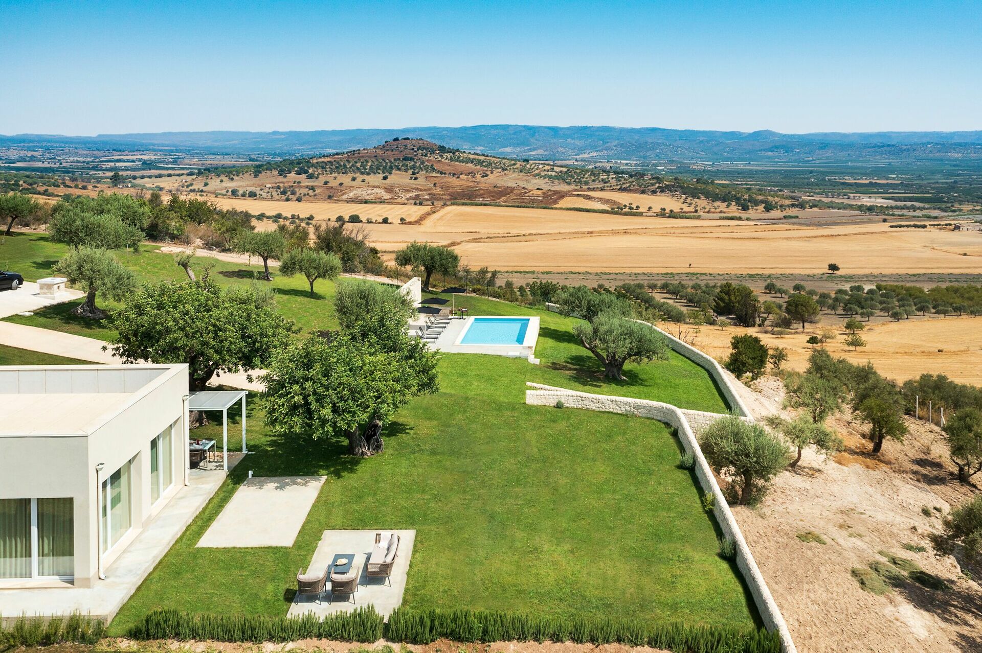 Mellem grønne bakker, men samtidig kun få minutters kørsel fra havet, er dette det perfekte sted for en afslappende ferie for familier eller par. Huset er også en glimrende base for at besøge de barokke byer i Noto-dalen og vidunderlige sandstrande, som f.eks. ved Vendicari, San Lorenzo og Santa Maria del Focallo.