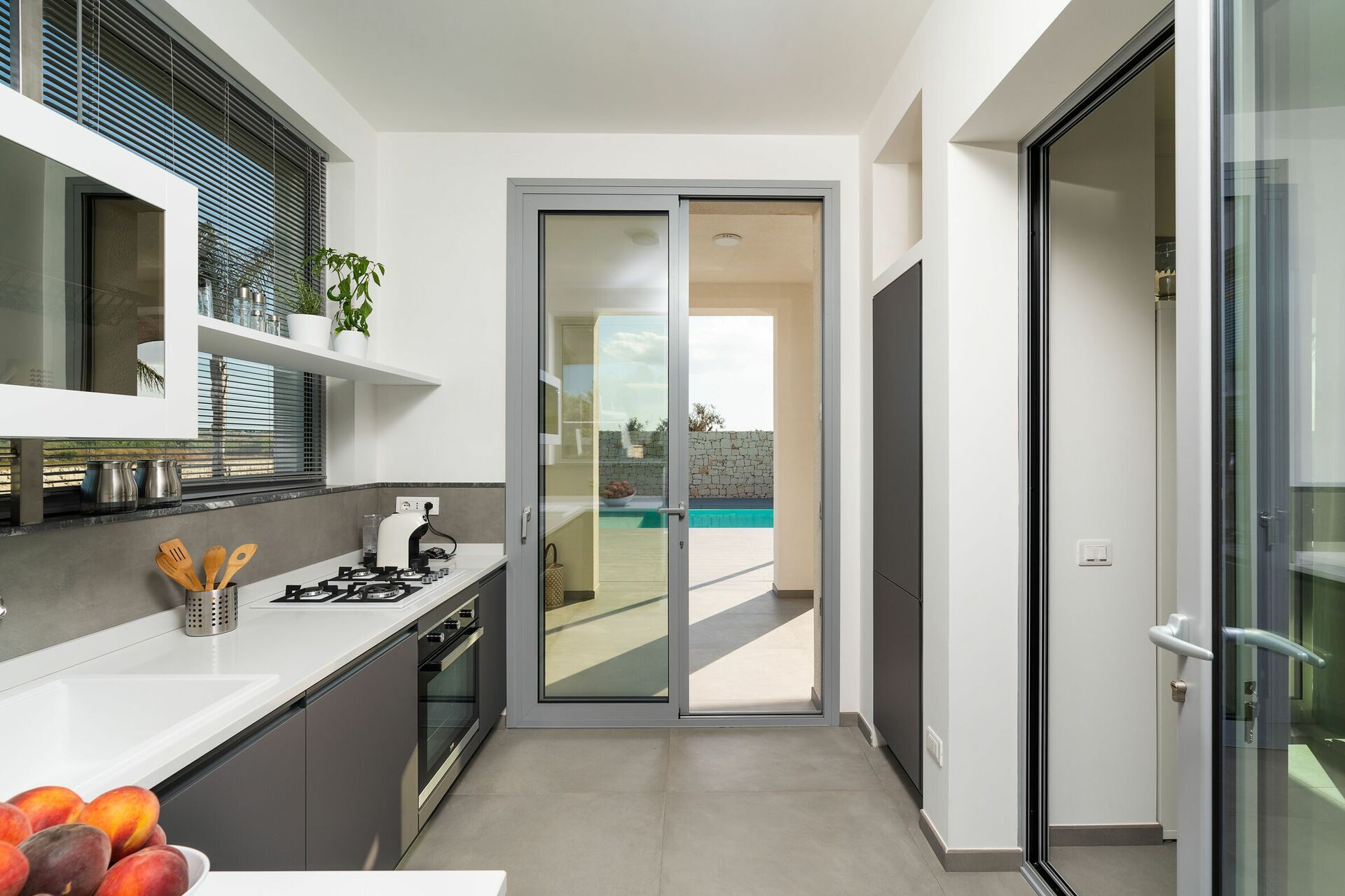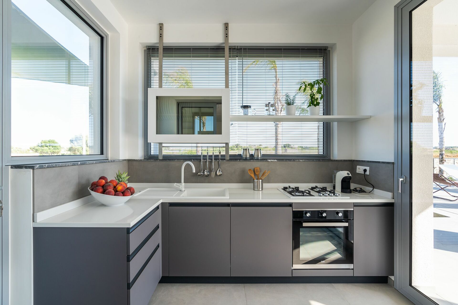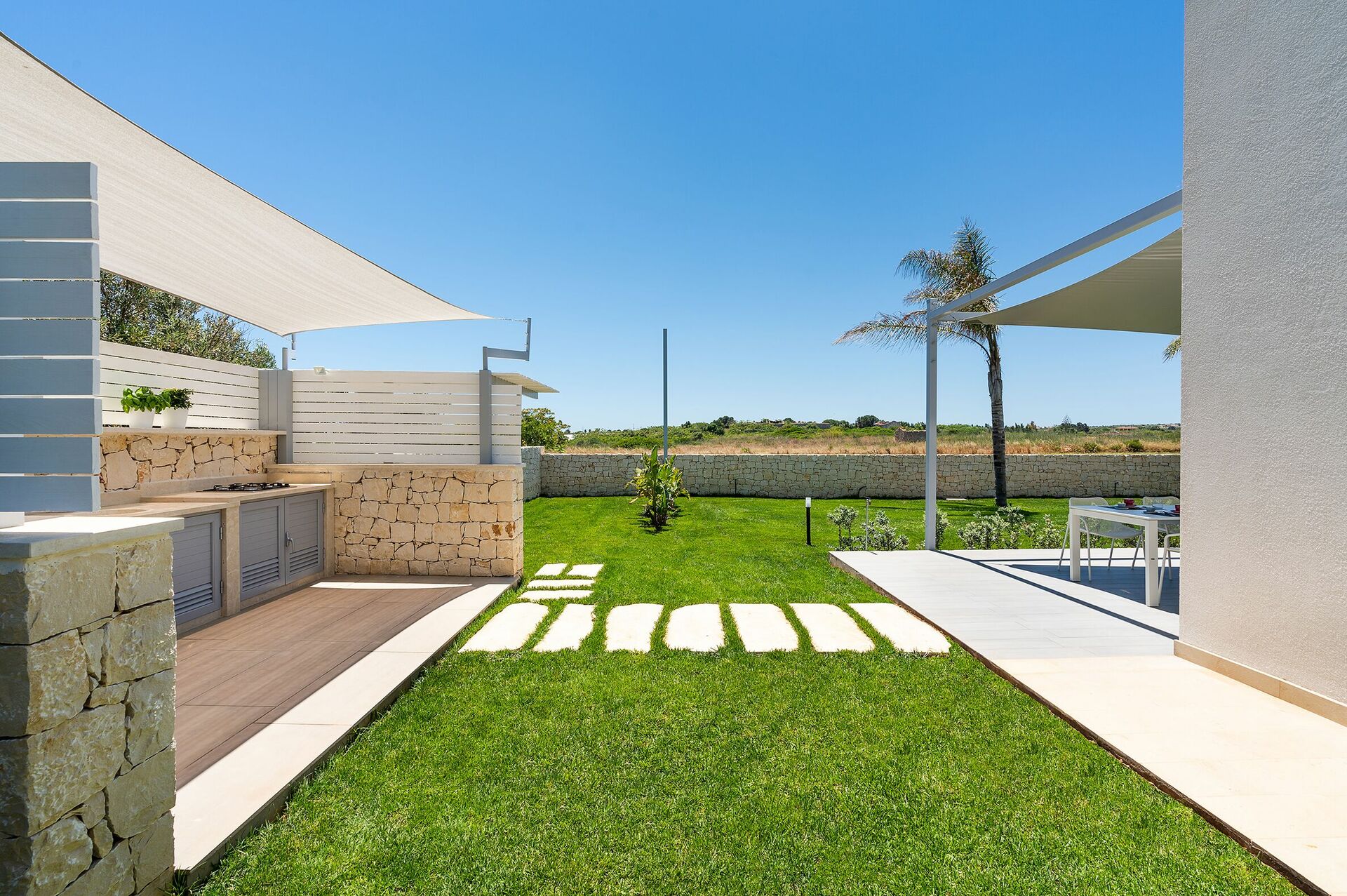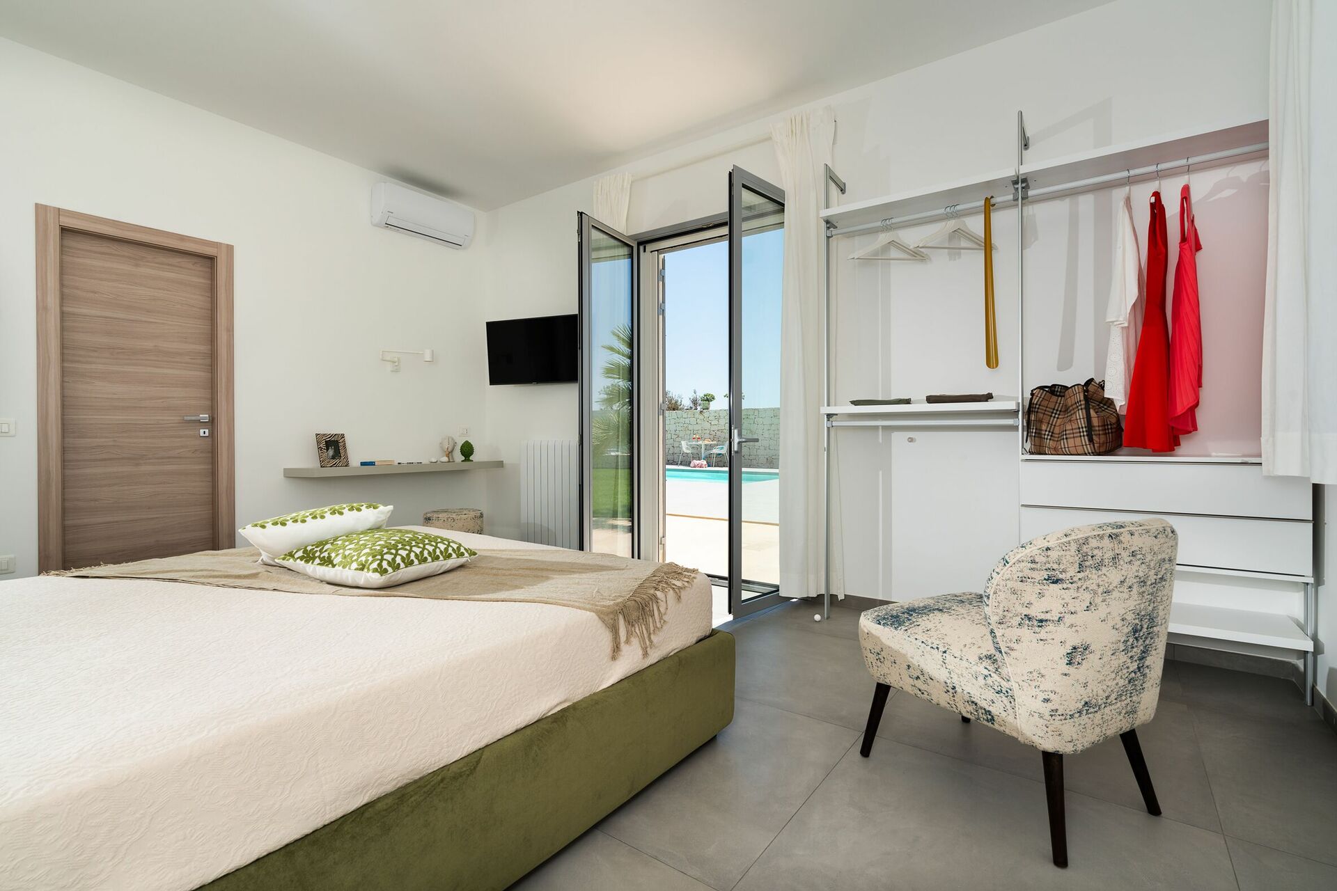 Villa Nica er nybygget med lyse overflader, en indbydende indretning og værelser der åbner ud til udearealet.