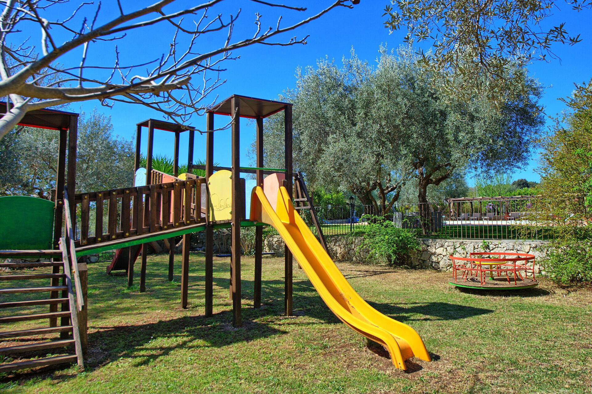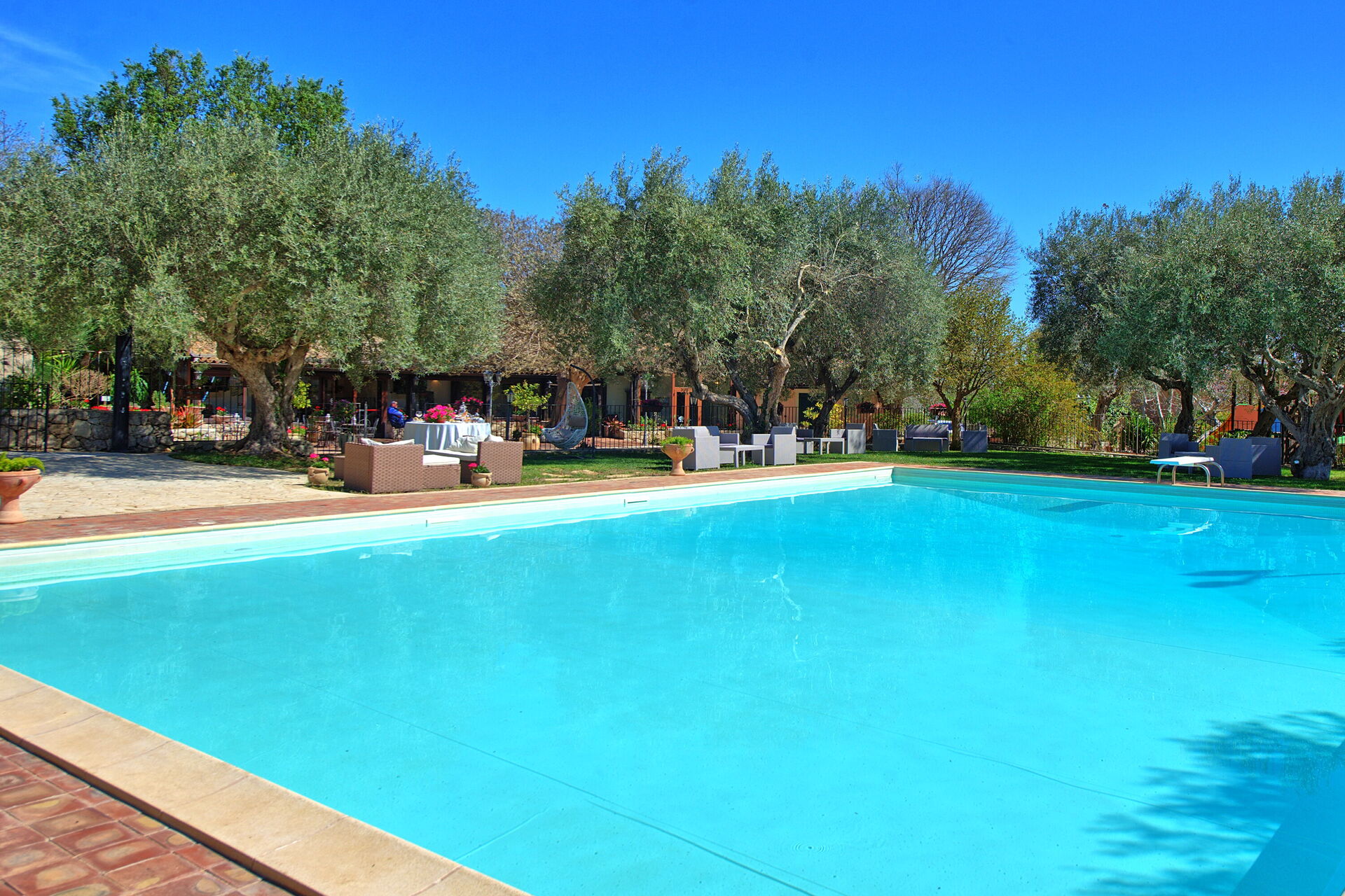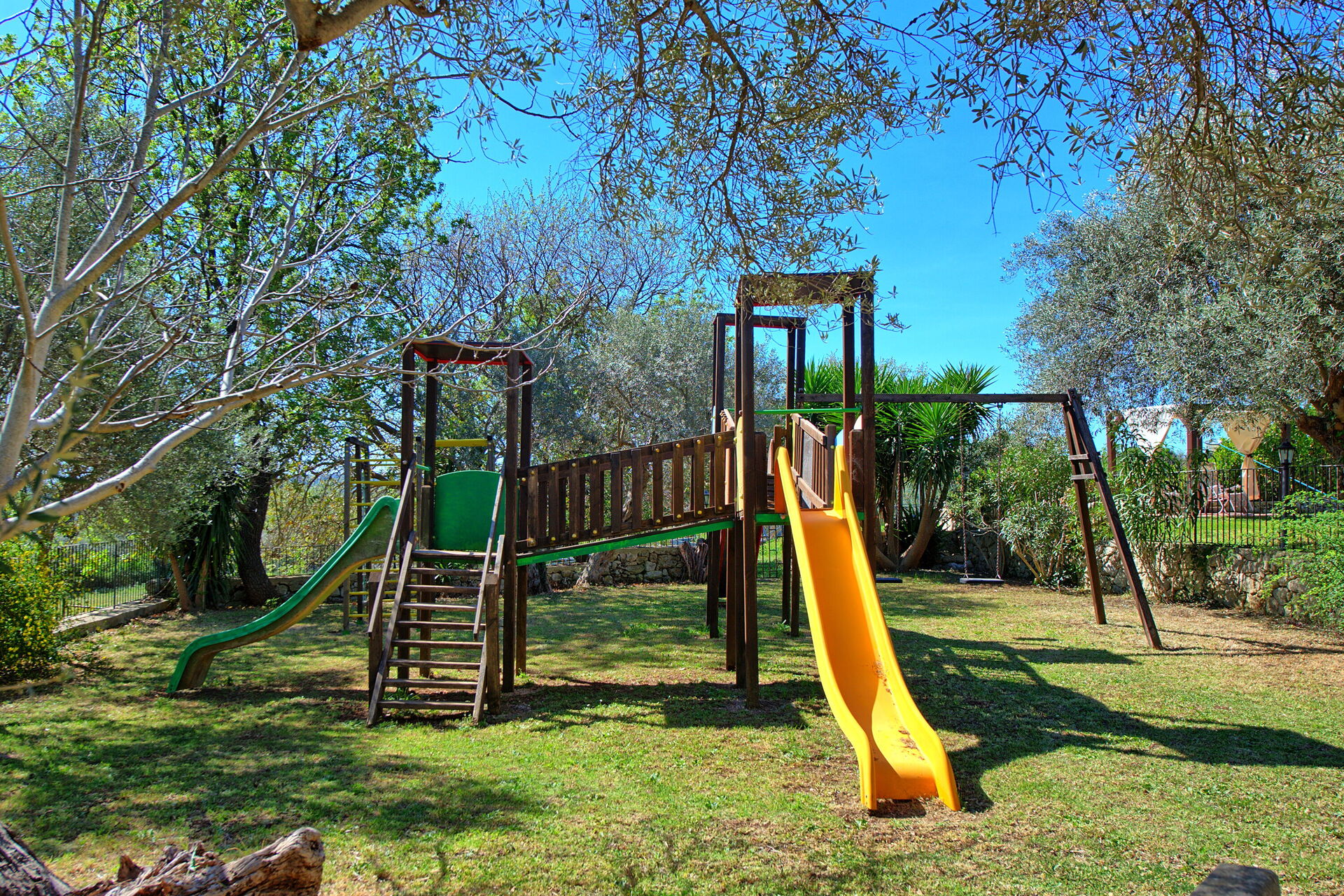 Der er en smuk pool, to verandaer og en legeplads med rutsjebane og gynge. Huset er omgivet af vinmarker, olivenlunde, mandeltræer og vandrestier.