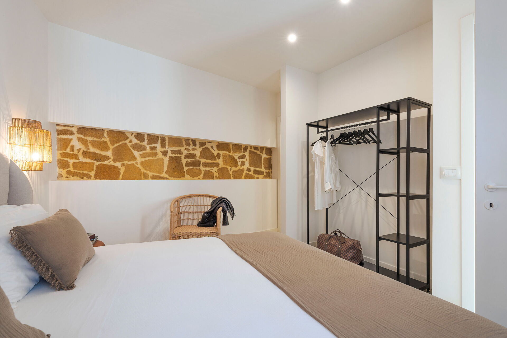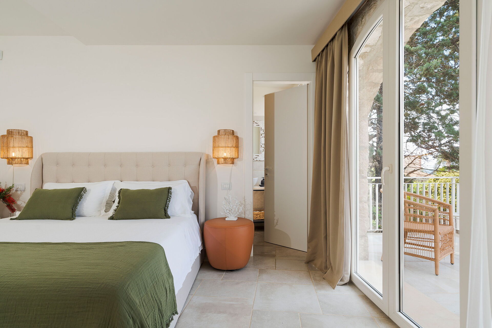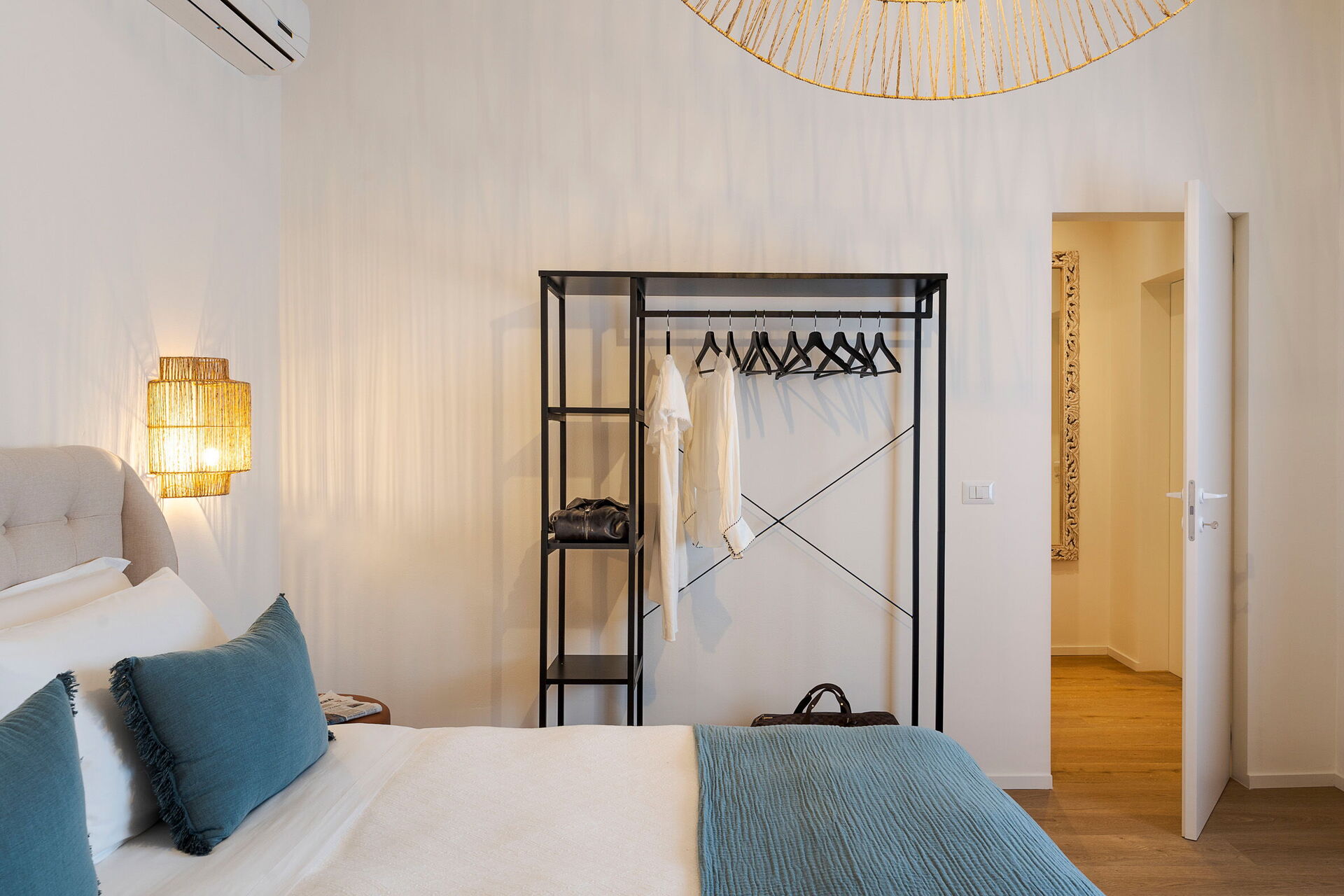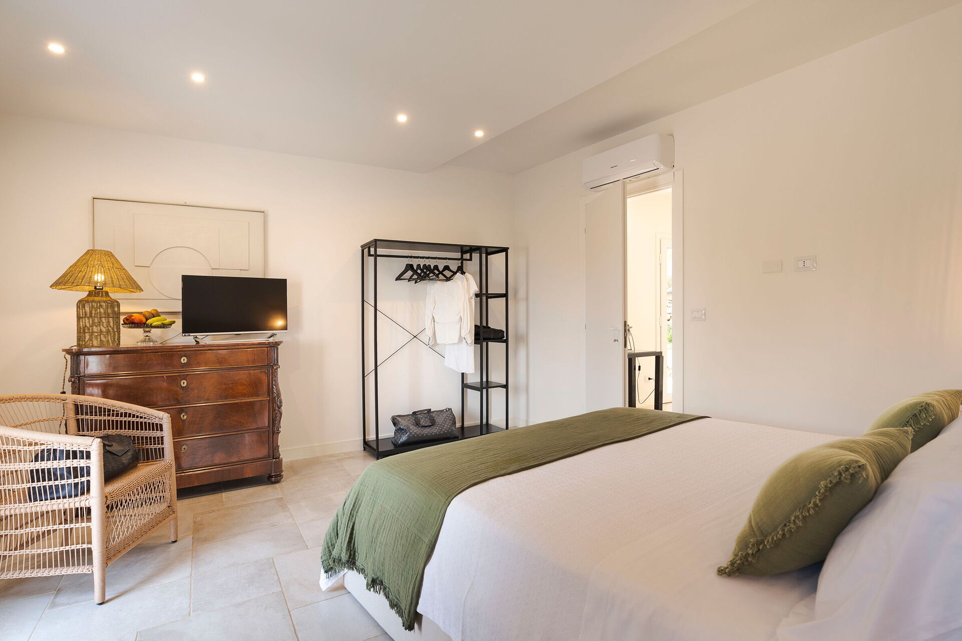 1 dobbeltværelse (aircondition) med badeværelse med bruser og udgang til verandaen, 1 dobbeltværelse (aircondition) med badeværelse med bruser