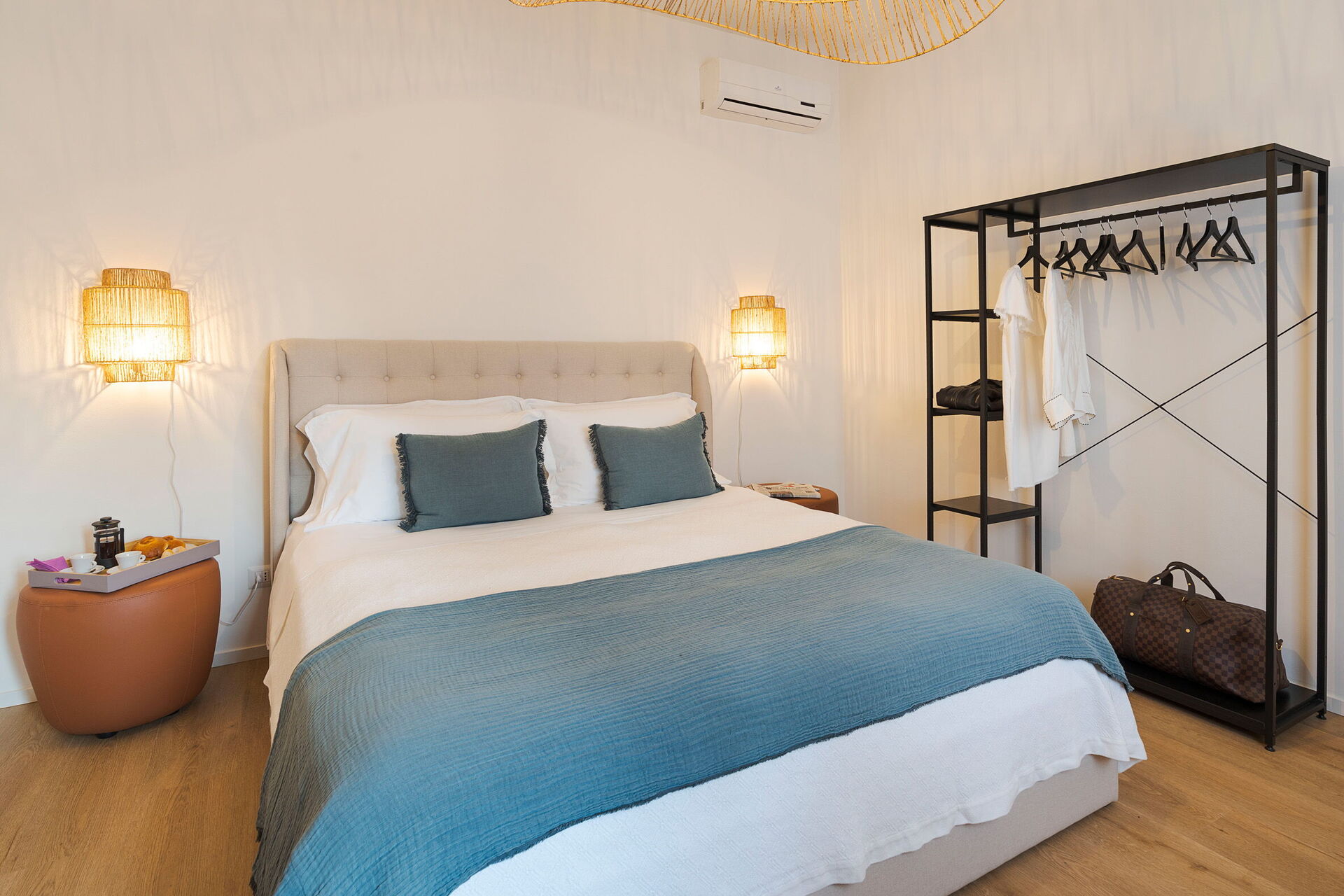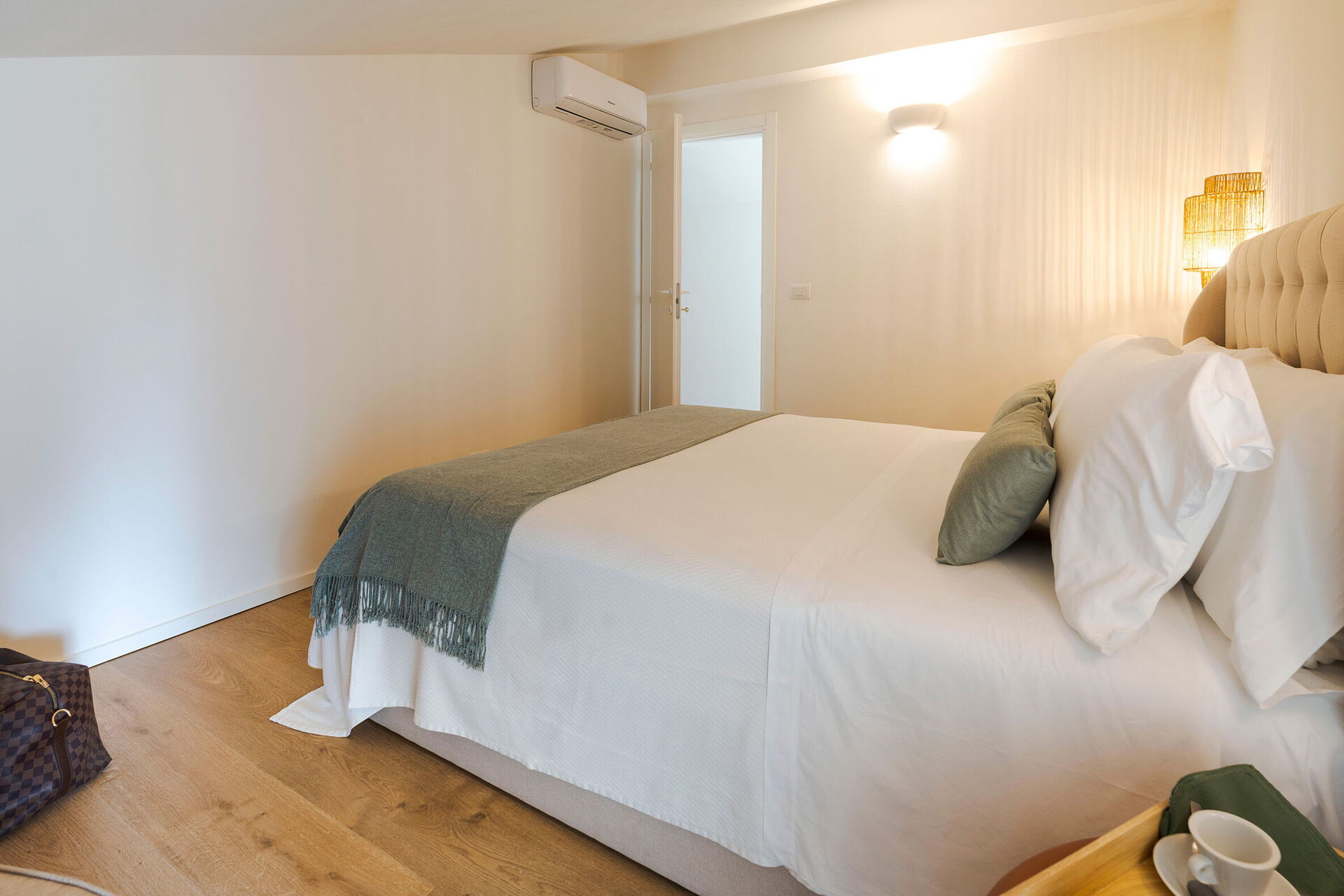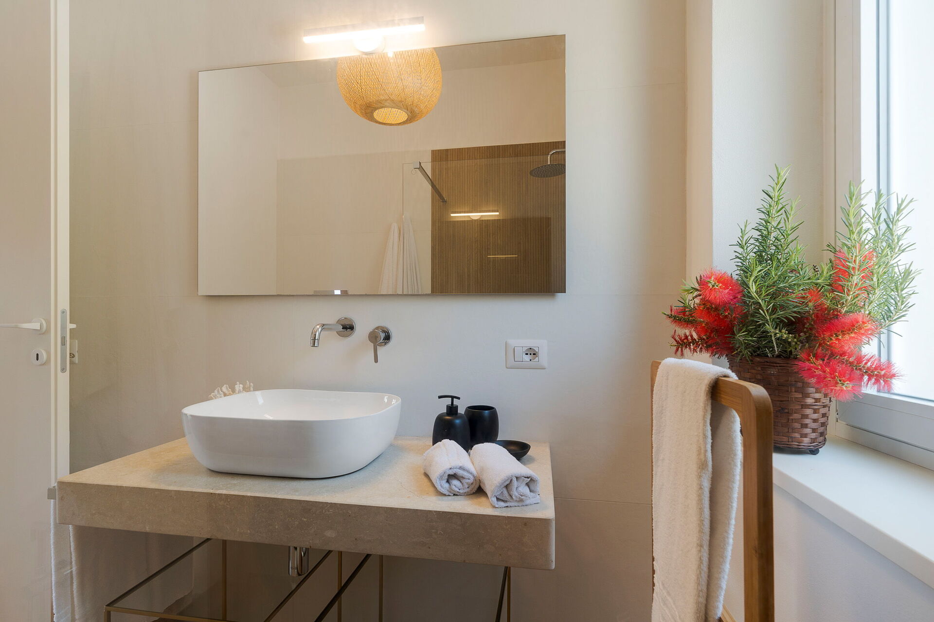 1 dobbeltværelse (aircondition) med badeværelse med bruser og udgang til verandaen, 1 dobbeltværelse (aircondition) med badeværelse med bruser
