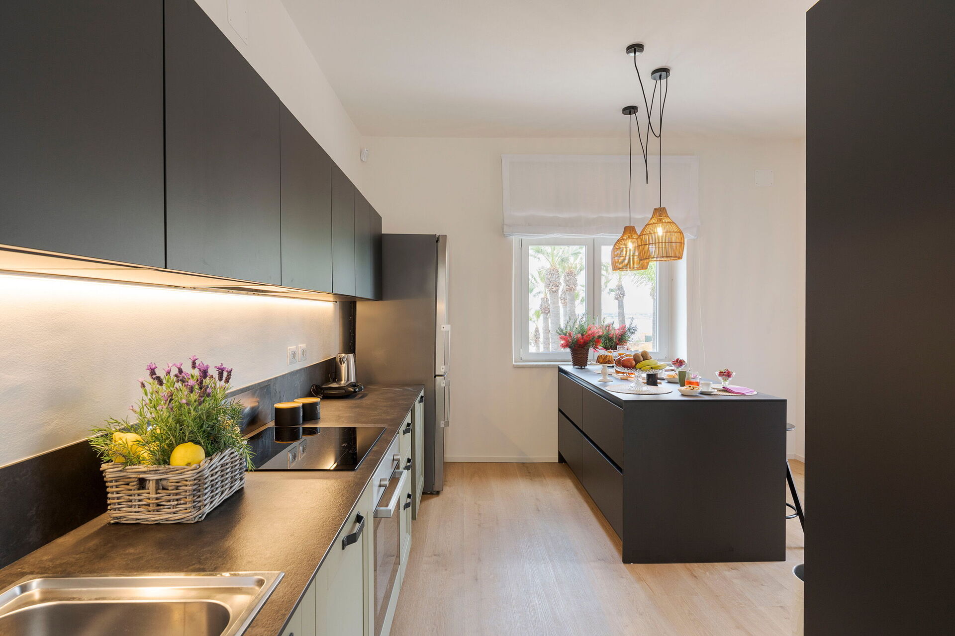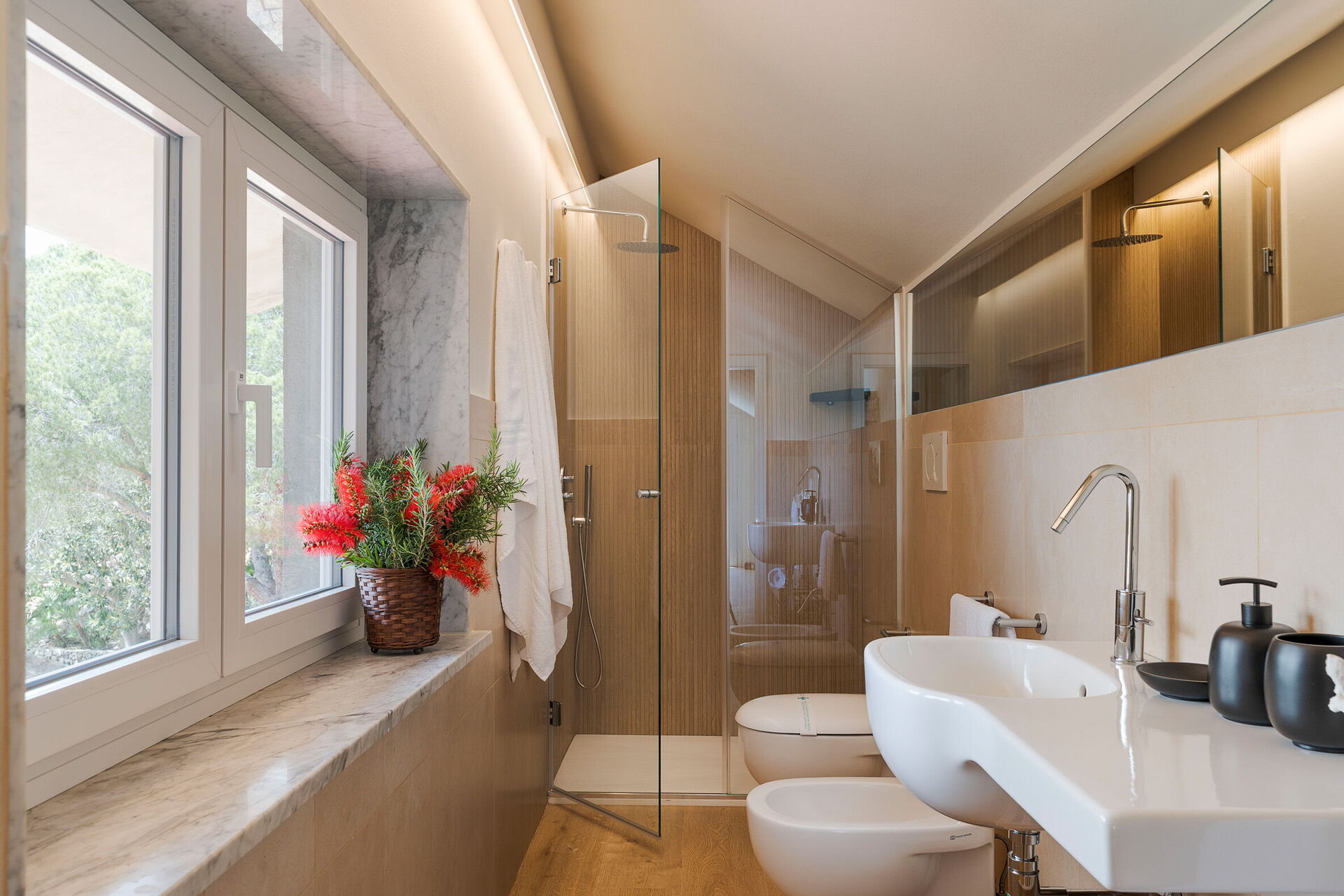 Feriehuset består af et hovedhus og et anneks med i alt 5 soveværelser og 5 badeværelser, perfekt til en ferie med venner eller en feriesammenkomst med hele familien.
