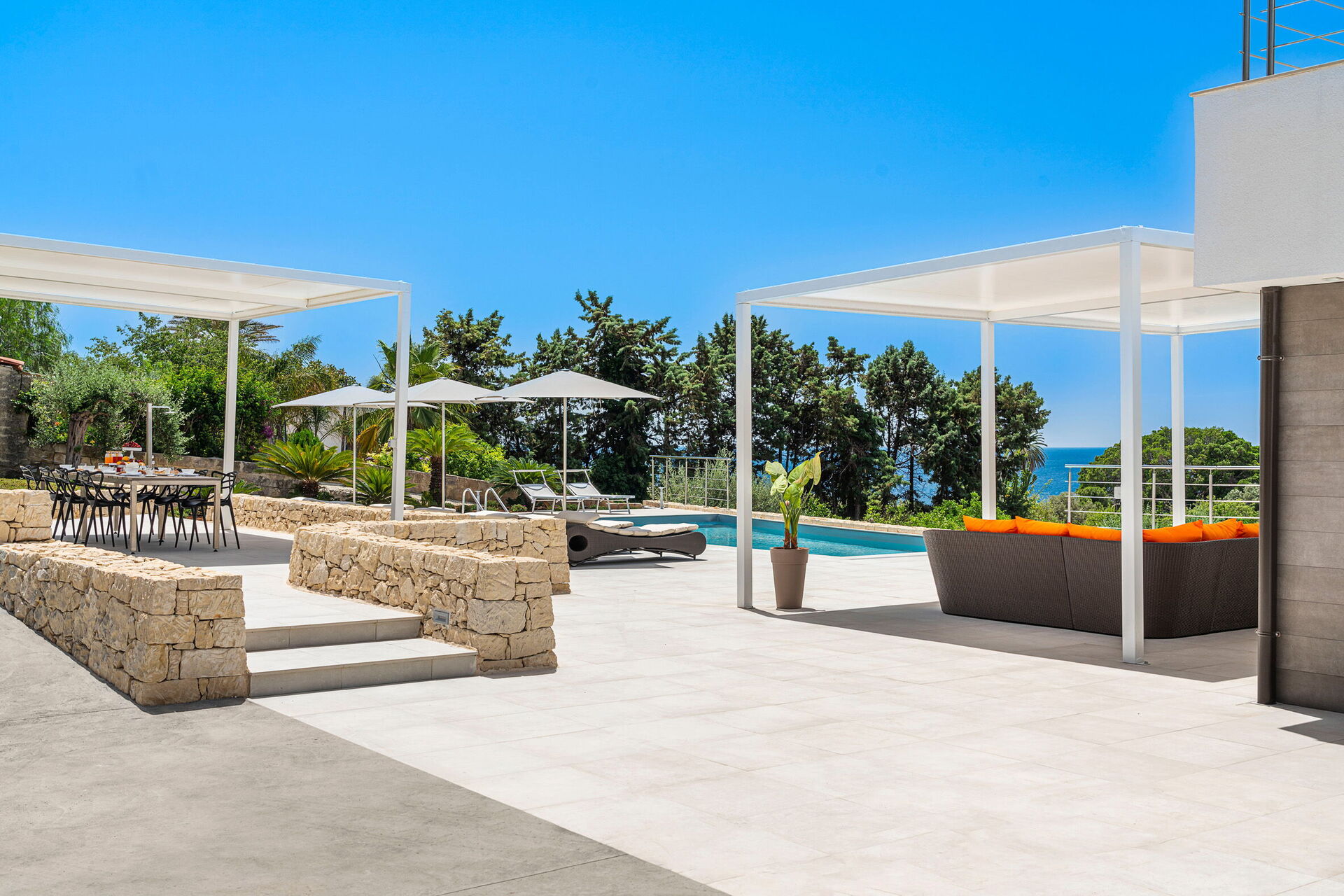 Udendørsområdet har flere fællesarealer, en møbleret terrasse og en stor swimmingpool med saltvandsrensningssystem og pooldæk, mange muligheder for at nyde uforglemmelige stunder under den sicilianske sol.