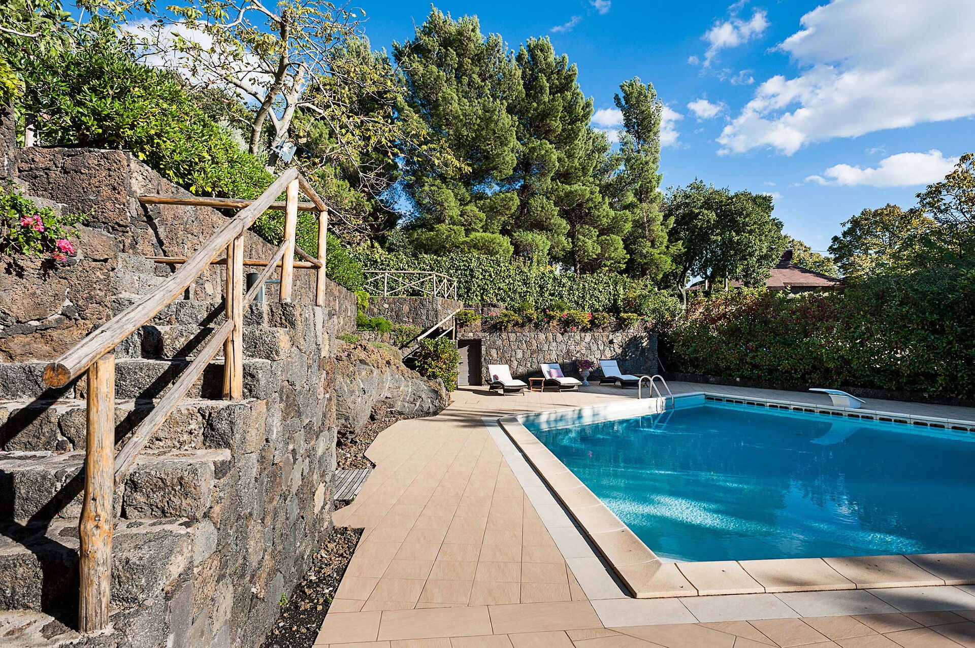 Villa Montefiore har traditionelle arkitektoniske træk såsom sorte lavasten vægbeklædninger, en etage, to soveværelser, begge med en-suite badeværelser, og plads til op til 4 personer.