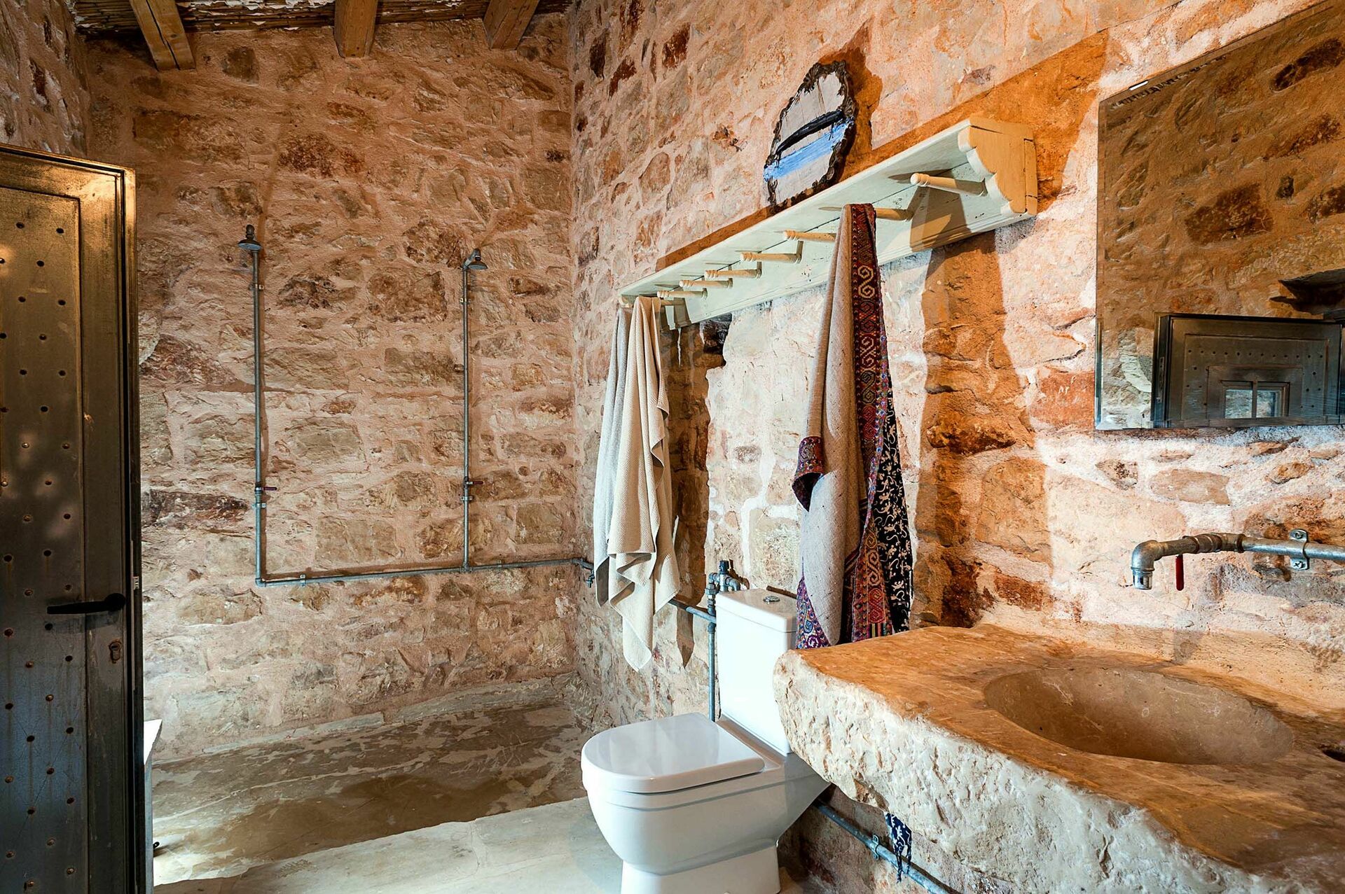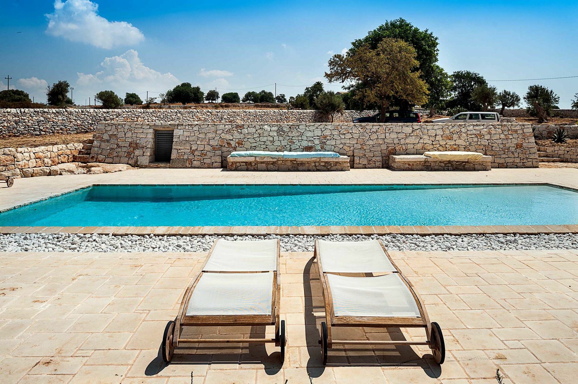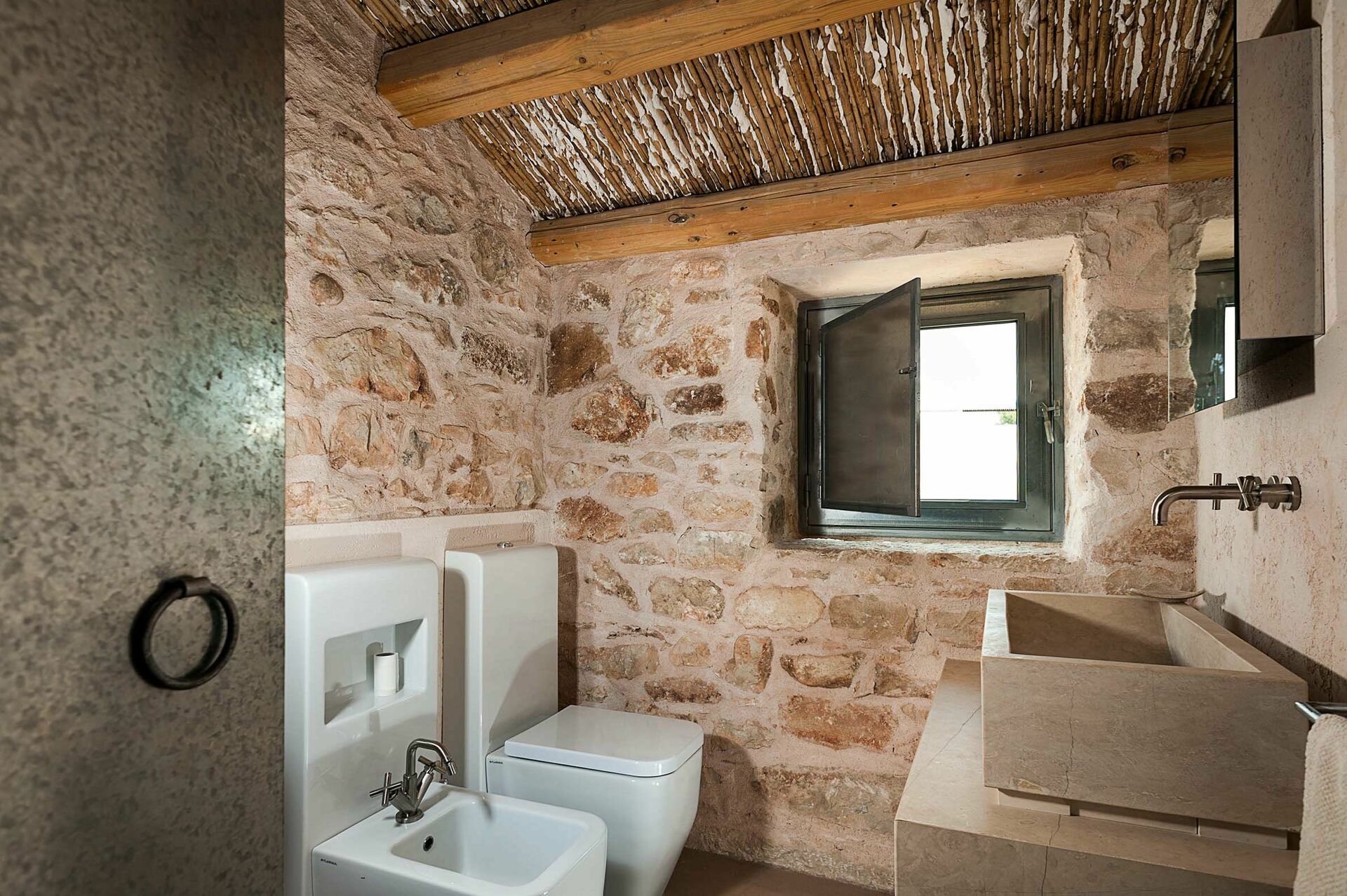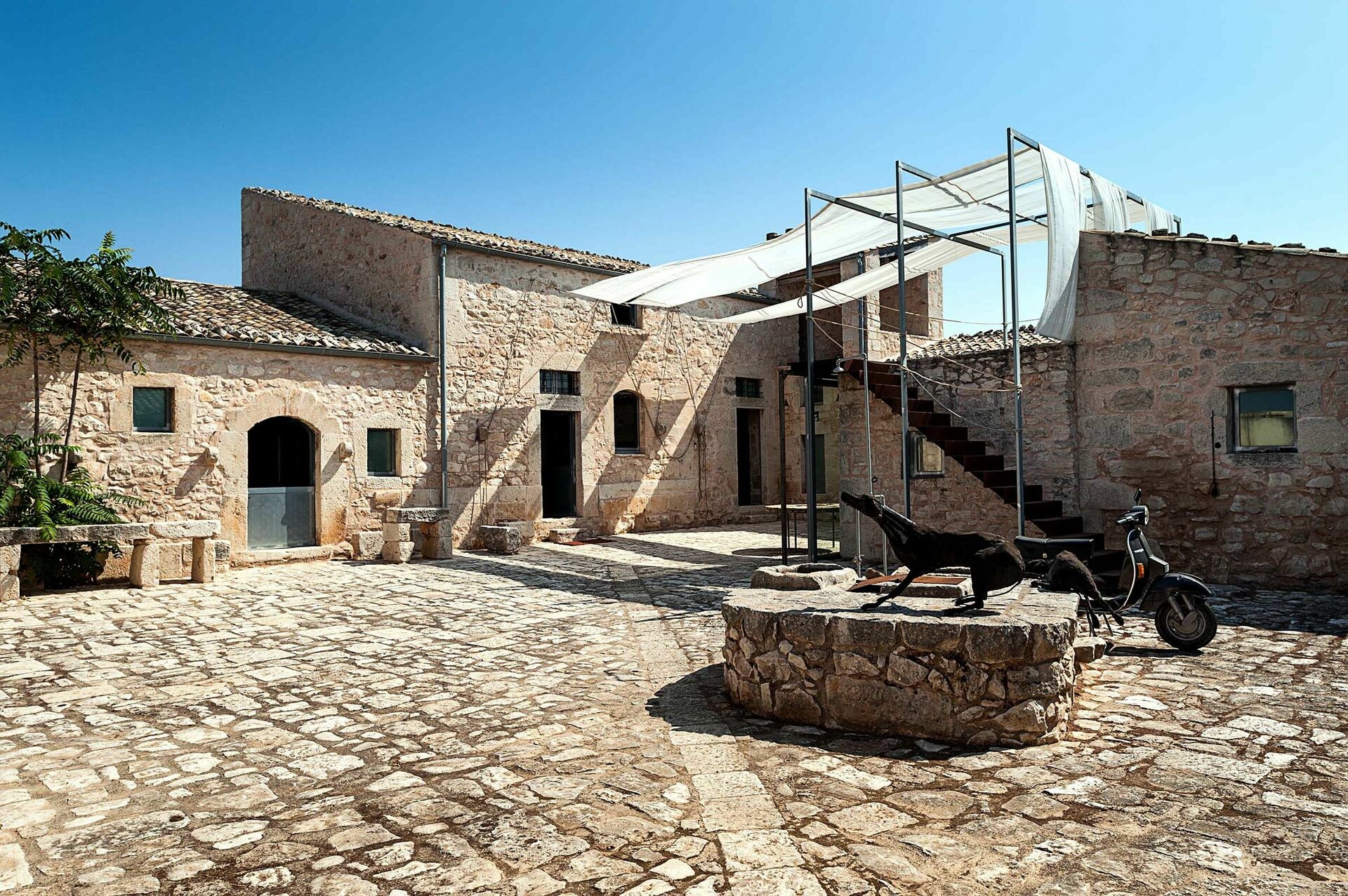 Huset er omgivet af traditionelle stenhegn og byder på en smuk pool; store, solrige terrasser; og en charmerende indre gårdhave. Interiøret har designelementer og brug af materialer som natursten, stål og træ, i perfekt harmoni med byggestilen.