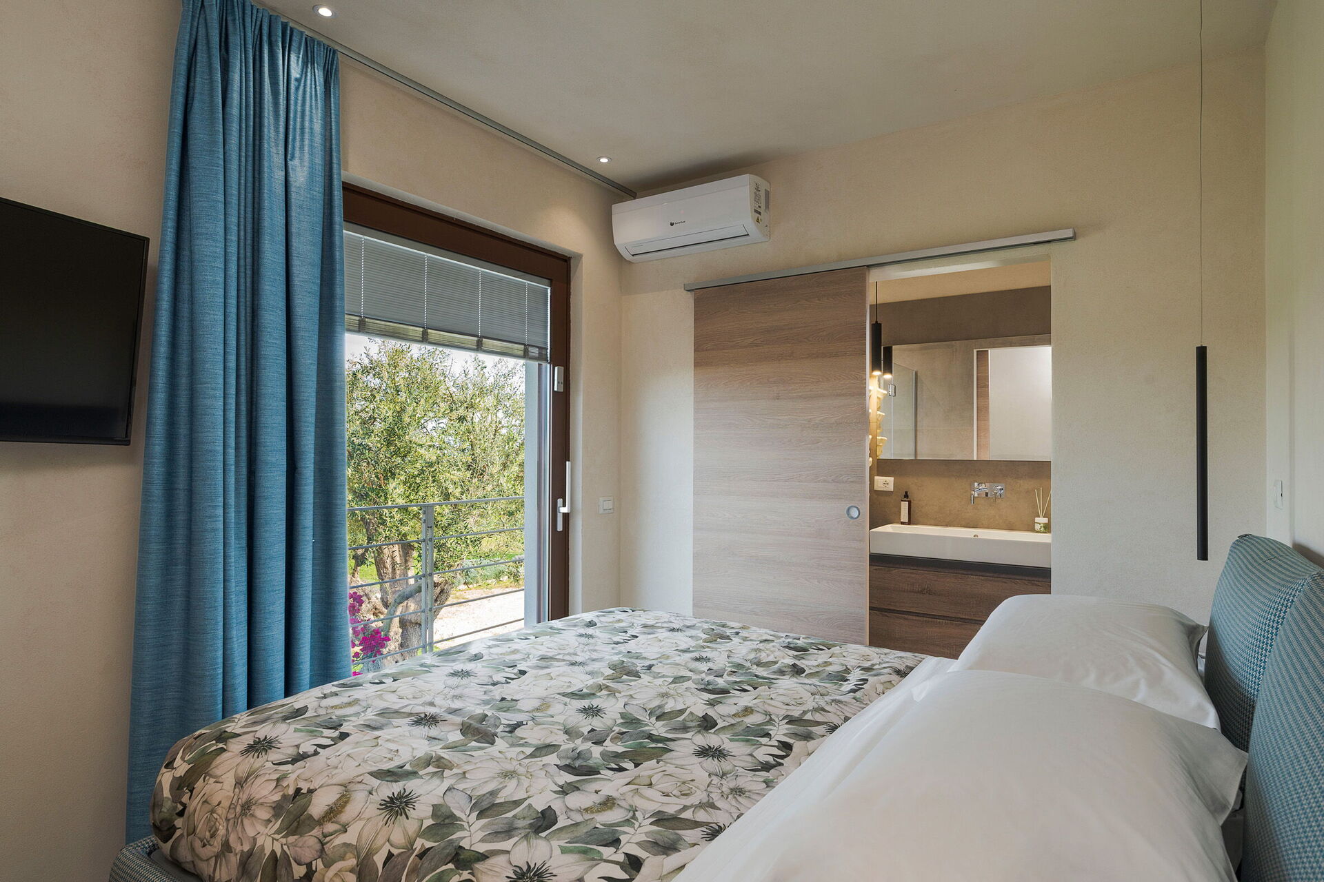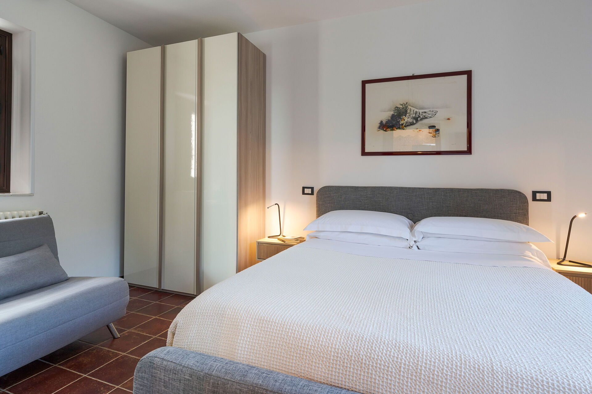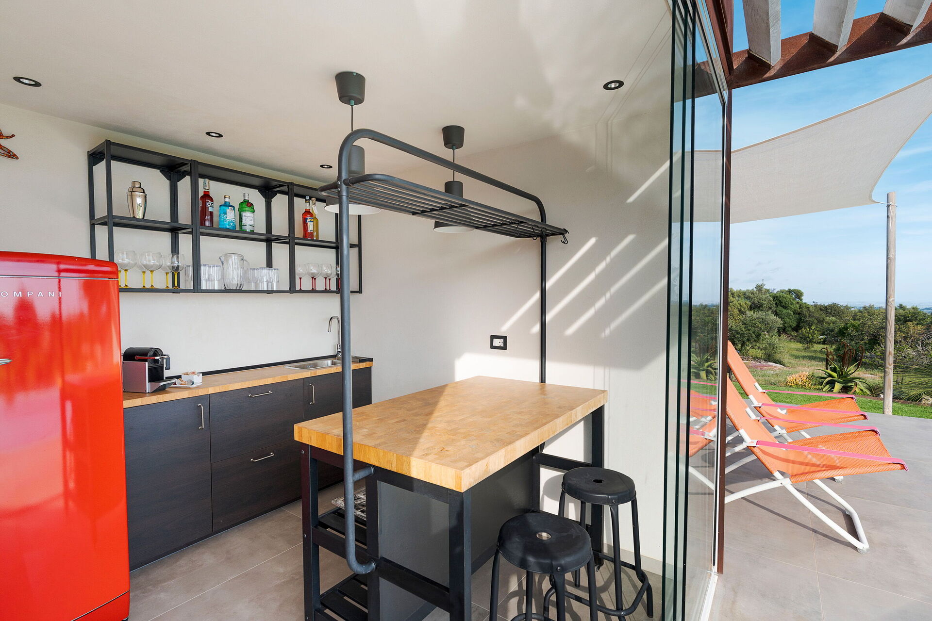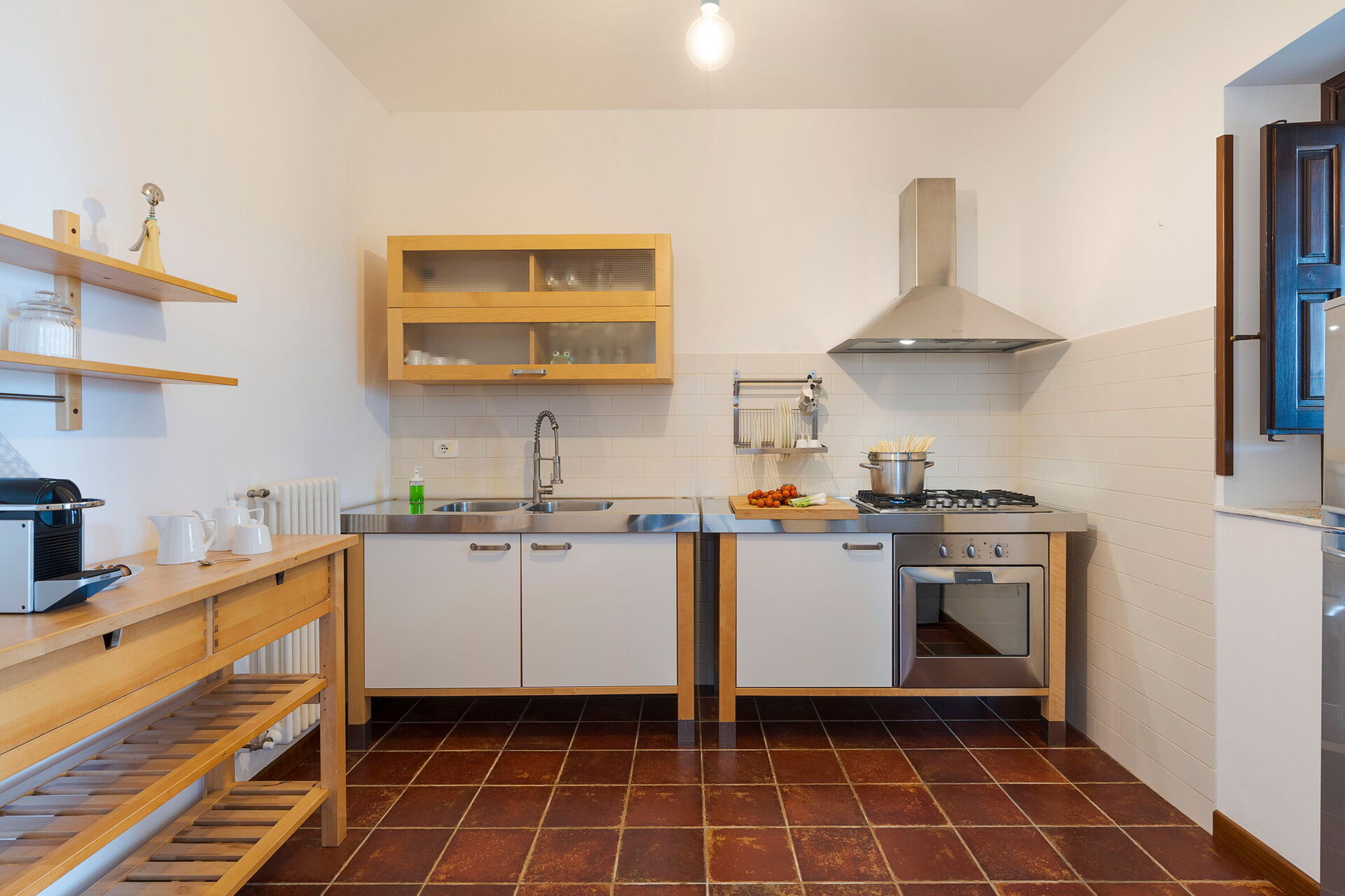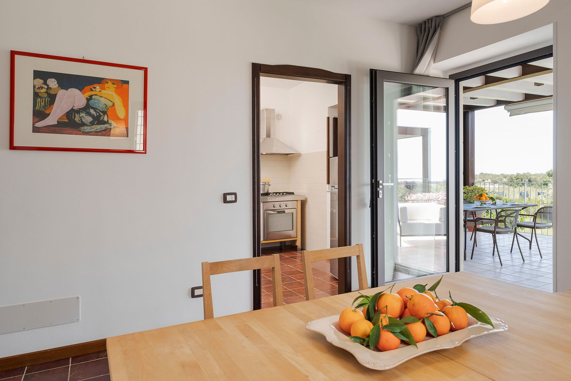 Stueetage: lille stue med adgang til veranda med pergola, møbleret til udendørs spisning, køkken (kogeplade, ovn, fryser, køleskab, mikrobølgeovn, kaffemaskine, brødrister), dobbeltværelse (sengemål: 160 x 200 cm) med eget badeværelse med bruser.