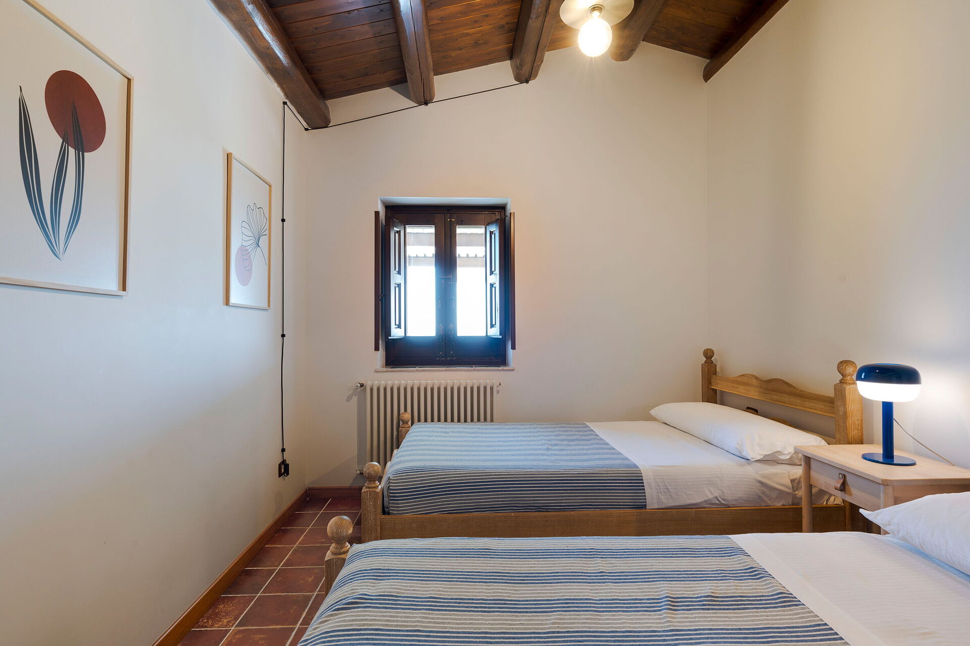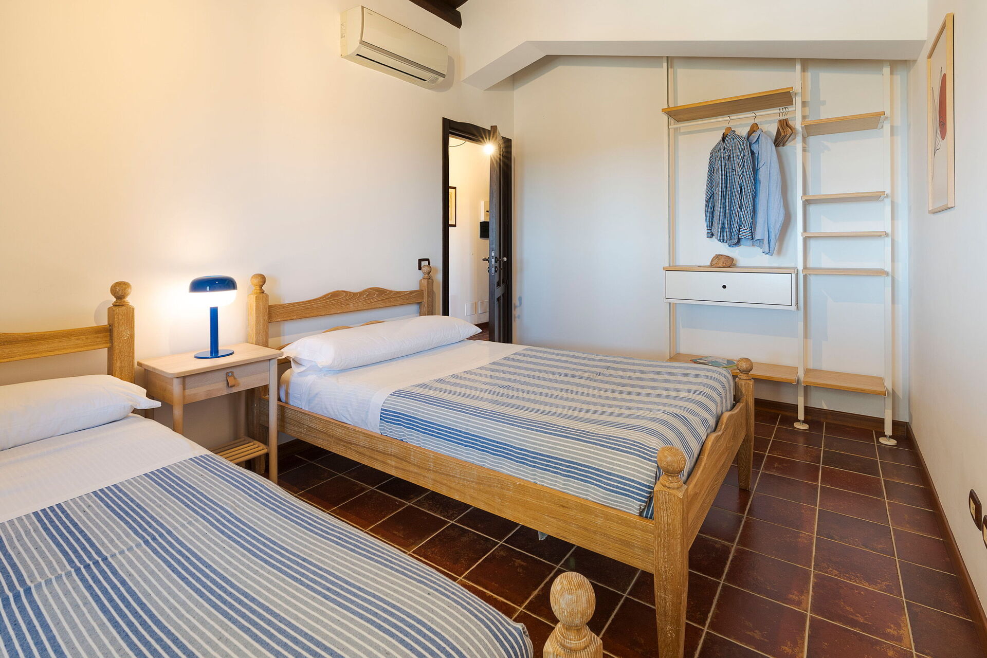 Første sal: dobbeltværelse med adgang til terrasse med pergola, værelse med 2 enkeltsenge, badeværelse med bruser.