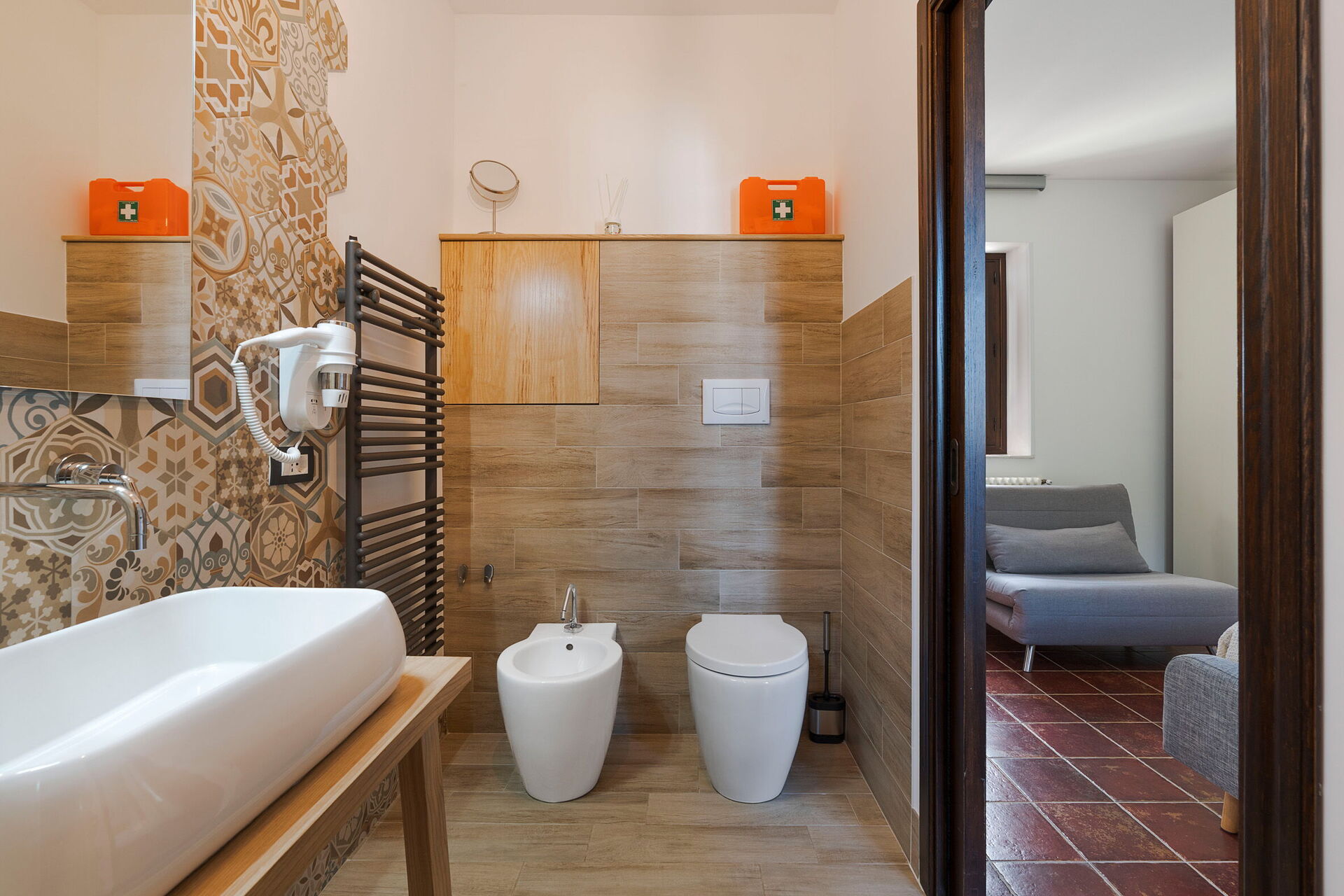 Stueetage: dobbeltværelse (sengemål: 180 x 200 cm) med eget badeværelse med bruser og adgang til veranda, dobbeltværelse (sengemål: 160 x 200 cm), badeværelse med bruser.