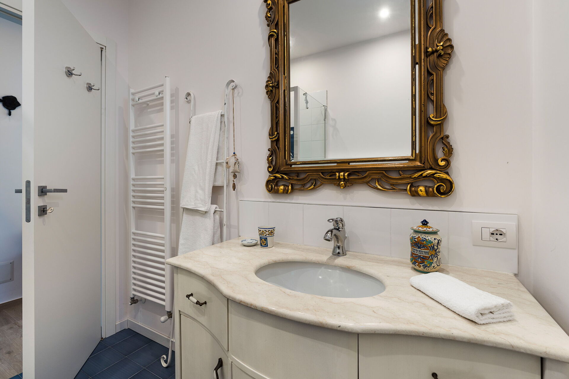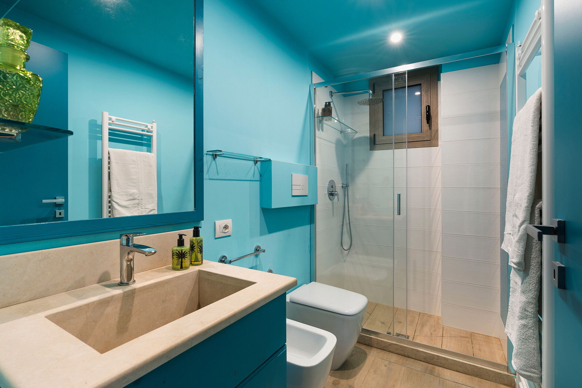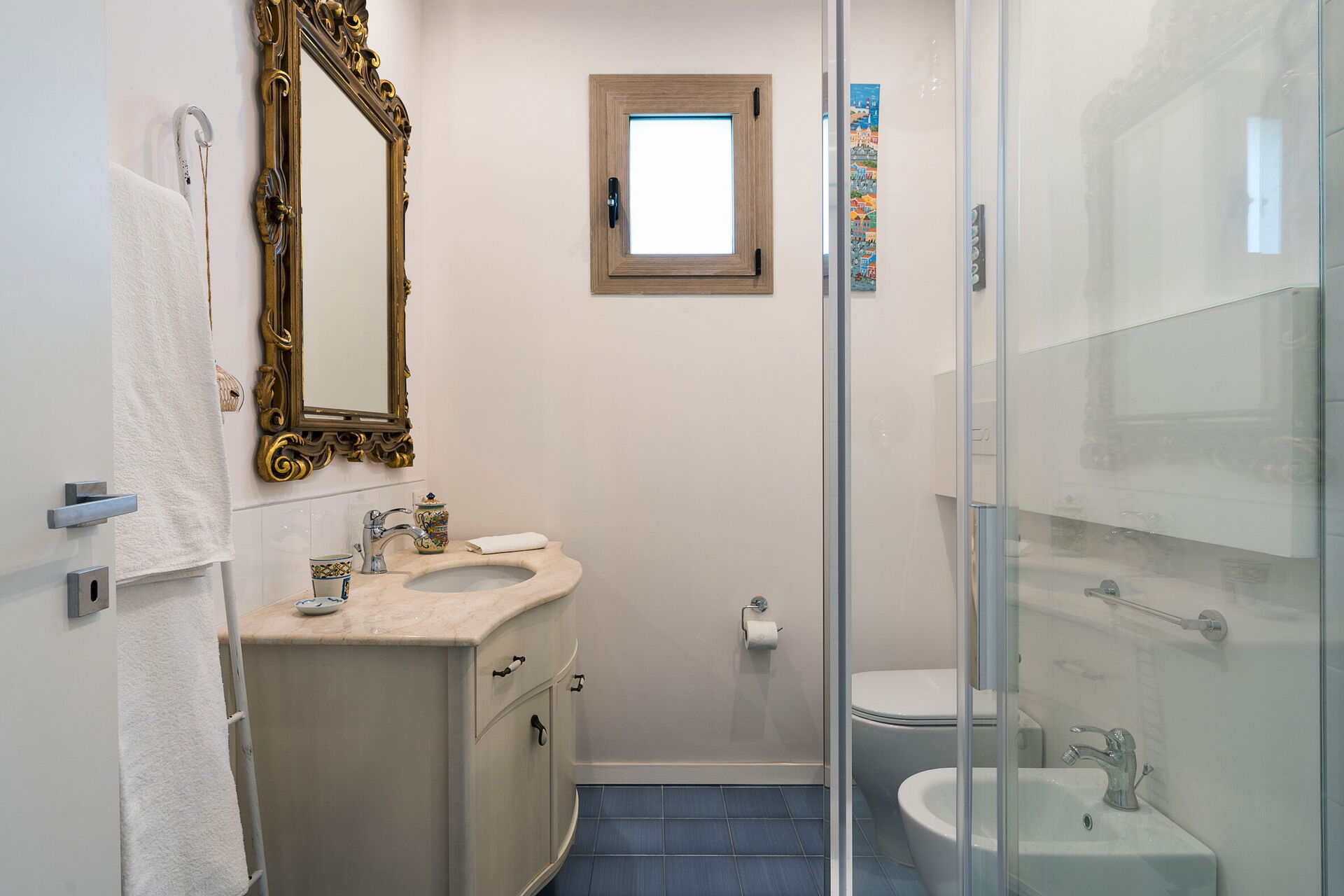 Første sal: stue (pejs, myggenet, aircondition, smart-tv) med spiseplads og udgang til terrasse med panoramaudsigt, køkken (komfur, ovn, fryser, køleskab, opvaskemaskine, mikroovn, amerikansk kaffemaskine, espressomaskine, brødrister), soveværelse med dobbeltseng (aircondition, myggenet) med privat badeværelse med bruser, soveværelse med dobbeltseng (aircondition, myggenet), badeværelse med bruser.