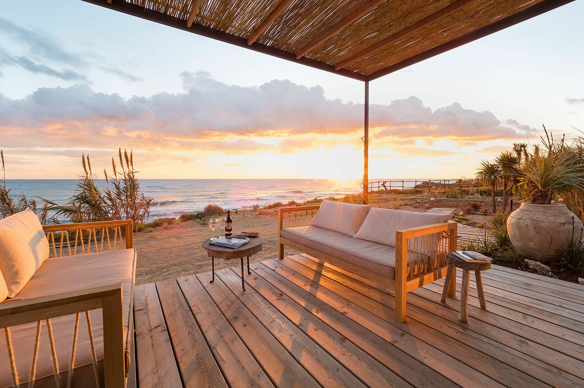 - rummelige terrasser med panoramaudsigt over en spontan have i Middelhavet