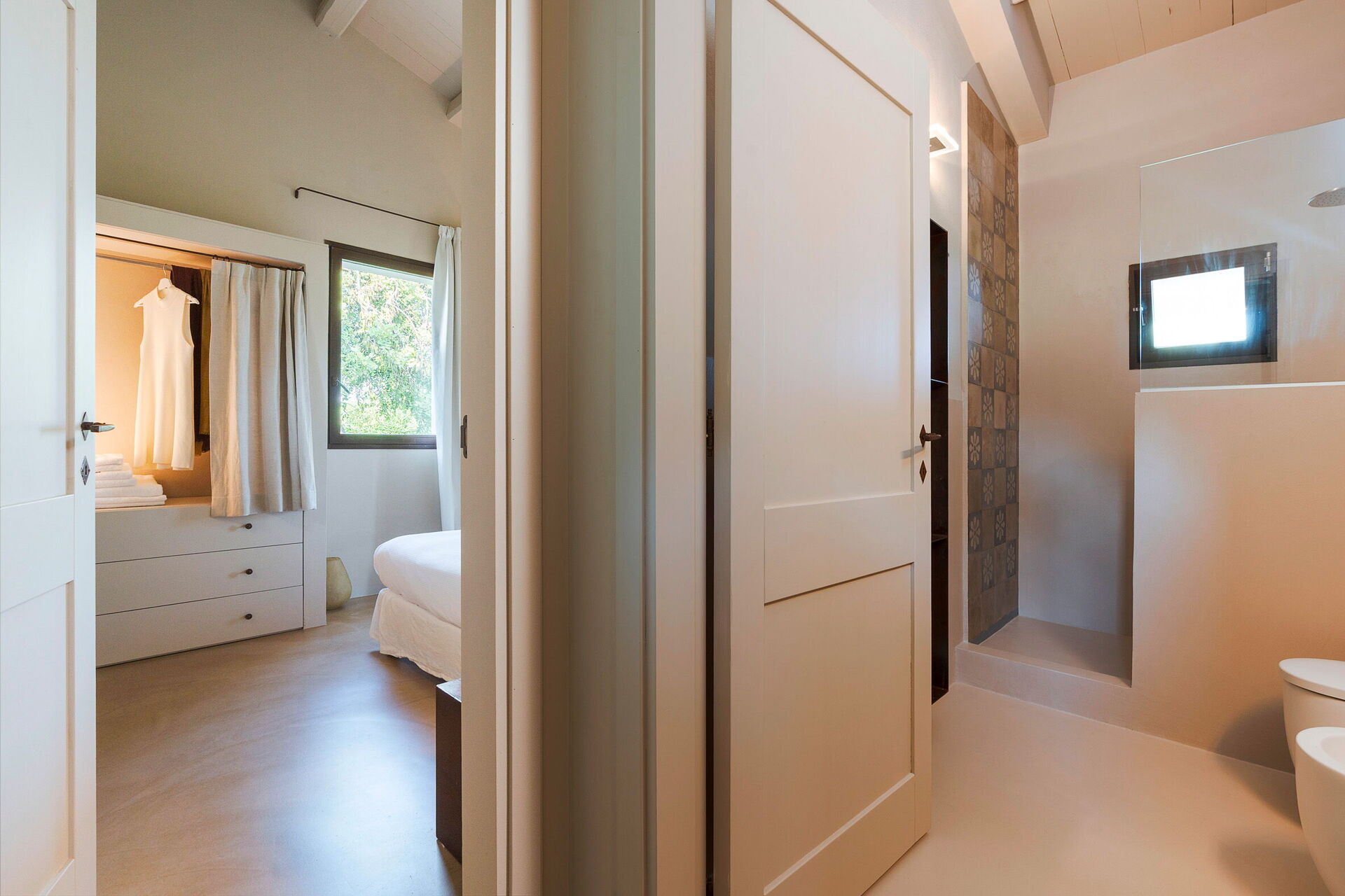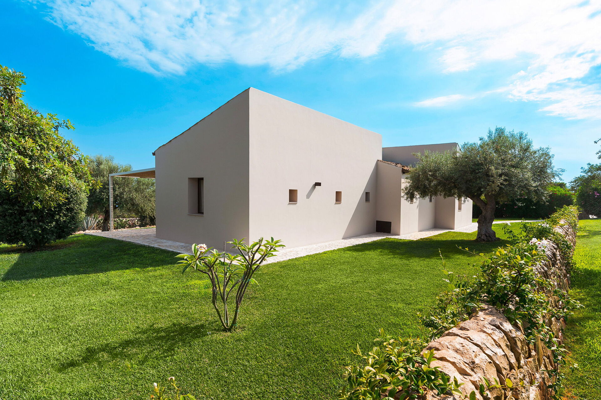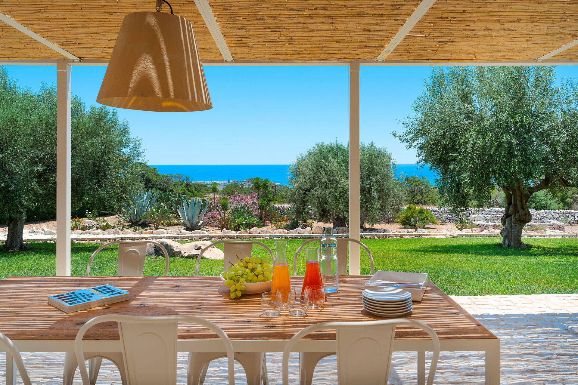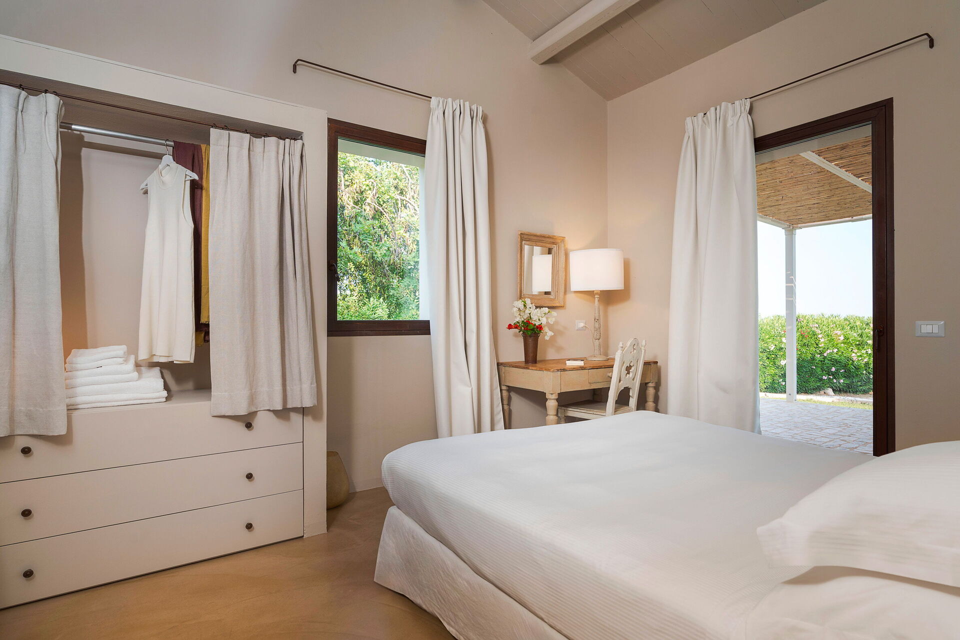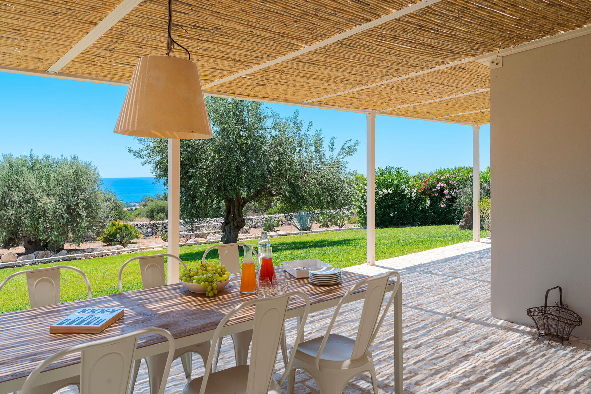 Terrasse med pergola, have, fælles pool