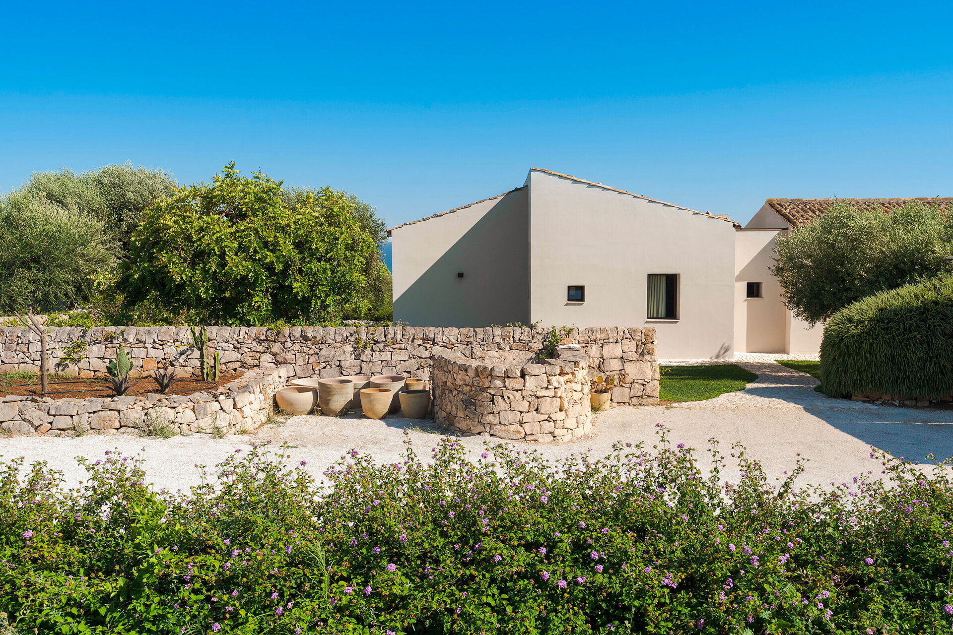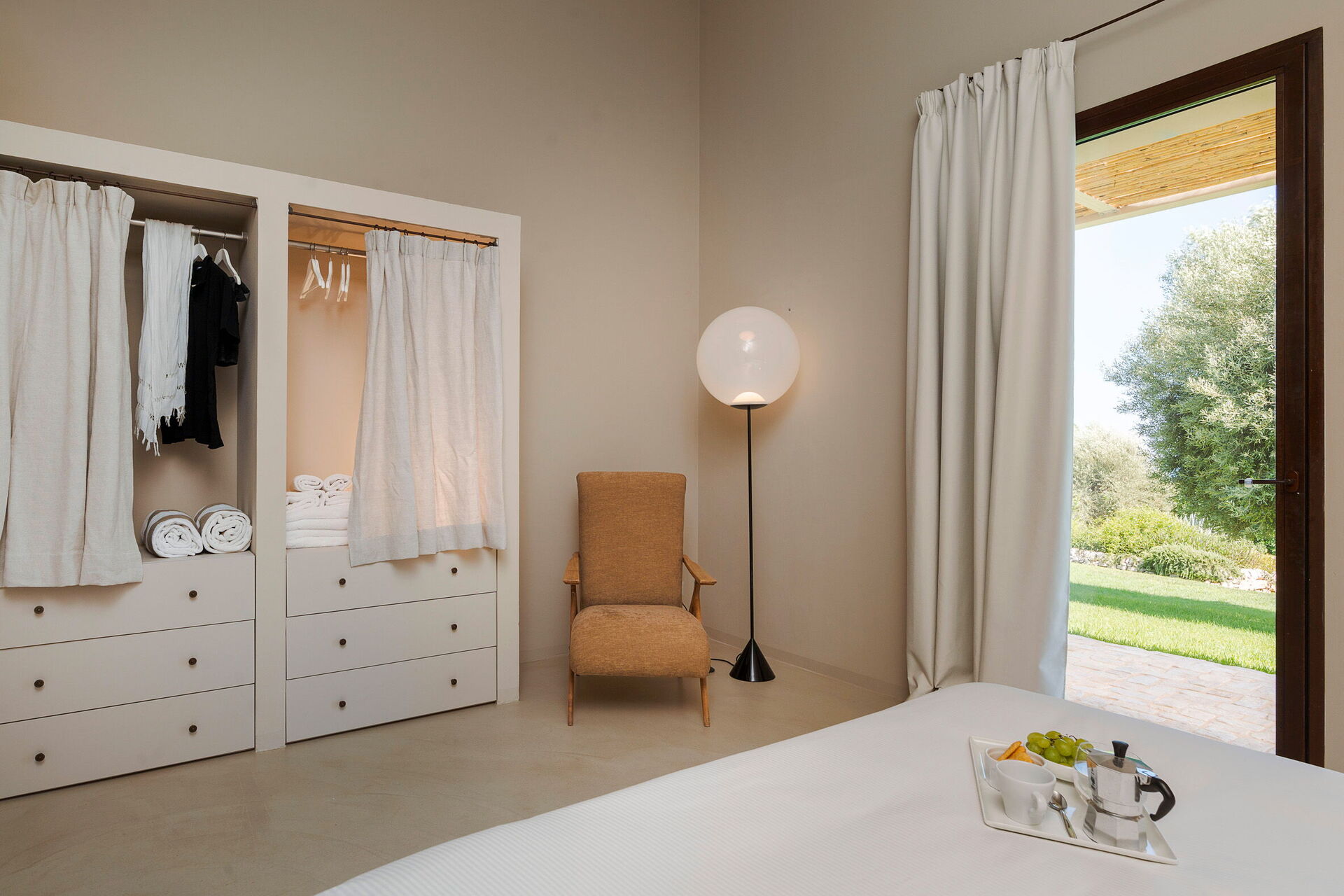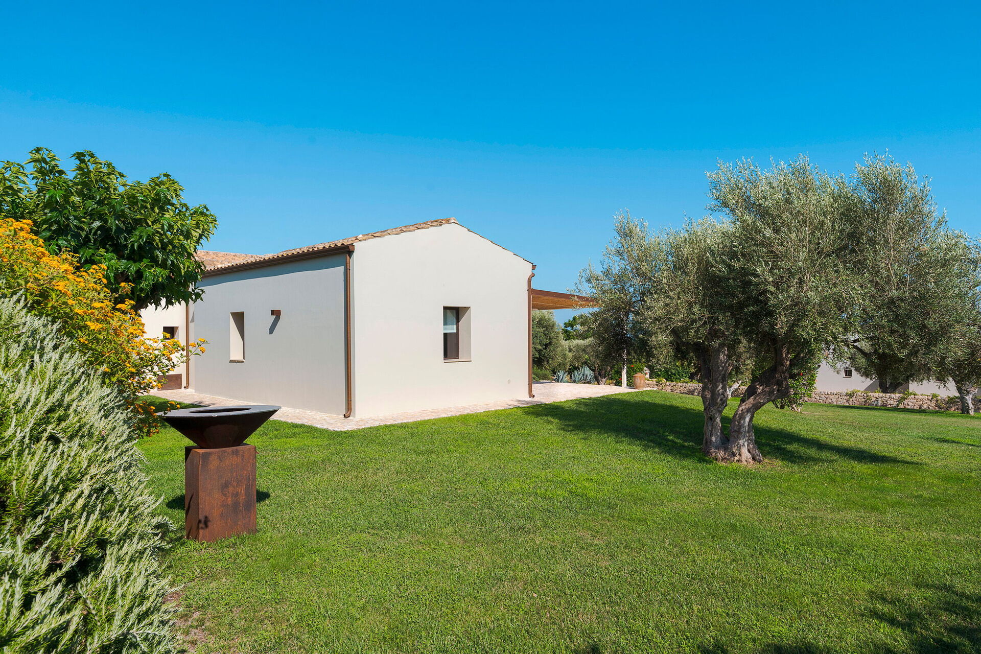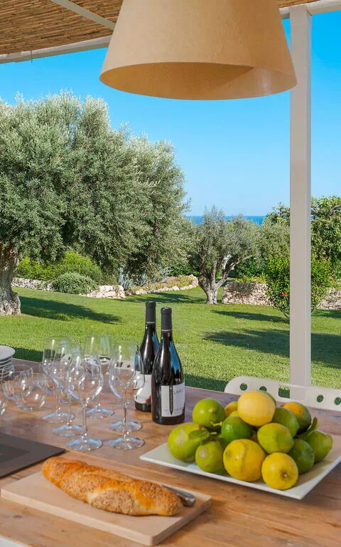 Terrasse med pergola, have, fælles pool
