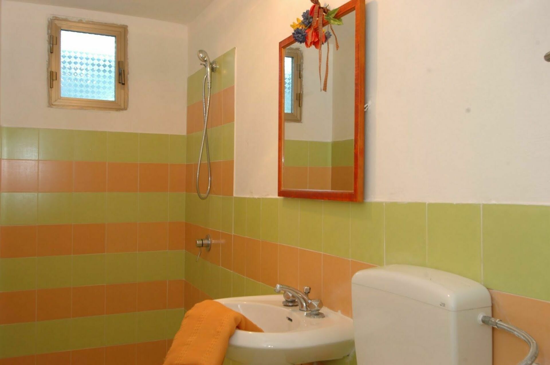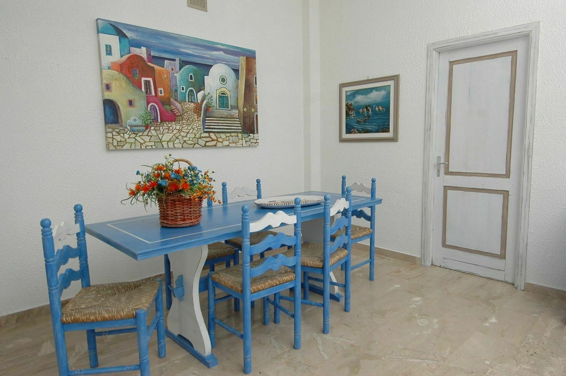Stueetage: stor stue (satellit-tv) med spiseplads med udsigt over en dejlig møbleret loggia, køkken (ovn, brødrister, amerikansk kaffemaskine) med udgang udad, soveværelse med dobbeltseng med eget badeværelse med brusebad, 2 dobbeltværelser, soveværelse med en enkeltseng, badeværelse med badekar.