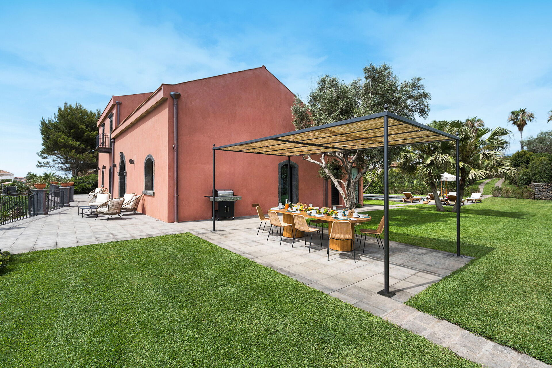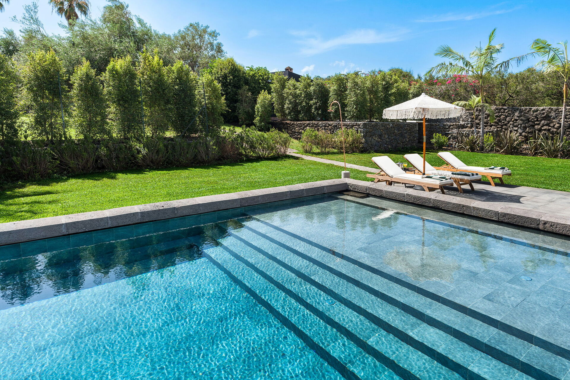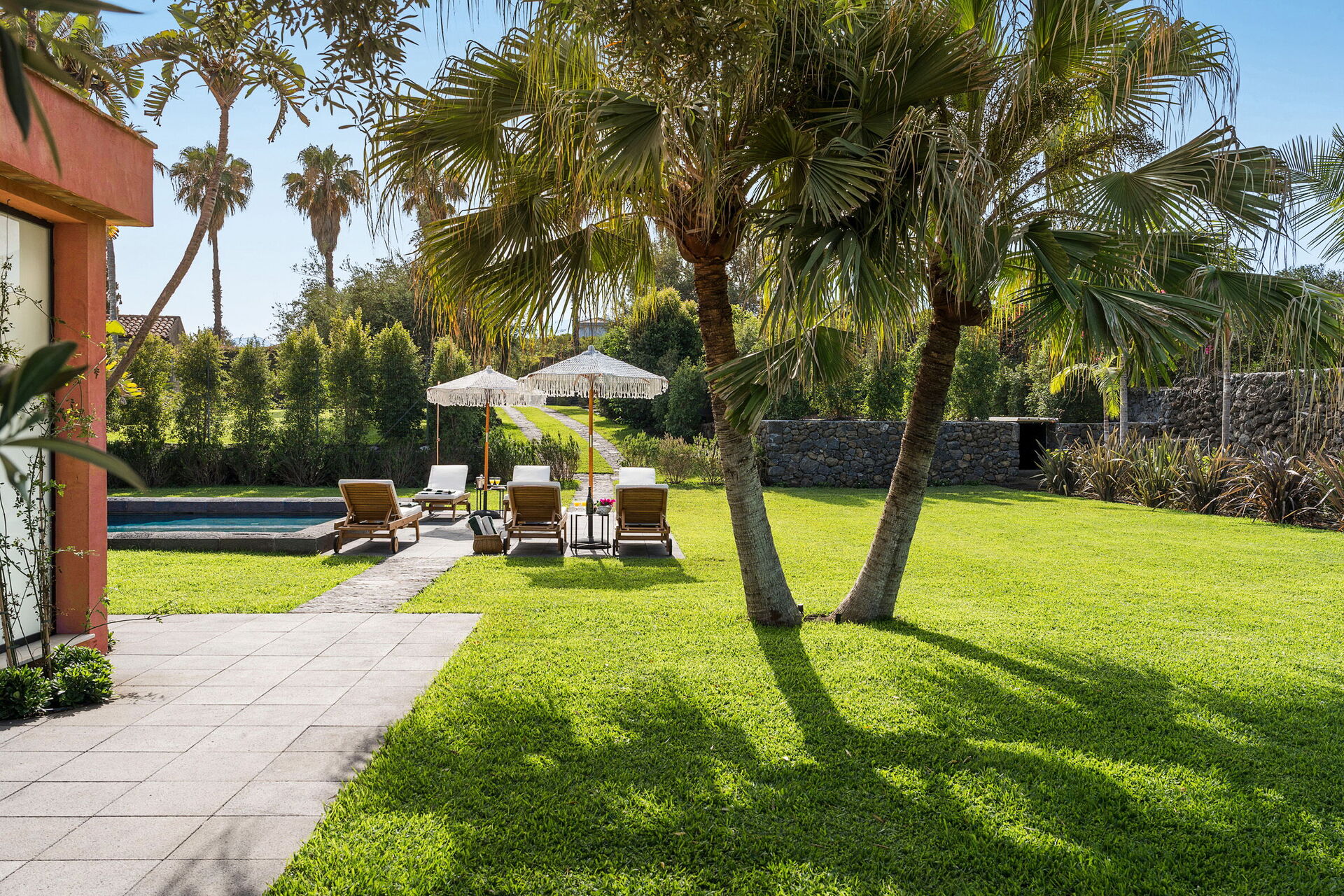 Huset er ikke kun omgivet af store terrasser og en stor have, men har også en eksklusiv privat saltvandspool.