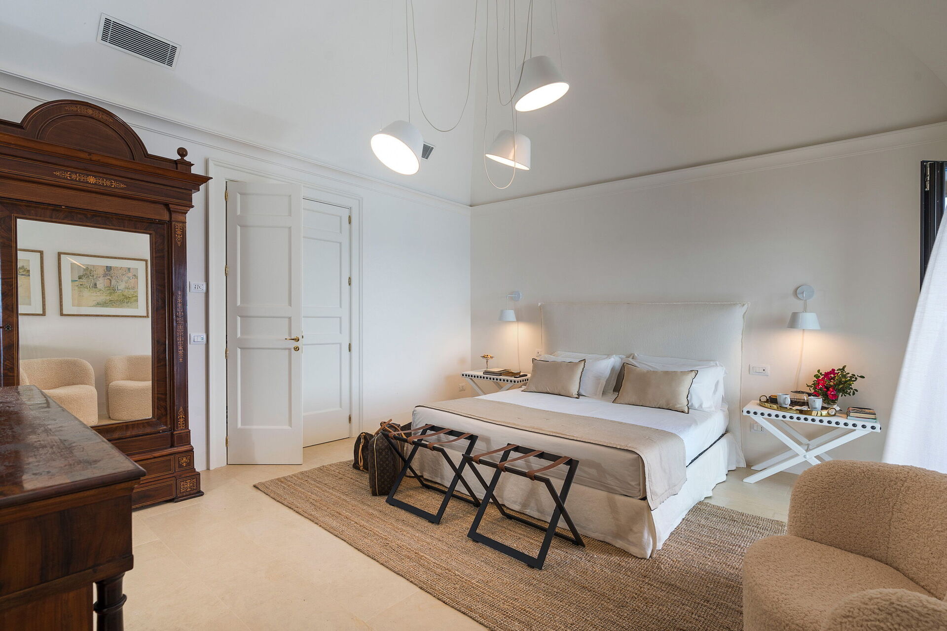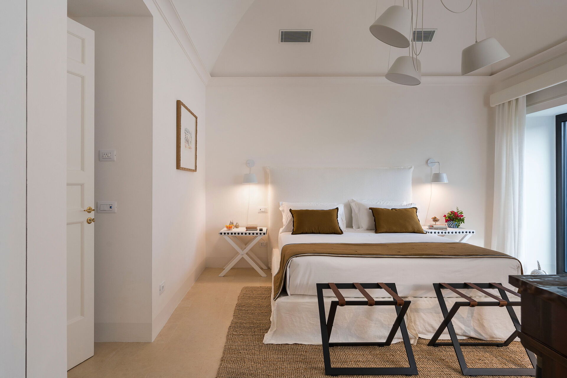 Første sal: 3 dobbeltværelser (aircondition, myggenet) med eget badeværelse med bruser.