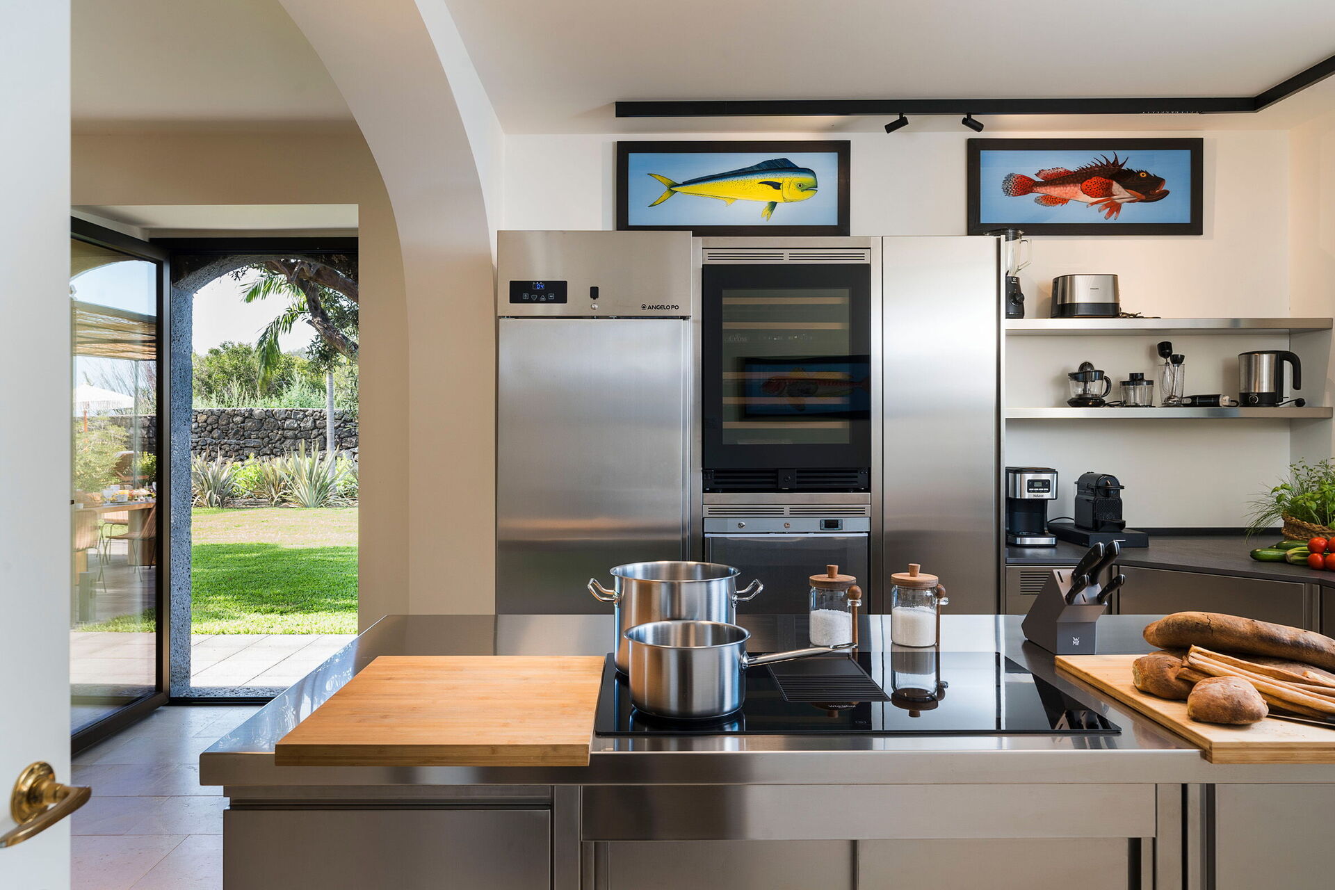 - pavillon og møblerede udendørs spiseområder med panoramisk udsigt