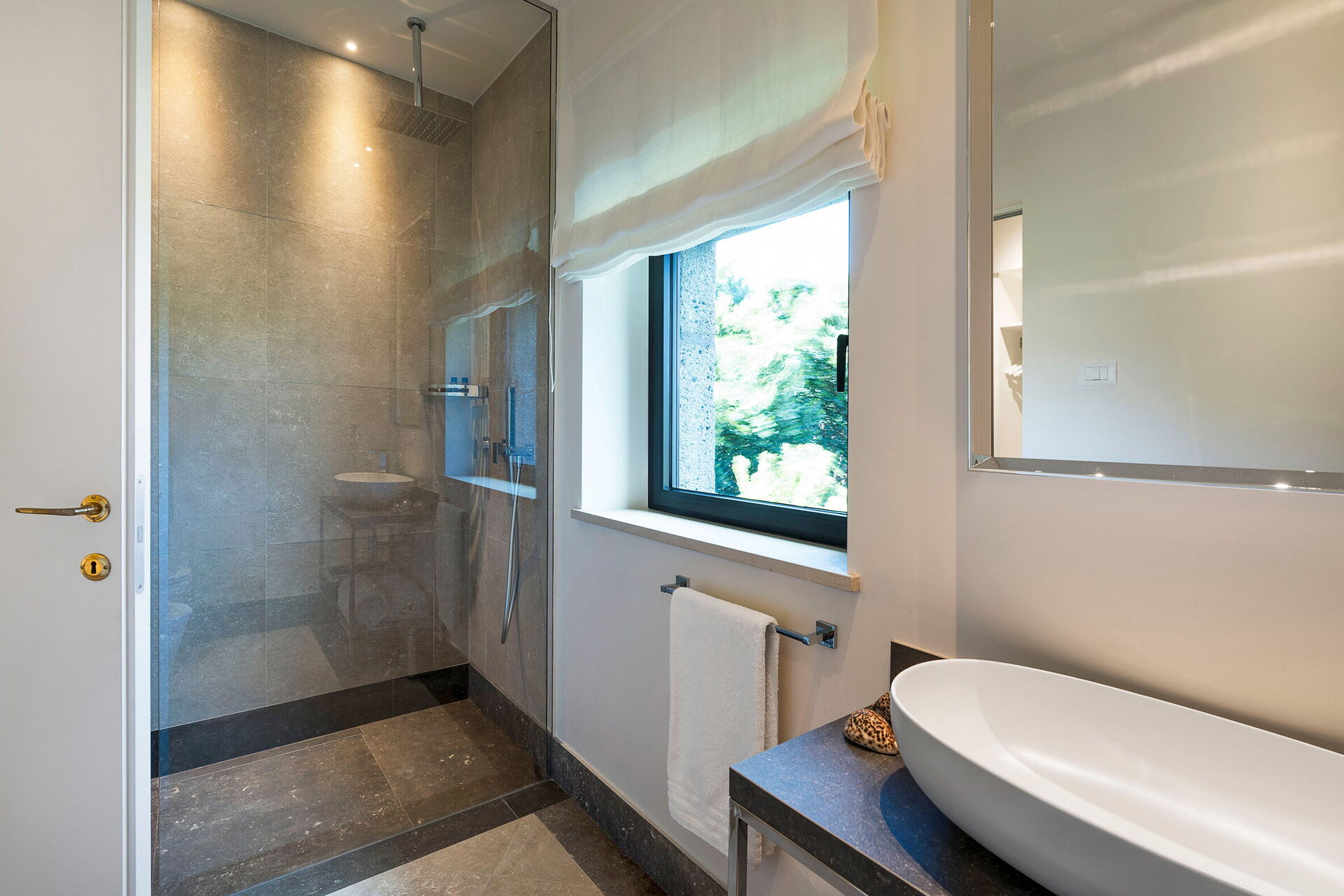 Stueetage: (kun tilgængelig udefra, ikke forbundet med resten af villaen indvendigt): omklædningsrum, badeværelse med bruser.
