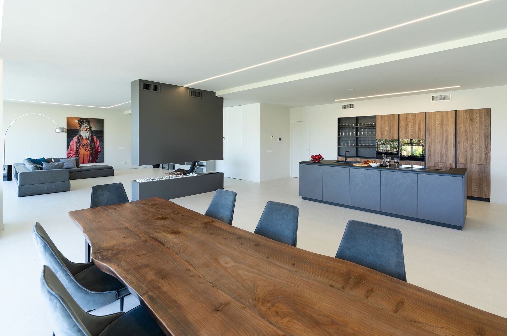 Stor opholdsstue med stue, spisestue og køkken (ovn, fryser, opvaskemaskine, kaffemaskiner), 1 badeværelse med bruser, vaskerum, soveværelse med dobbeltseng med eget badeværelse med bruser og jacuzzi , 2 soveværelser med dobbeltsenge hver med eget badeværelse med bruser, wellness-område (sauna)