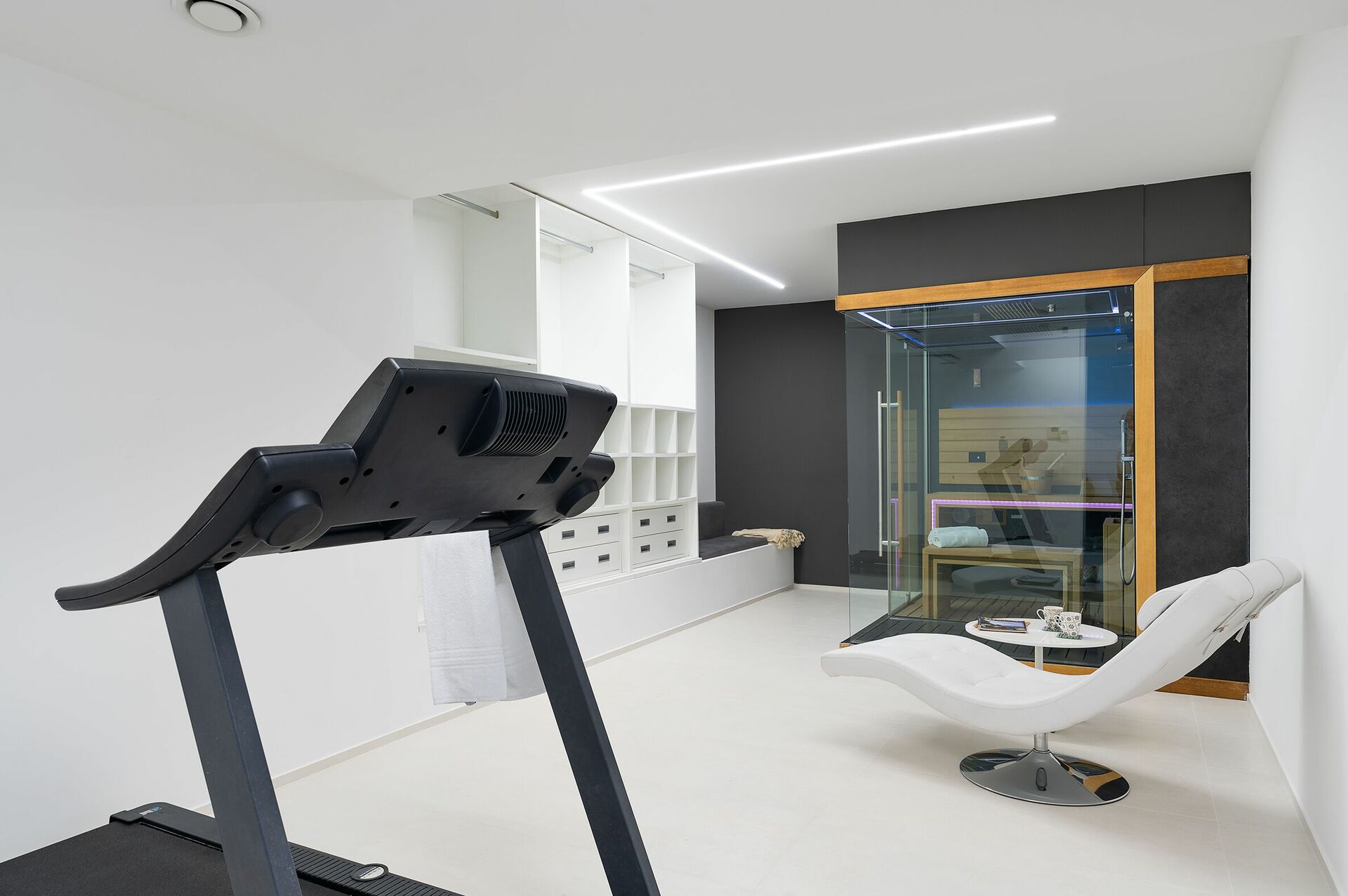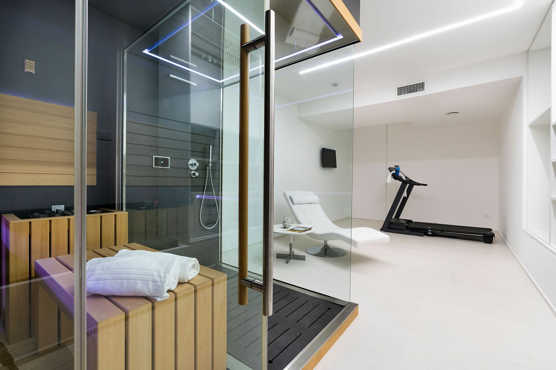 - Wellness-område med sauna og løbebånd