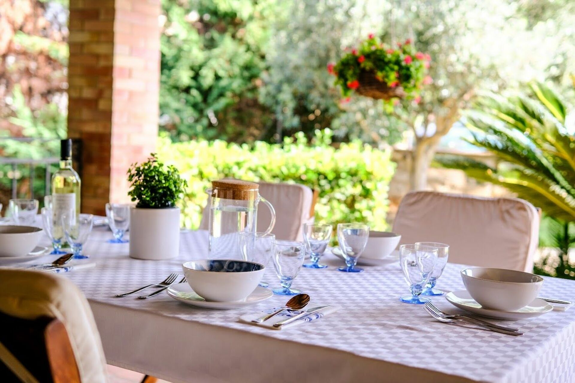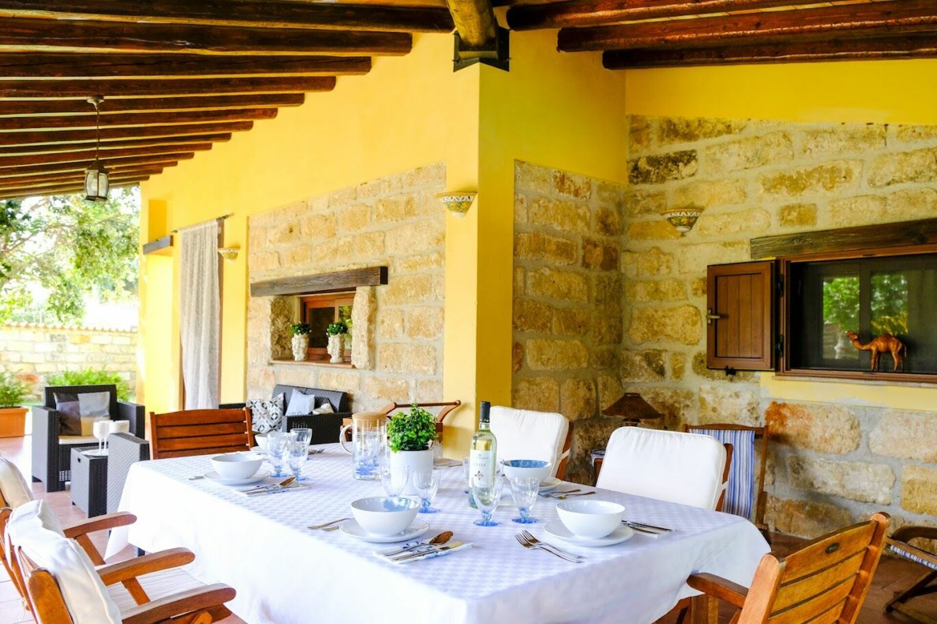 Omkring huset finder du en rummelig møbleret veranda med udsigt til haven og poolen.