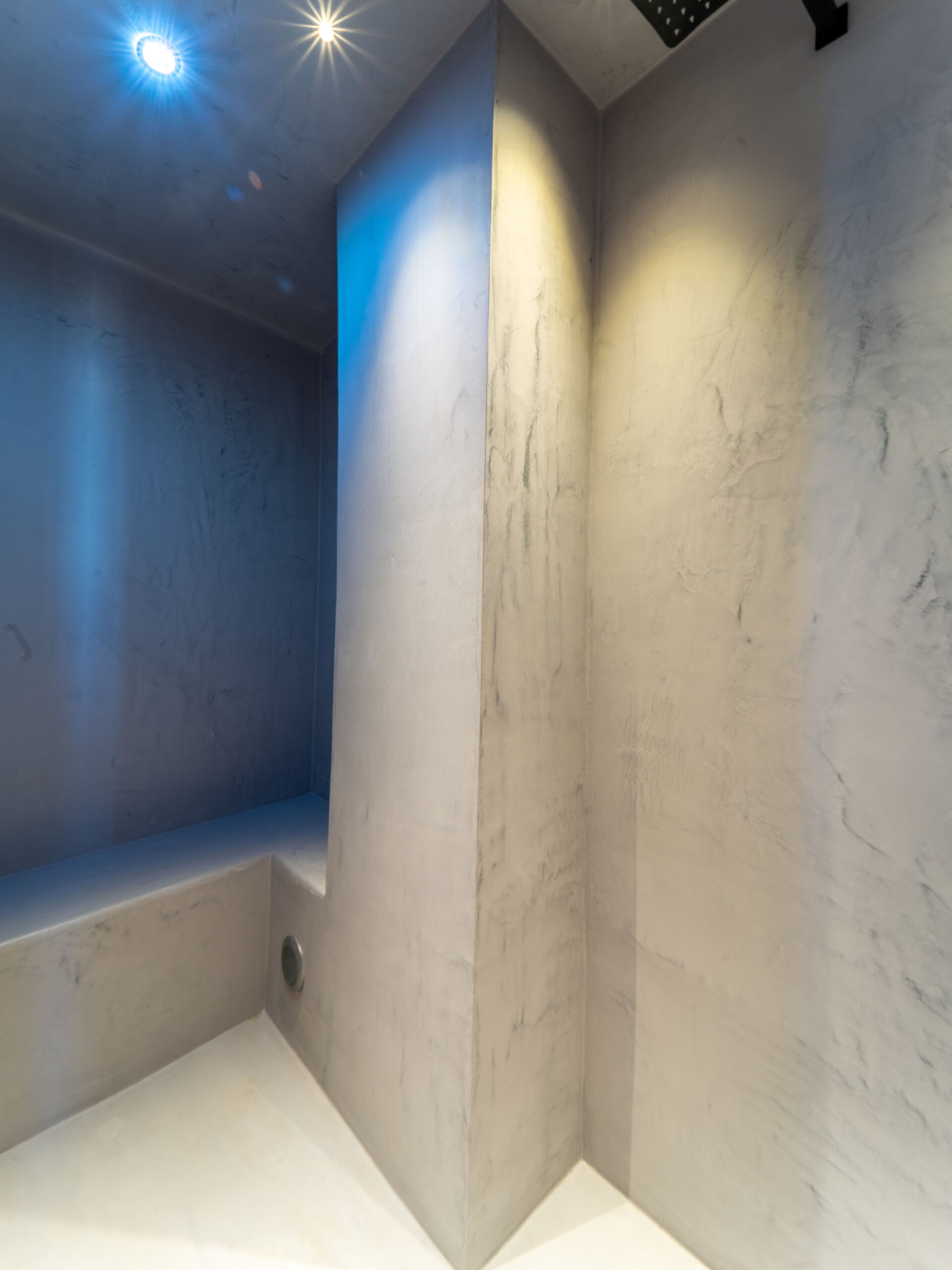 Nedre etage: dobbeltværelse (king size-seng) med privat badeværelse med bruseniche og dampbad.