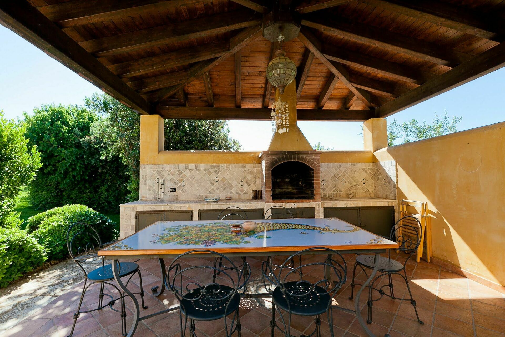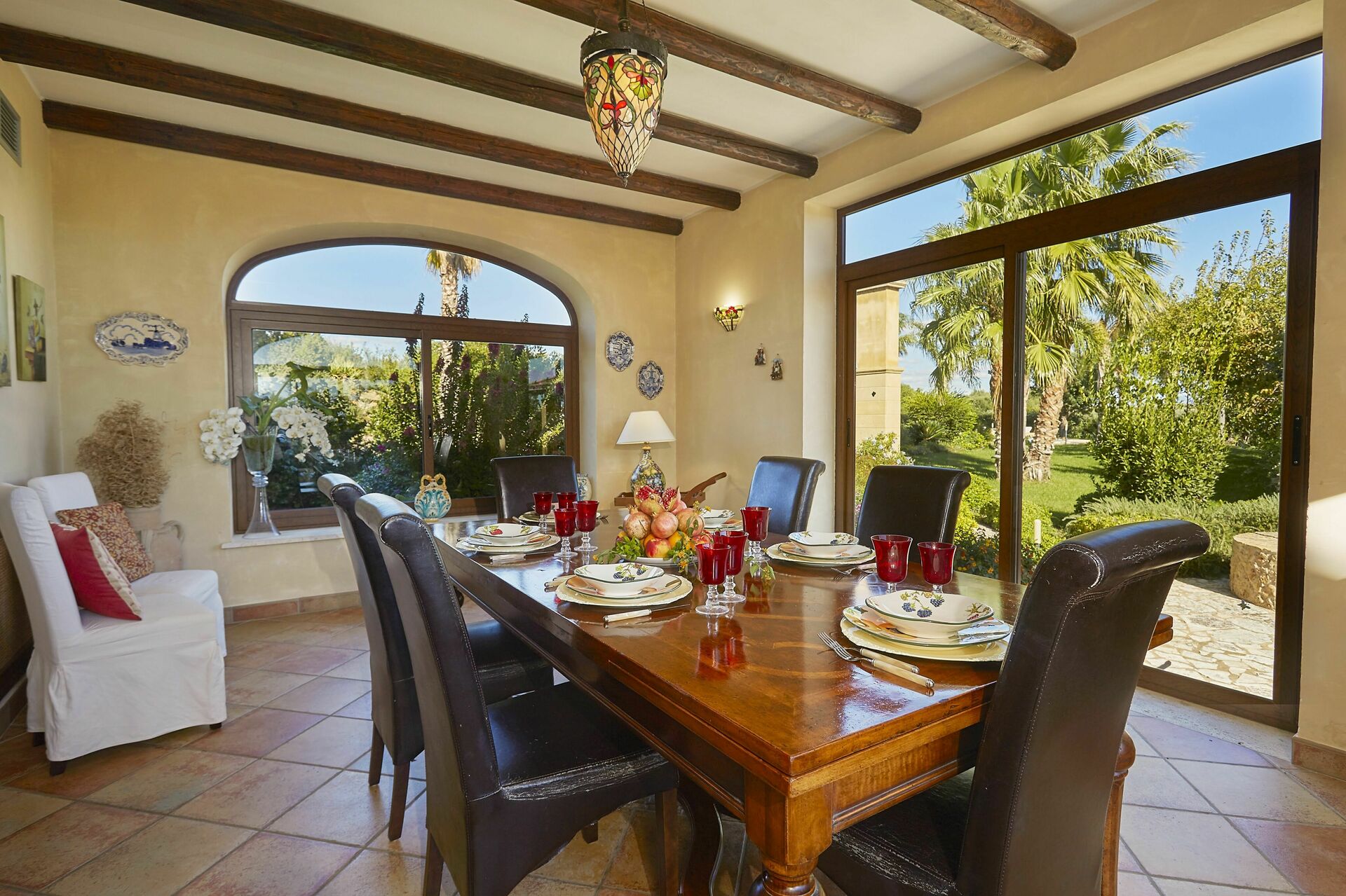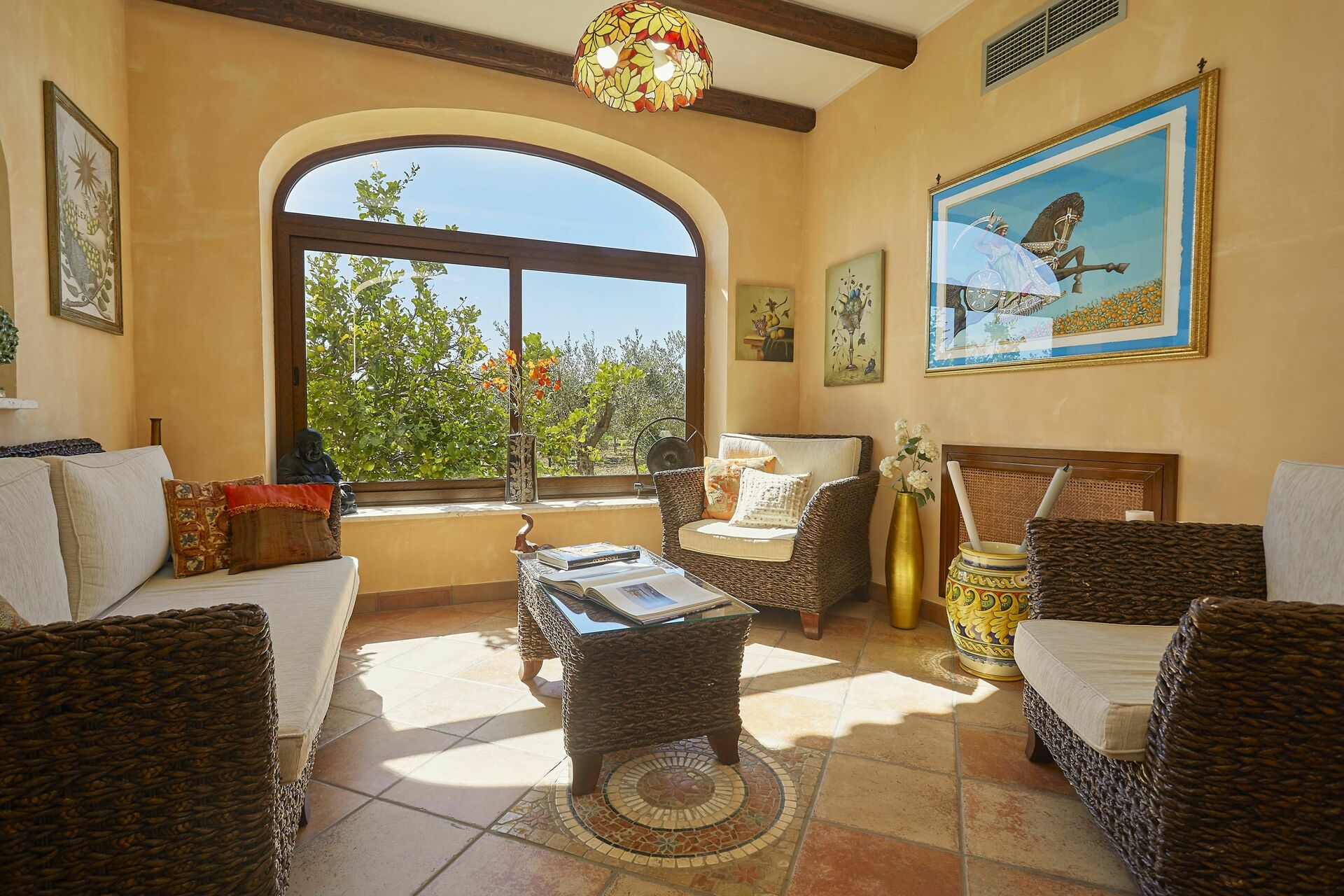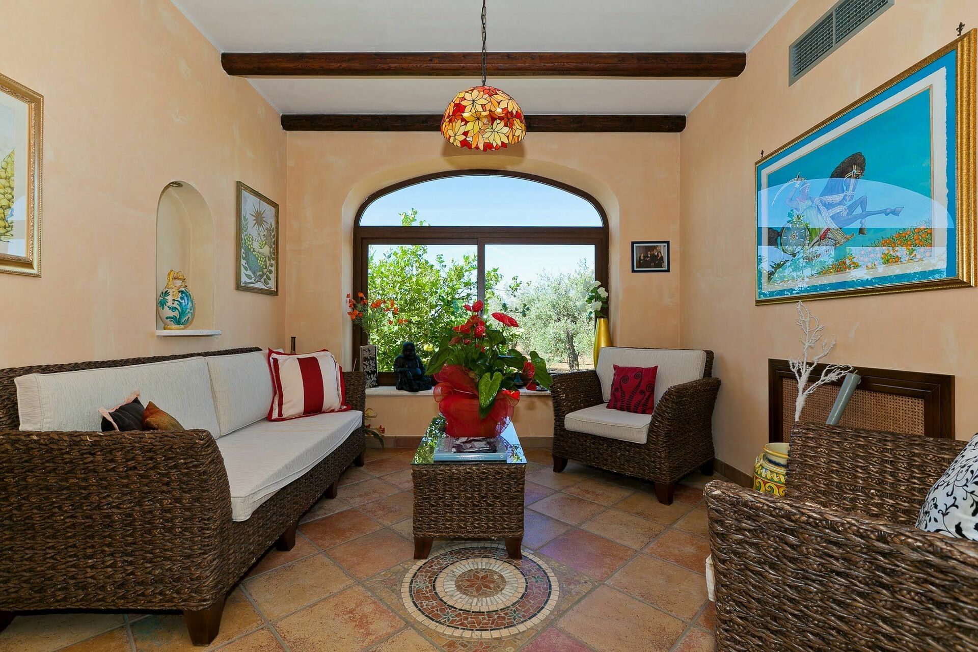 I haven er der også en gårdhave med udekøkken, grill og et dejlig siciliansk majolica bord hvor du kan nyde lækre udendørs middage. Huset er en del af en større ejendom på 14.000 kvadratmeter jord dyrket med olivenlunde, vinmarker og frugttræer.