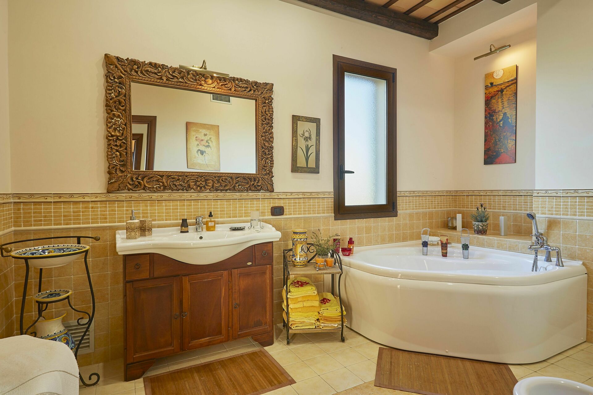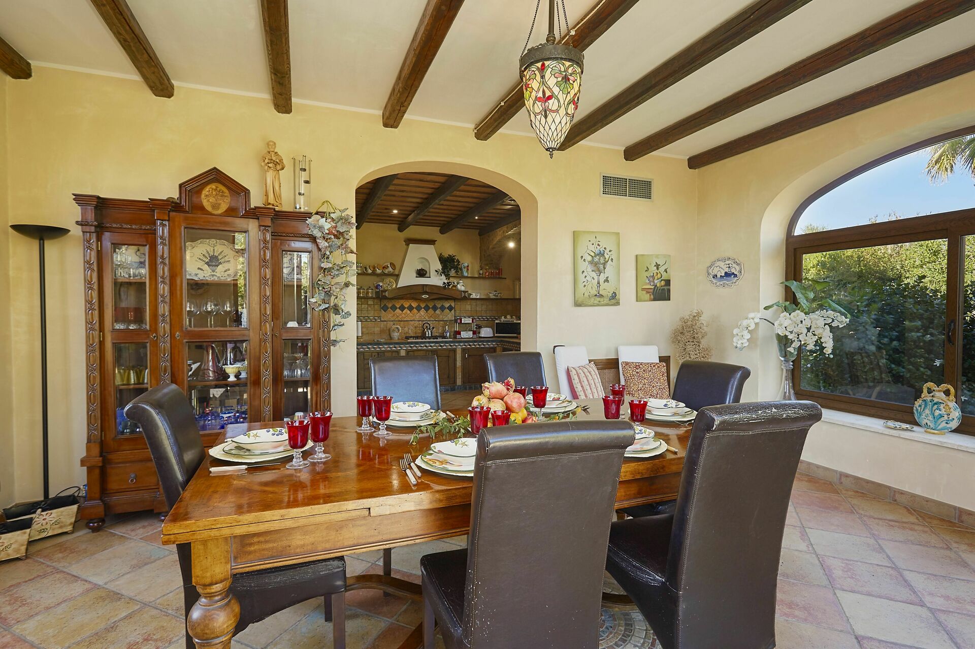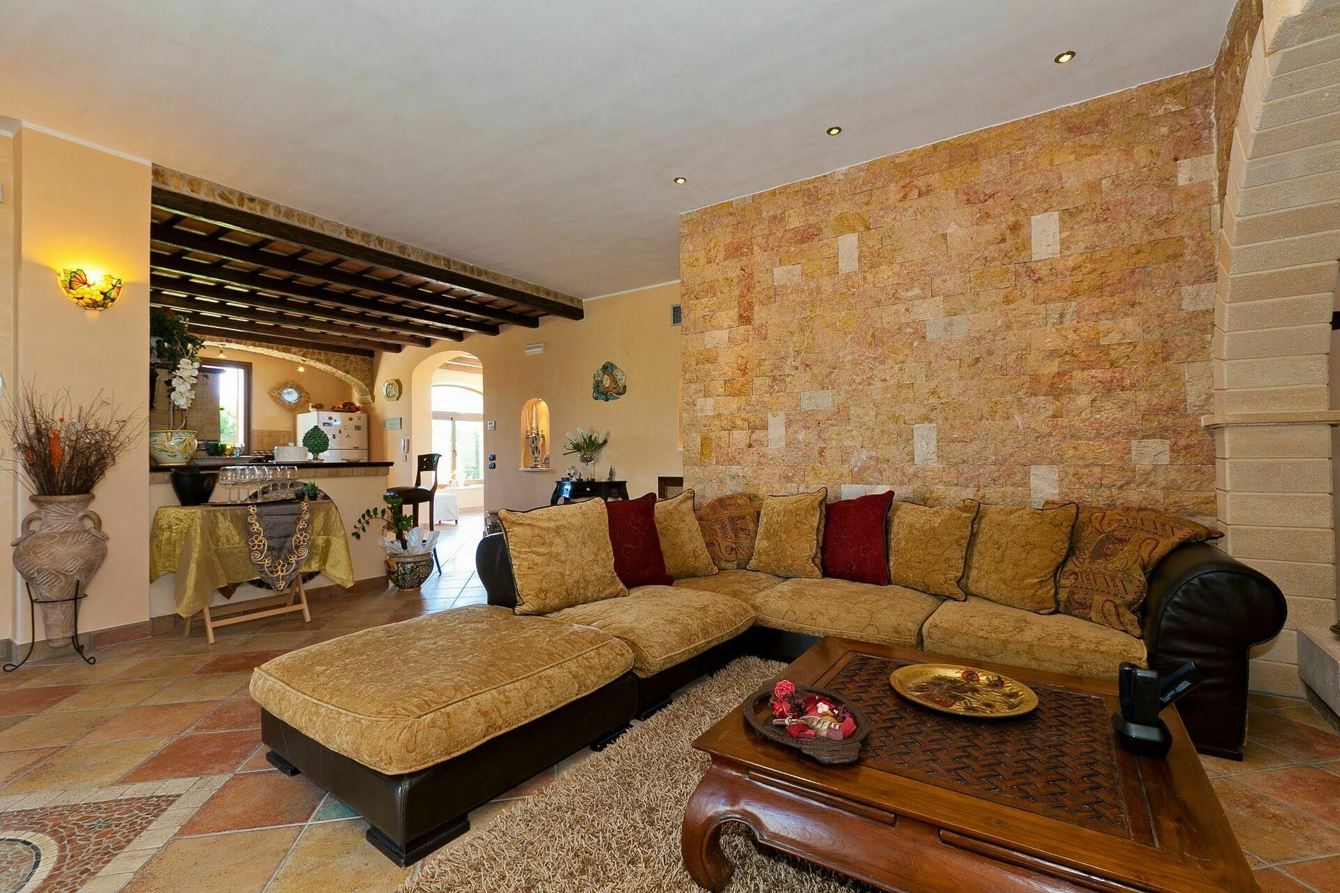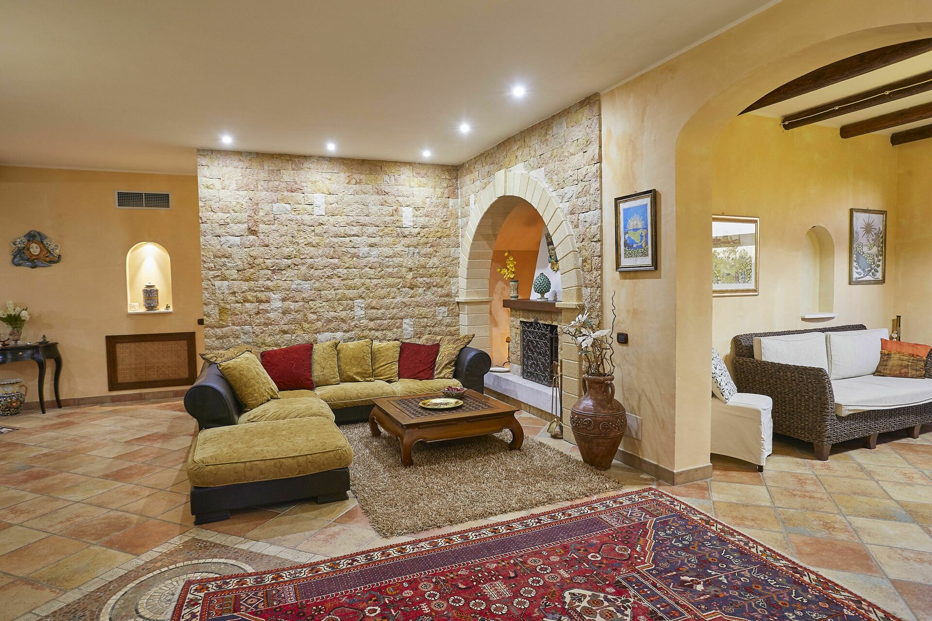 I haven er der også en gårdhave med udekøkken, grill og et dejlig siciliansk majolica bord hvor du kan nyde lækre udendørs middage. Huset er en del af en større ejendom på 14.000 kvadratmeter jord dyrket med olivenlunde, vinmarker og frugttræer.