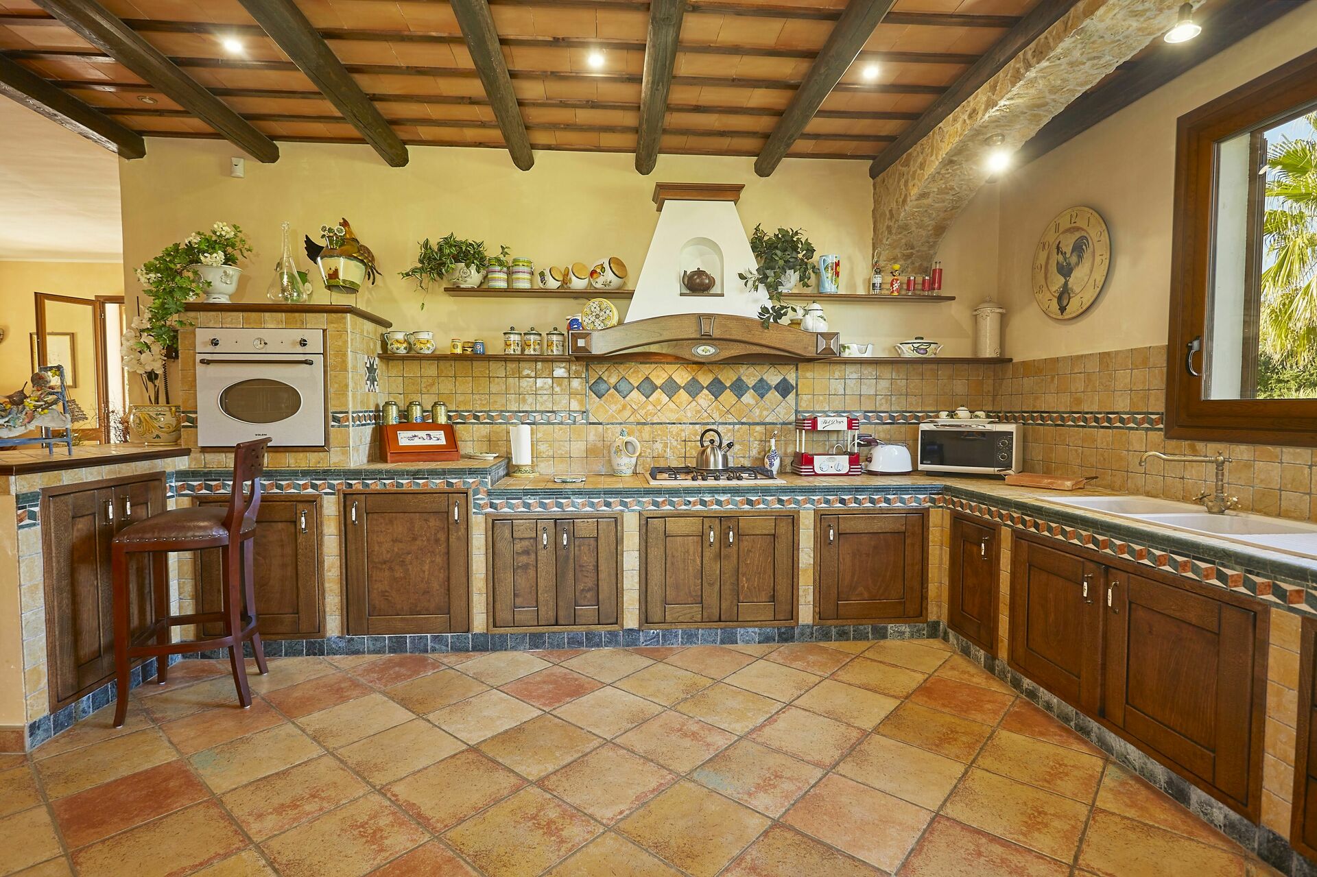 Det store køkken har udsigt over spisestuen og de store vinduer giver gæsterne mulighed for at nyde udsigten over den smukke og frodige vegetation i haven omkring villaen med farverige blomster og planter. Huset har fire soveværelser, to soveværelser med dobbeltsenge og to soveværelser med enkeltsenge.