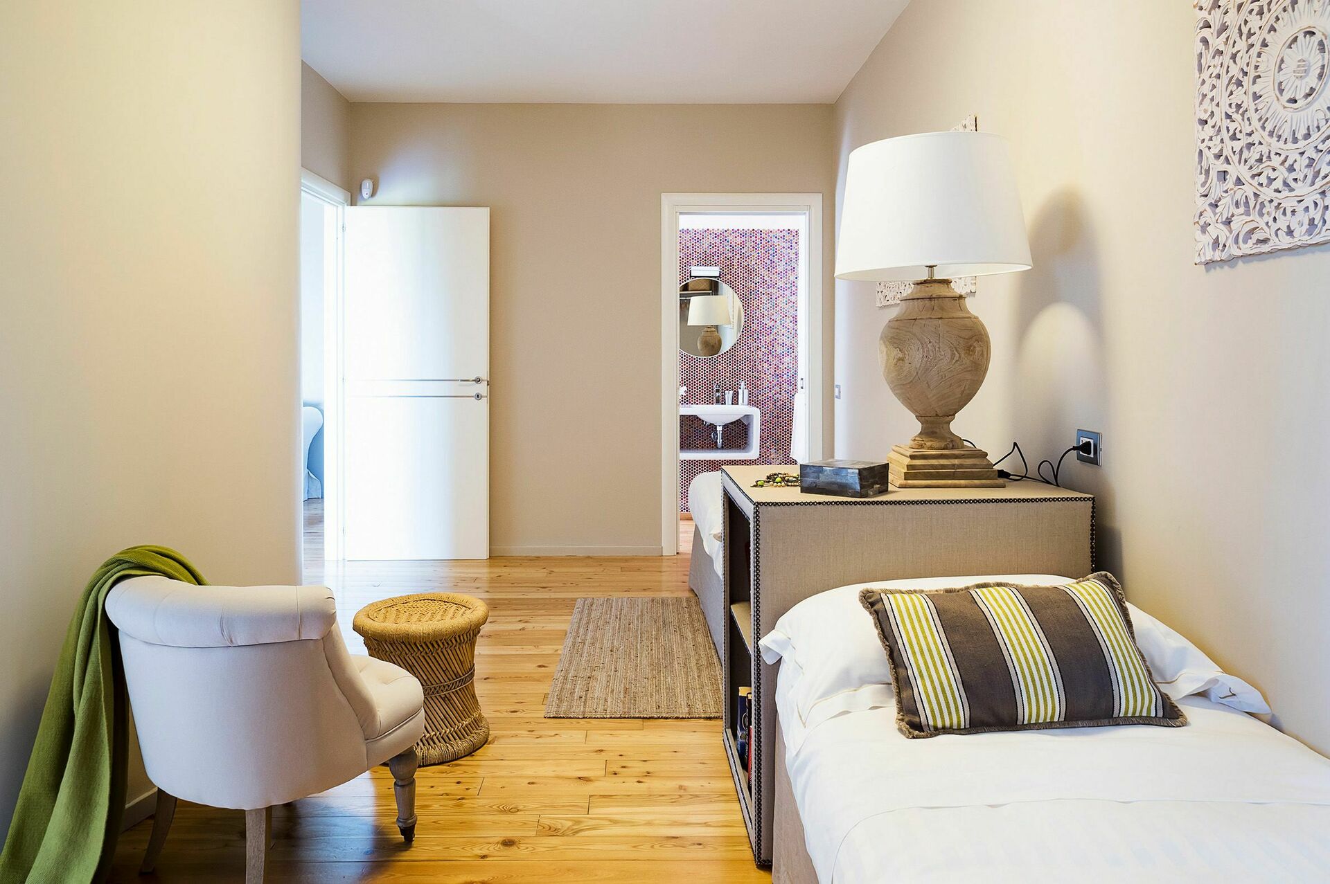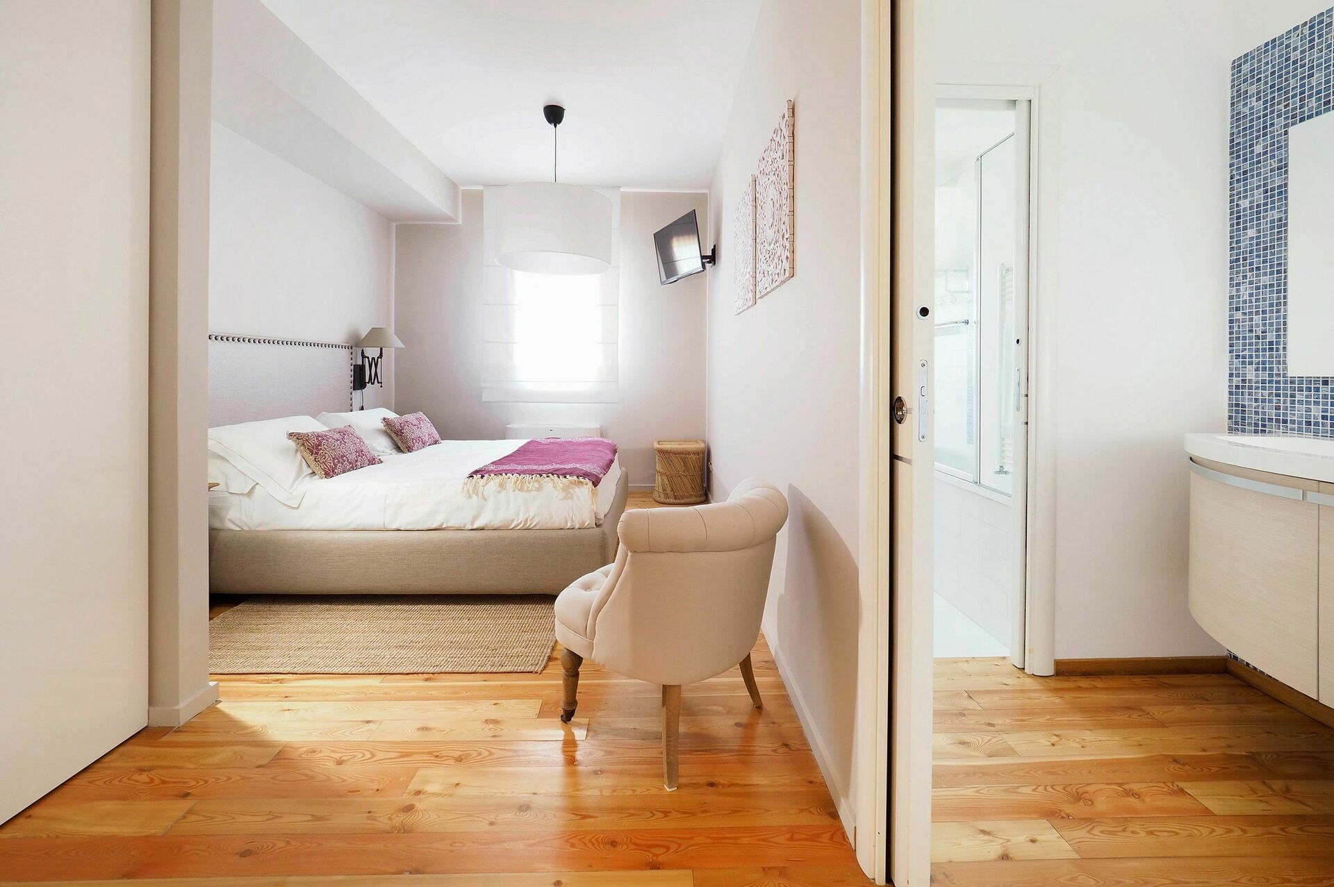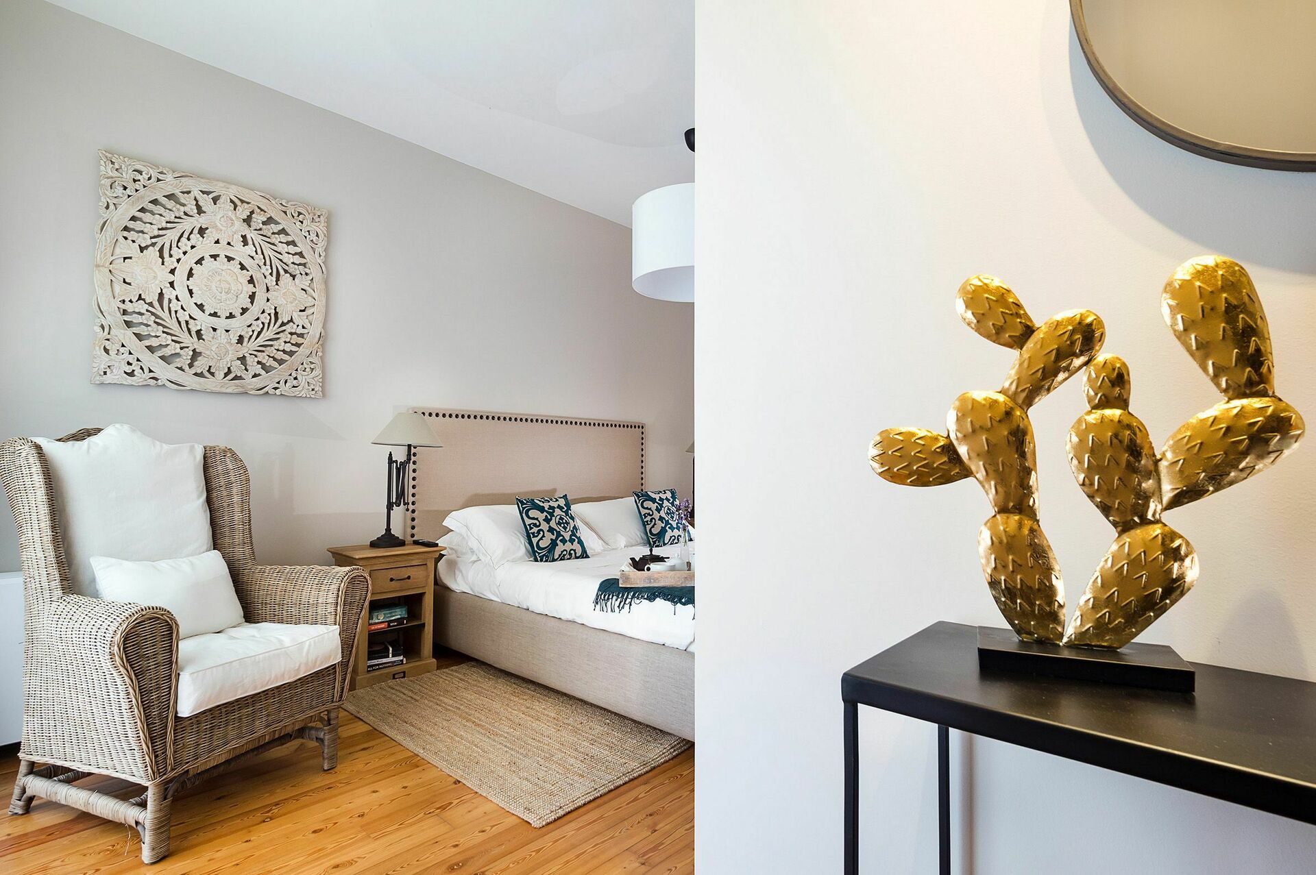 Denne smukke bolig tilbyder gæsterne raffinerede, elegante værelser indrettet til perfekt komfort med de bedste materialer, indretning og møblering, såsom parketgulve og smukke tekstiler. I stueetagen er den varme hyggelig opholdsstue, med en spisestue og et fuldt udstyret murkøkken. Fra spisestuen fører en trappe til nederste etage med tre vidunderlige soveværelser med eget badeværelse, en gang med en sovesofa og en lys stue.