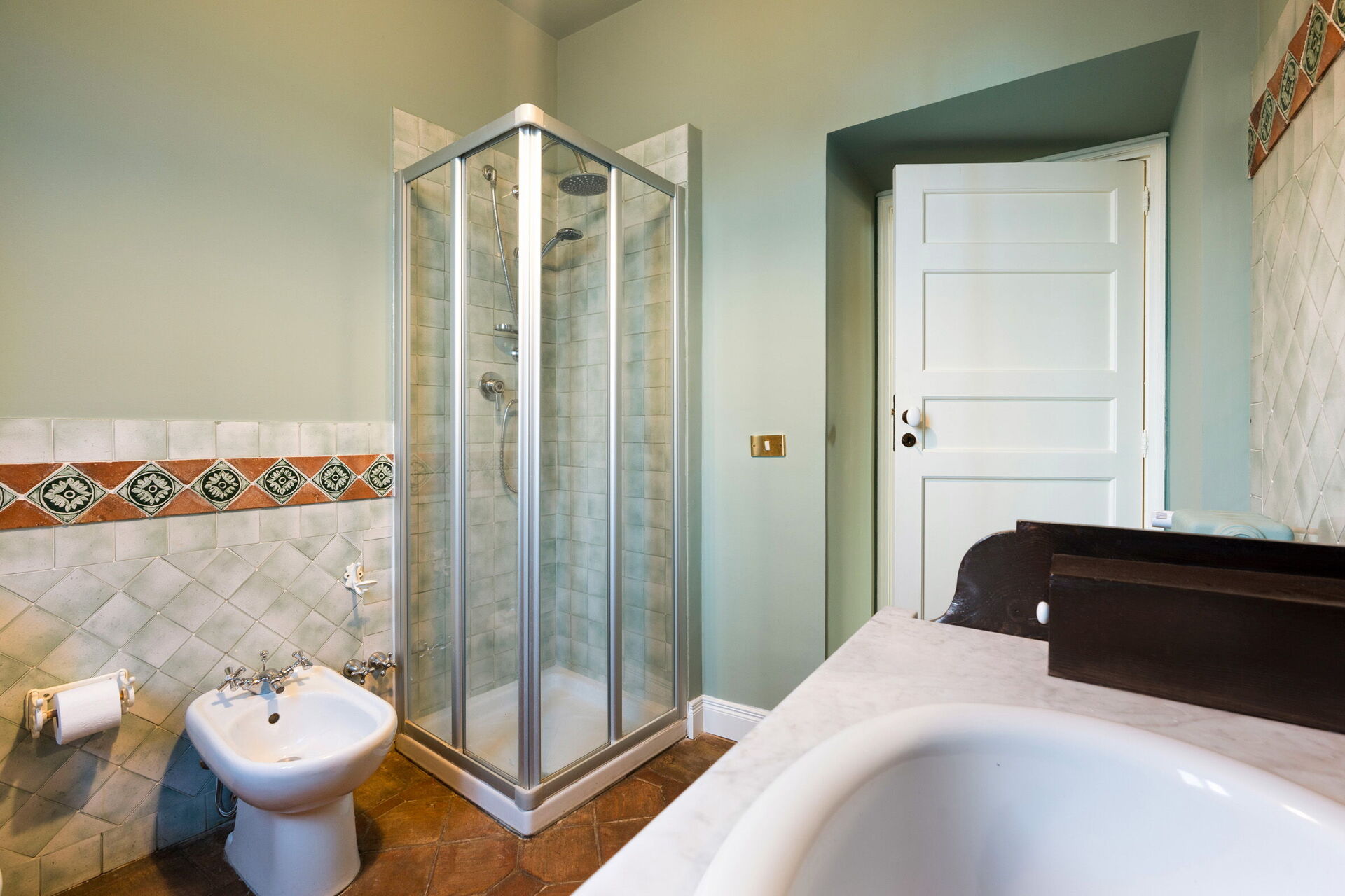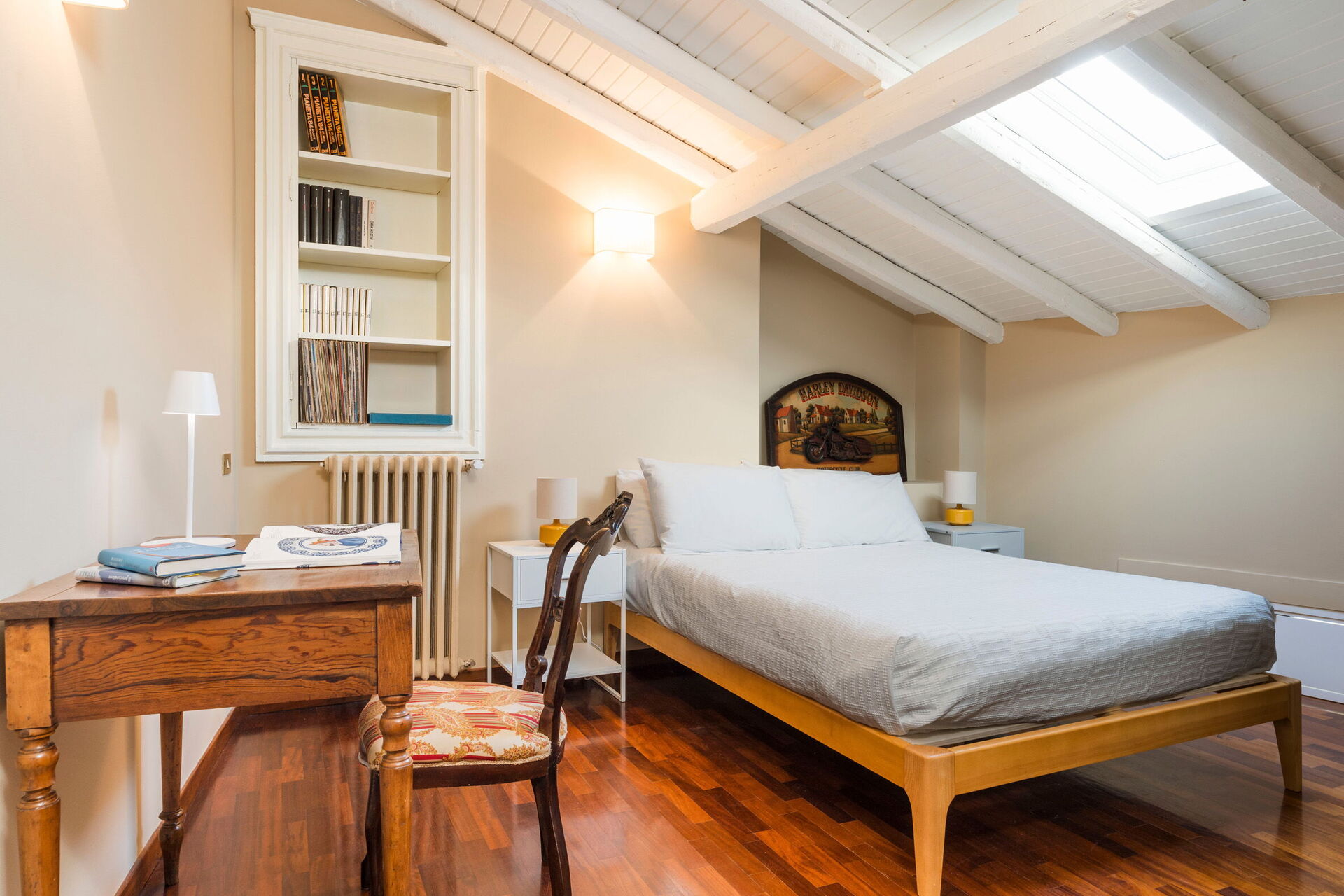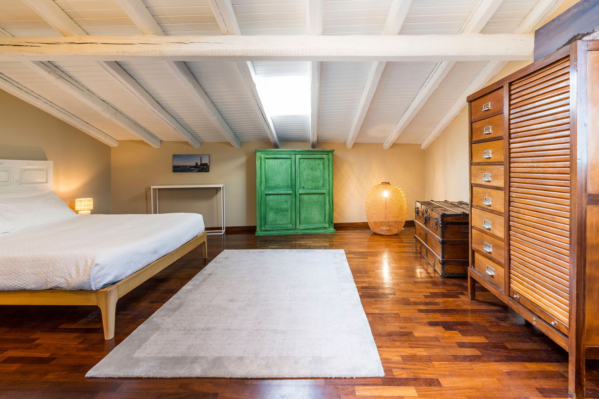 Første sal (på loftet): dobbeltværelse (aircondition, sengemål: 160 x 200 cm), badeværelse med bruser, soveværelse med lille dobbeltseng (aircondition).