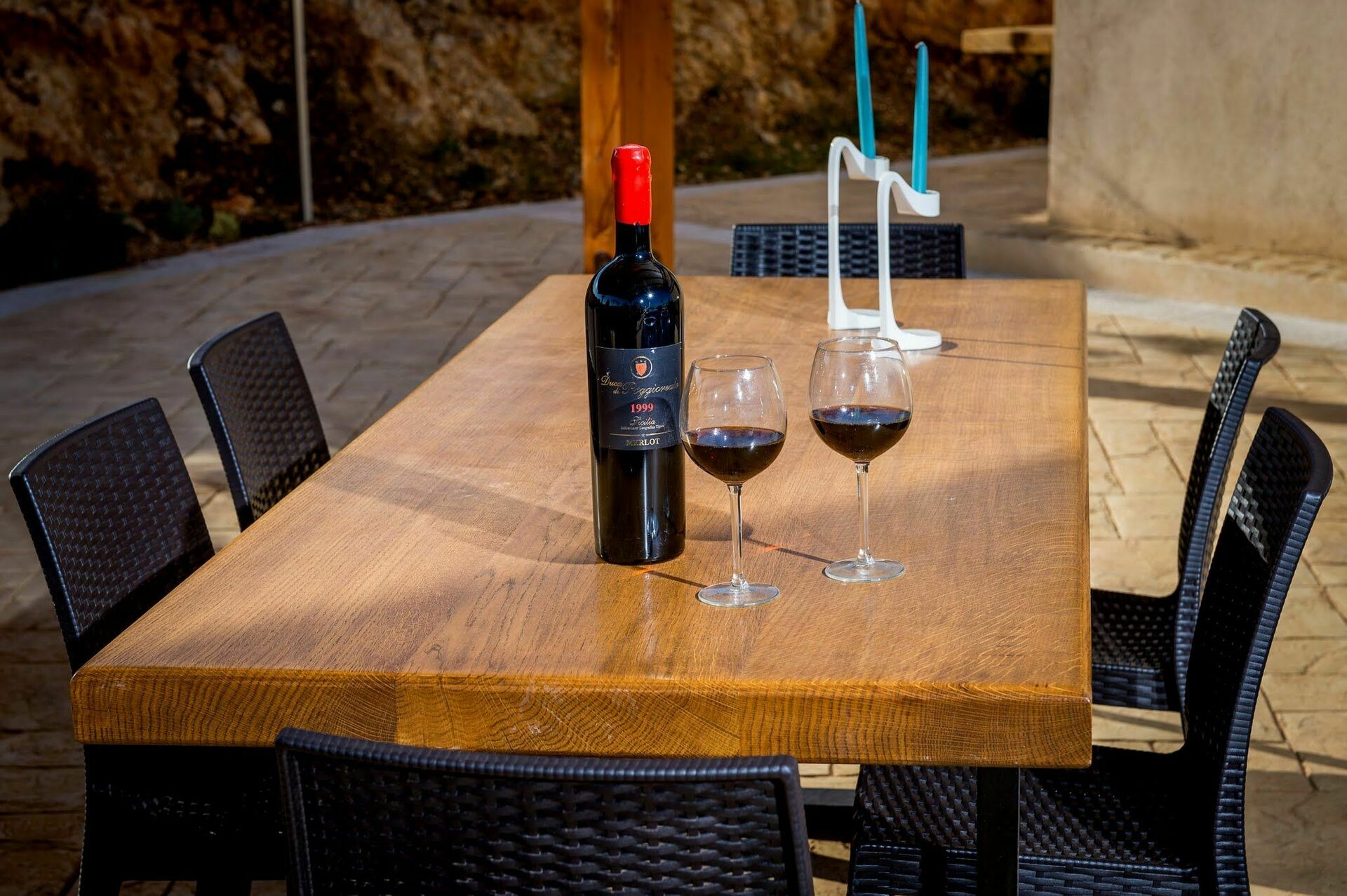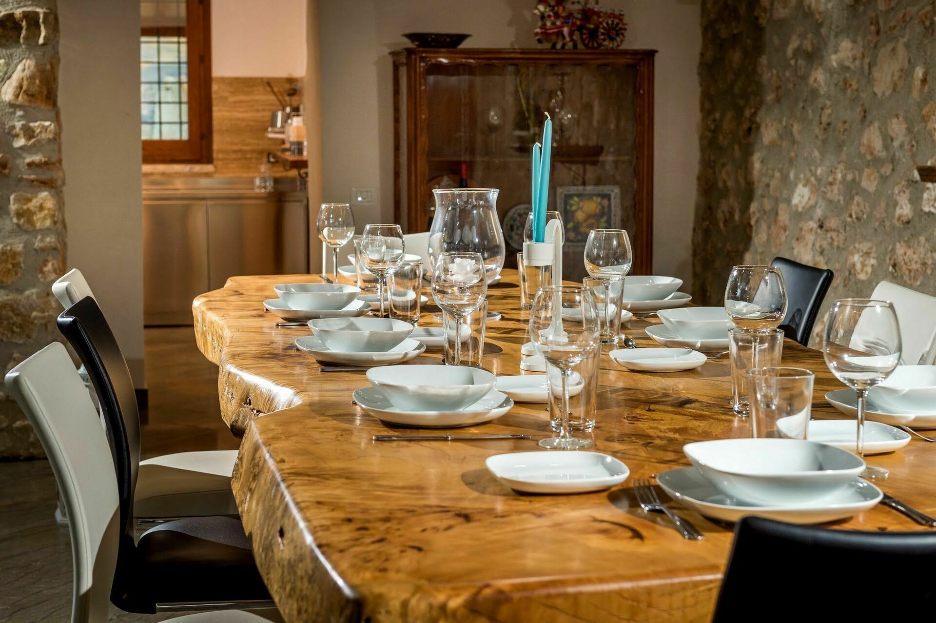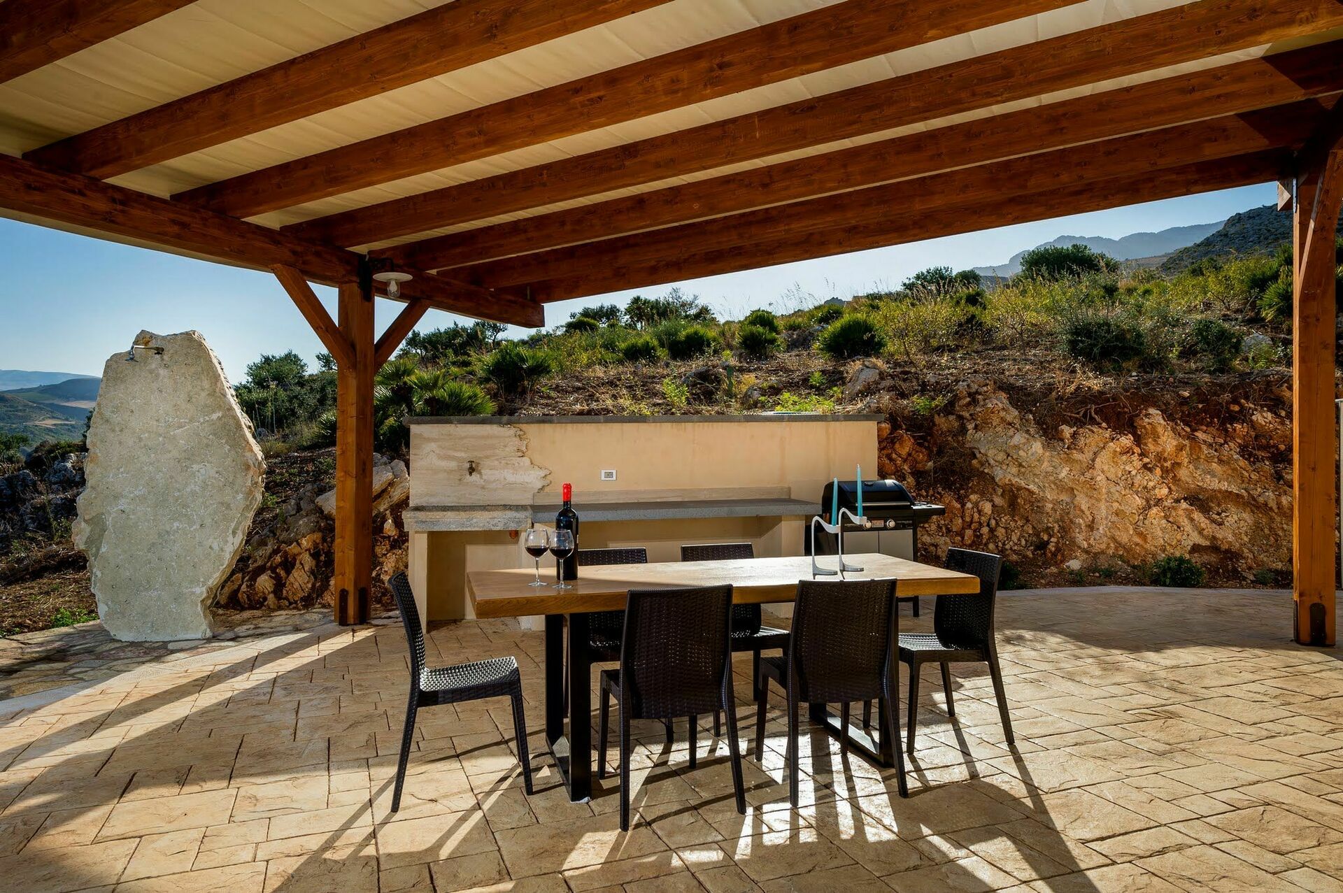 En panoramisk veranda er tilgængelig for gæster, ideel til udendørs aktiviteter og måltider. Her finder du også en bbq. Hele udendørs areal er bygget med lokal sten.