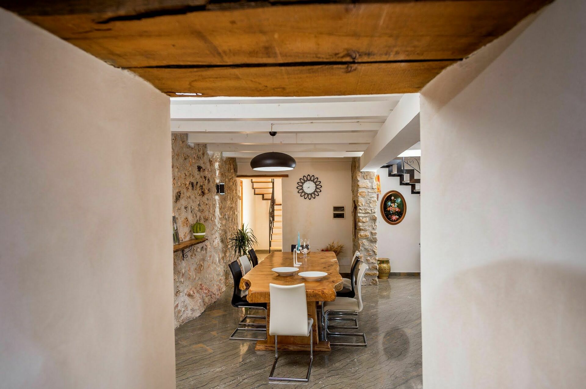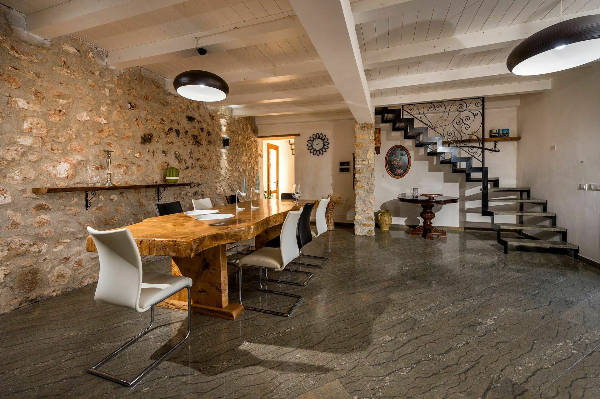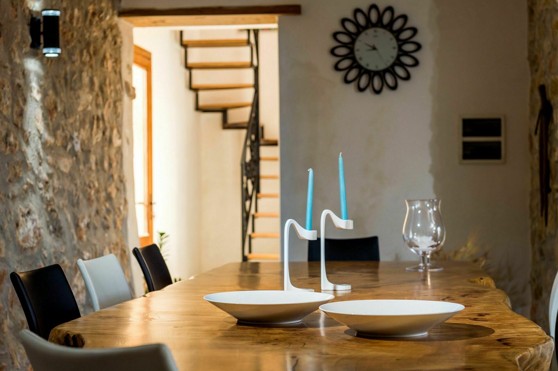Huset er bygget med sten fra omgivelserne og har al den komfort man kan forvente af et moderne feriehus.