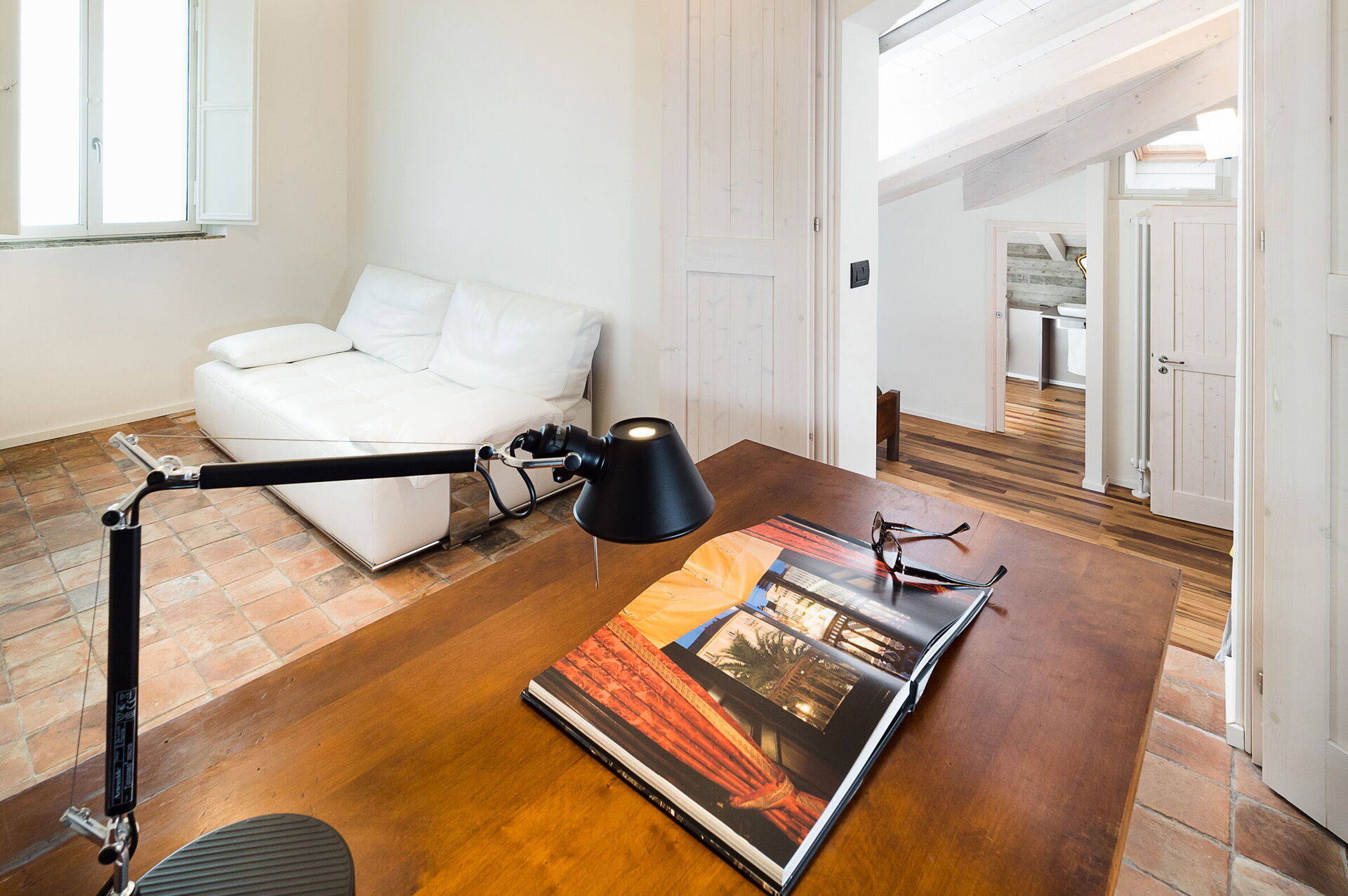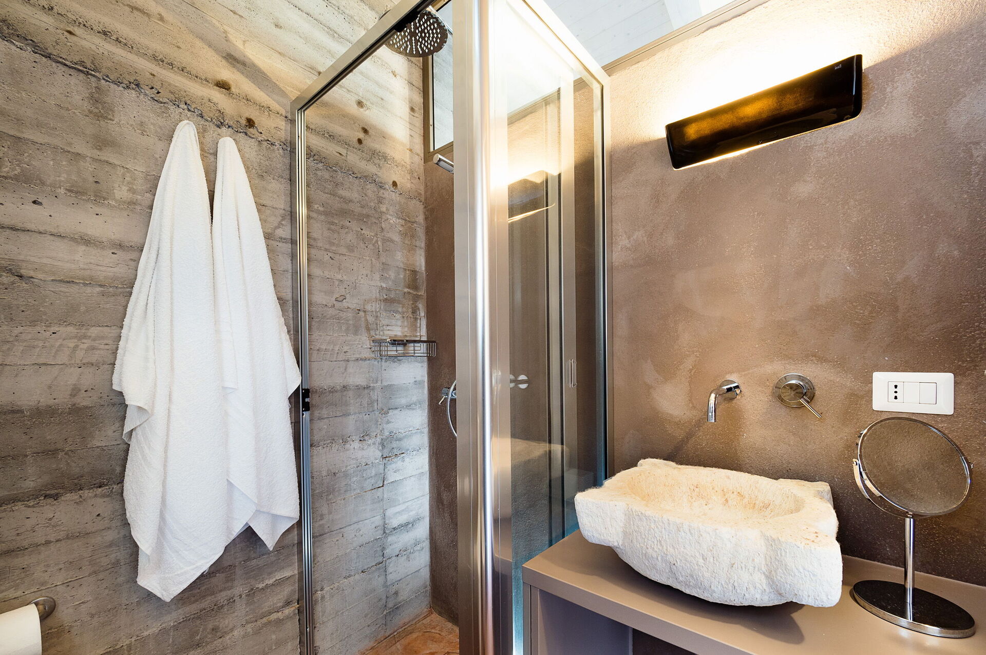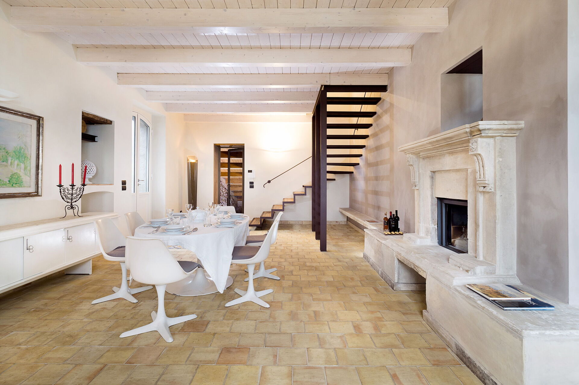 Disse stilfulde interiører kombinerer det moderne funktionelle med traditionelle elementer, såsom originale stenvægge. I stueetagen i huset er stue, spisestue, køkken og badeværelse. På første sal er der tre soveværelser med eget badeværelse og i nederste etage i det tidligere vinpresserum er wellness-området. De to anneks har henholdsvis en suite med dobbeltseng på loftet (Casetta) og et soveværelse med dobbeltseng (Dependance), begge med ensuite badeværelser.