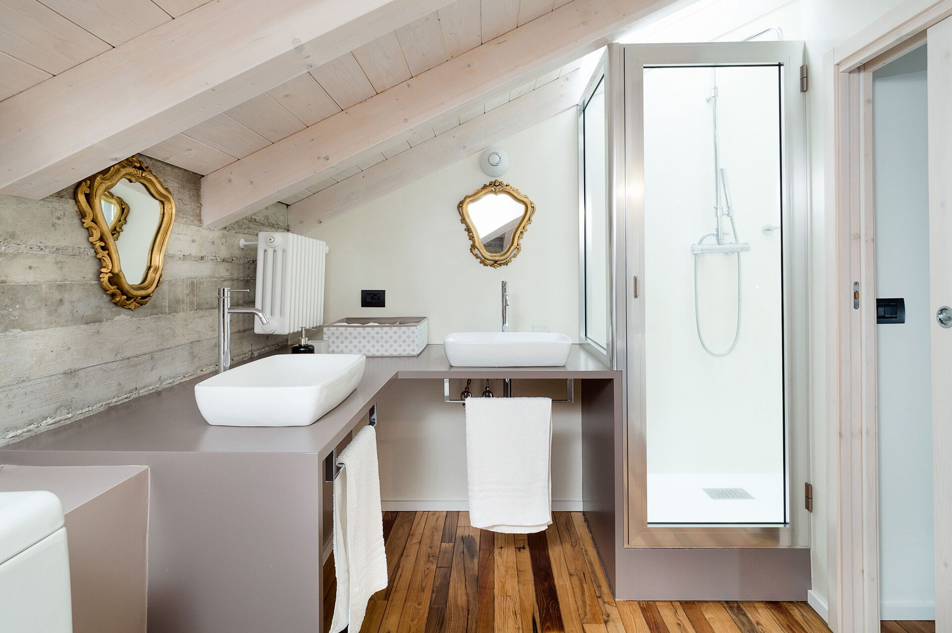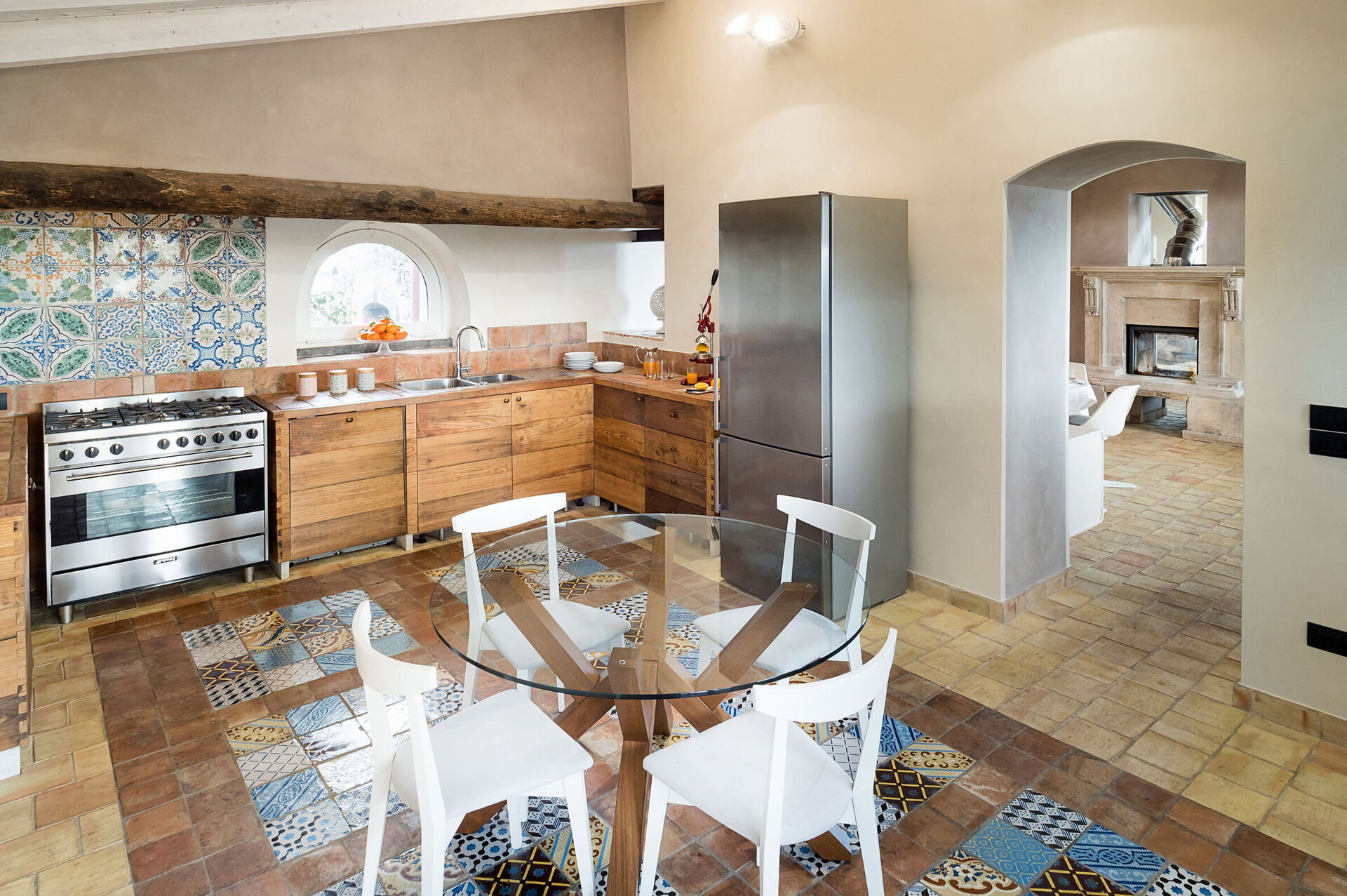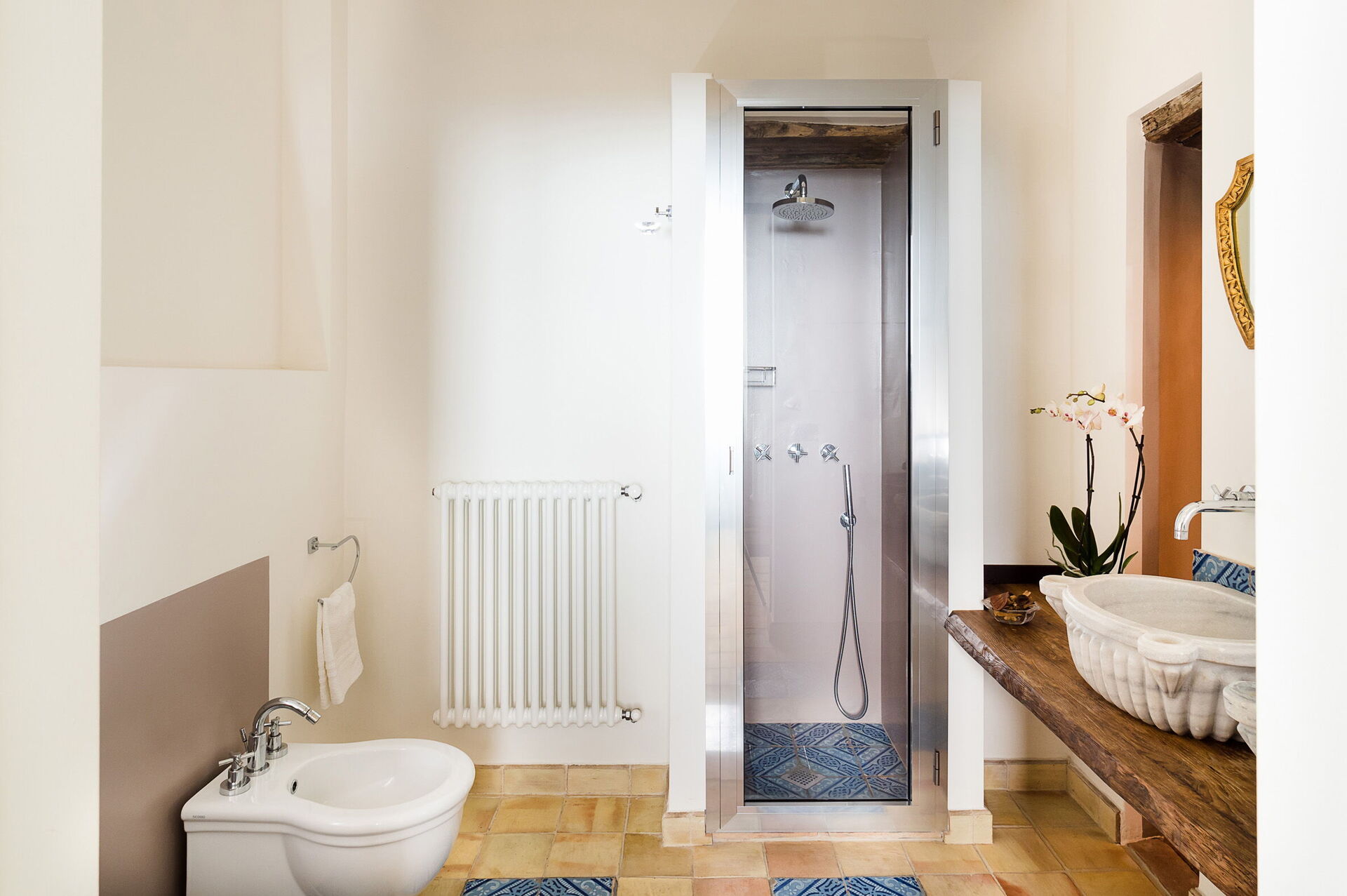 Disse stilfulde interiører kombinerer det moderne funktionelle med traditionelle elementer, såsom originale stenvægge. I stueetagen i huset er stue, spisestue, køkken og badeværelse. På første sal er der tre soveværelser med eget badeværelse og i nederste etage i det tidligere vinpresserum er wellness-området. De to anneks har henholdsvis en suite med dobbeltseng på loftet (Casetta) og et soveværelse med dobbeltseng (Dependance), begge med ensuite badeværelser.