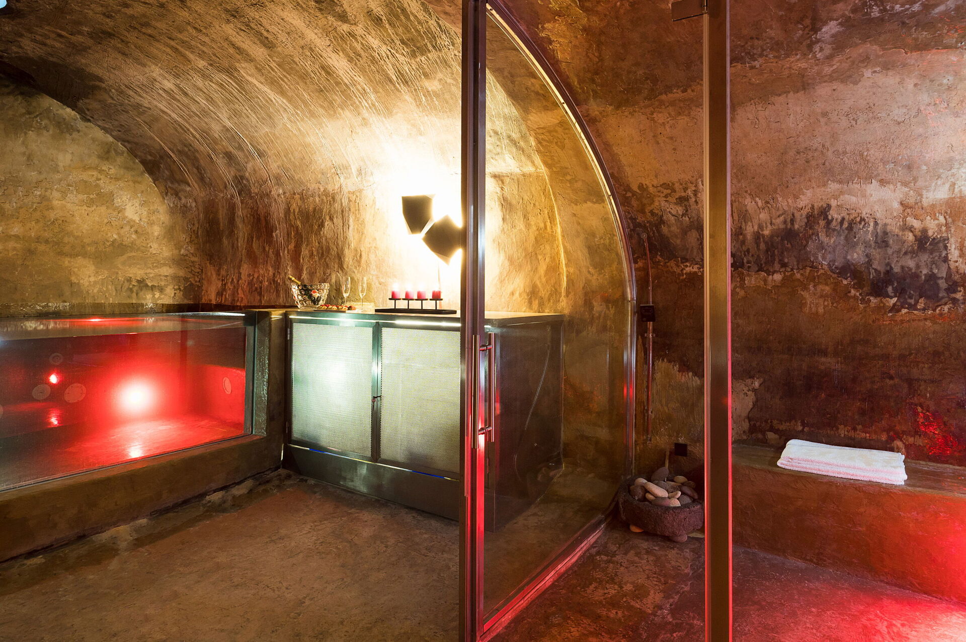 Nedre etage: wellness-område med spabad, saltgrotte, sauna, tyrkisk bad, multi-sensorisk bad, afslappende område