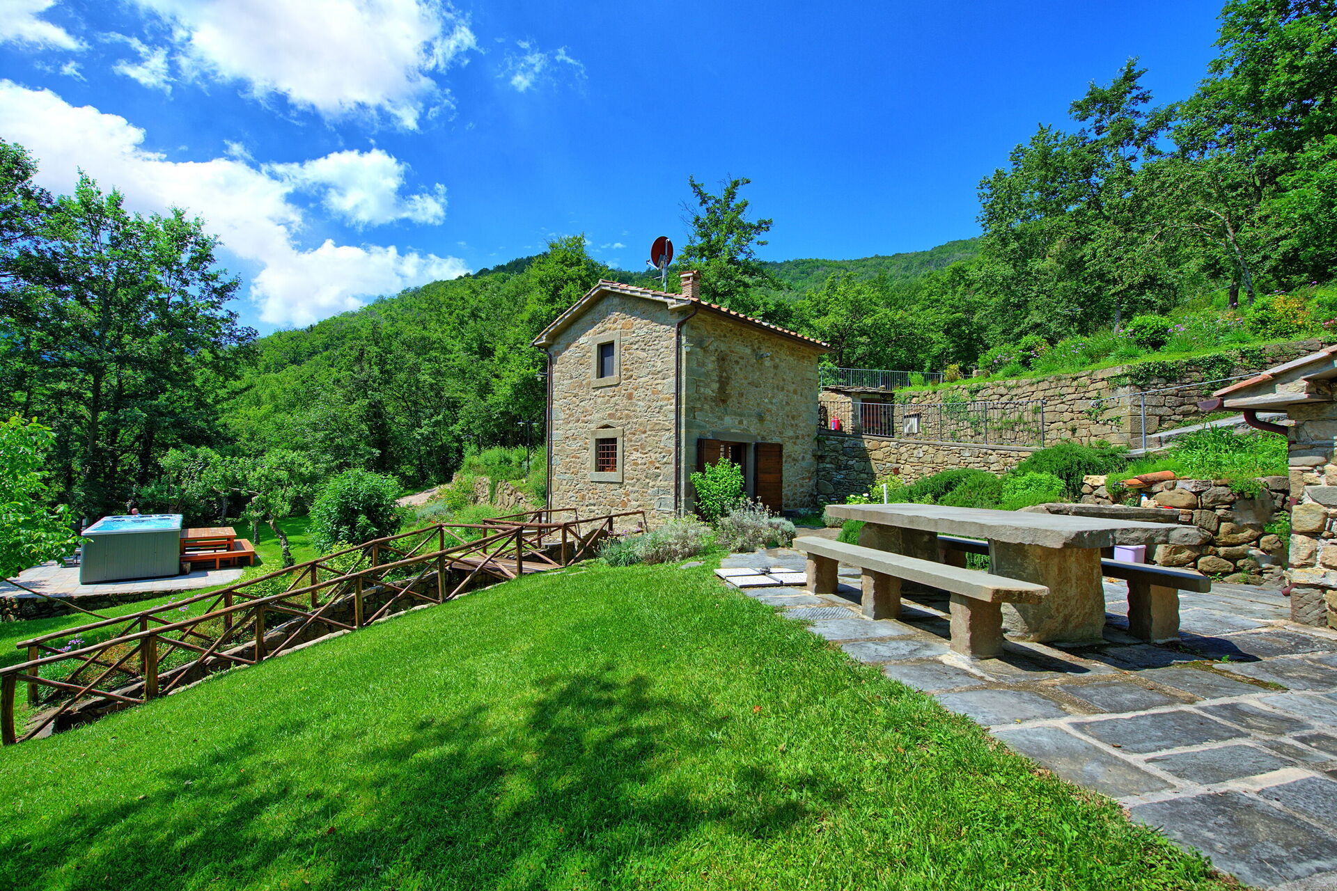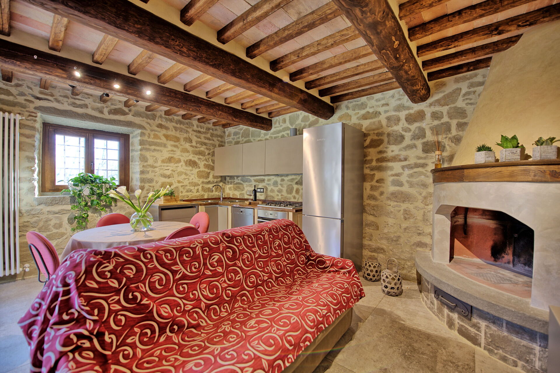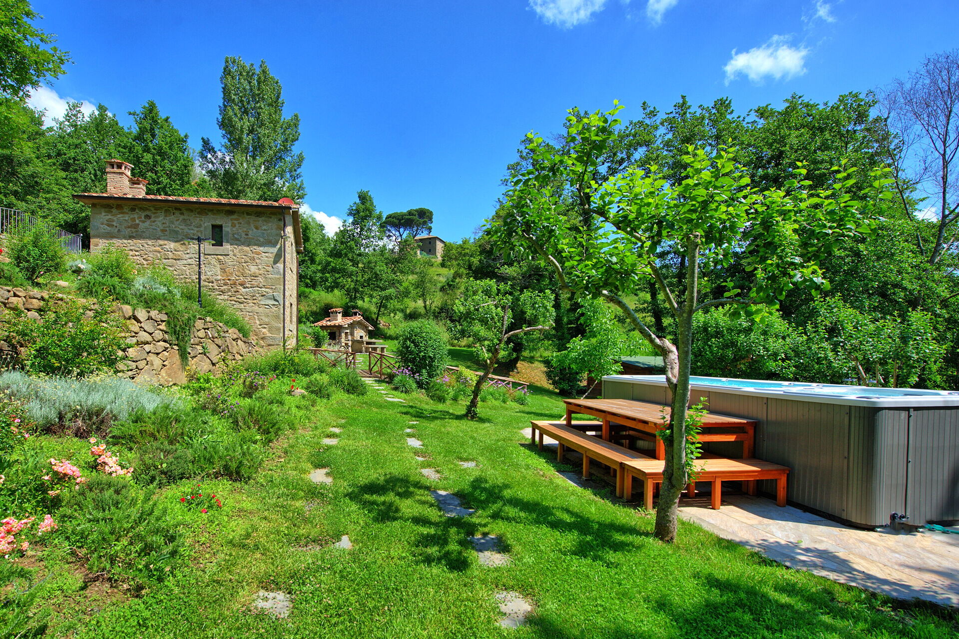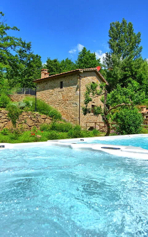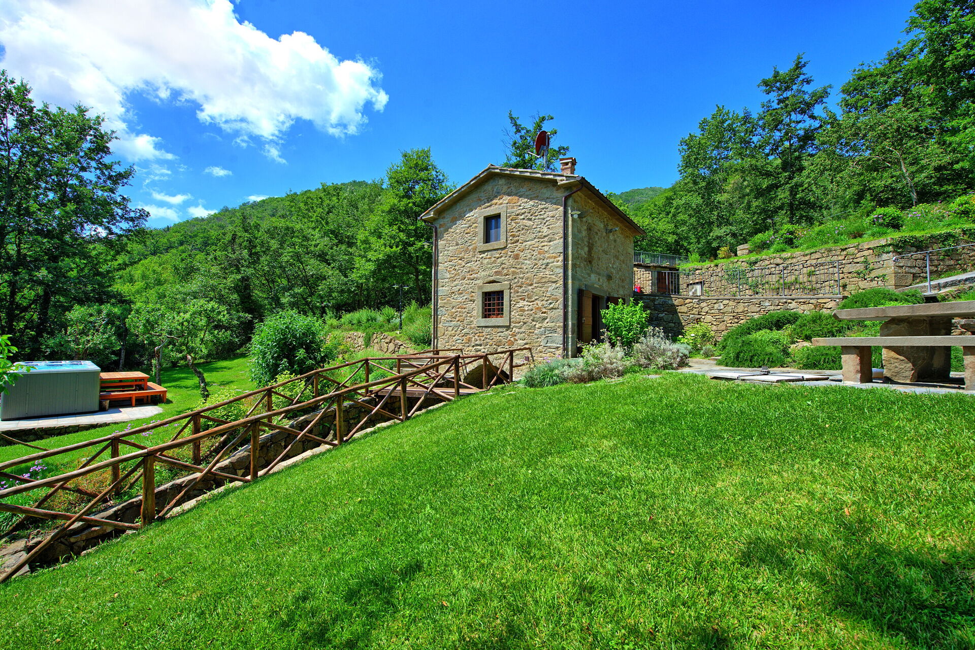 Det unikke kommer fra ejendommens oprindelse som en gammel vandmølle i det åbne landskab i Cortona-bakkerne. Vandmøllen er blevet restaureret til et komfortabelt landsted med alle faciliteter. Huset er moderne indrettet, og en del af stuegulvet er lavet af glas, så du kan se rindende vand fra åen, der plejede at drive møllevingerne.