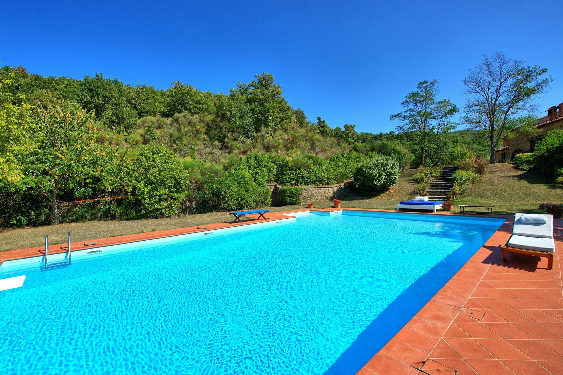 Afstande: Antria med dagligvarer 2 km, Arezzo med købmandsforretninger og togstation 12 km, den charmerende by Cortona 40 km, Firenze 70 km, Rom 150 km.