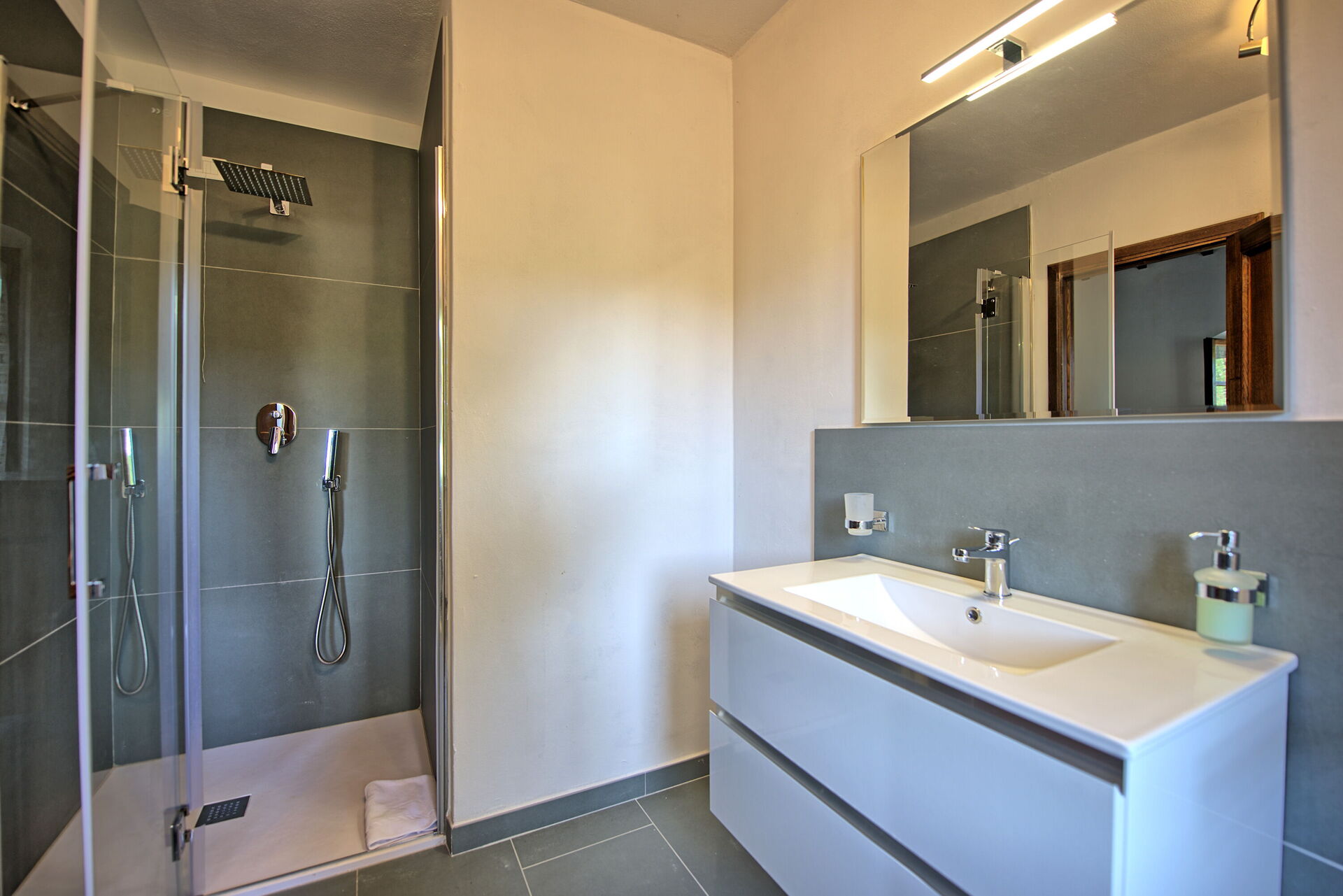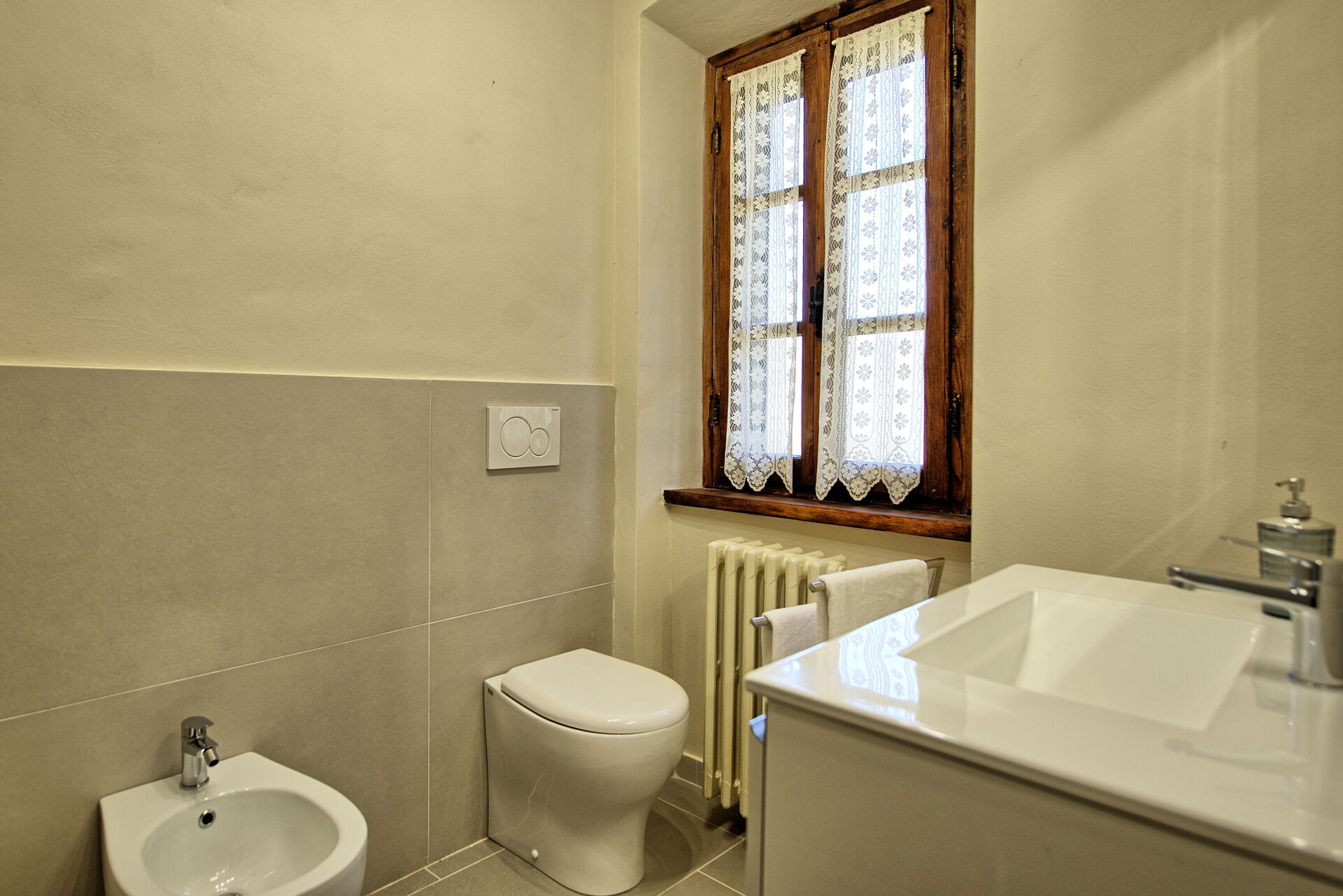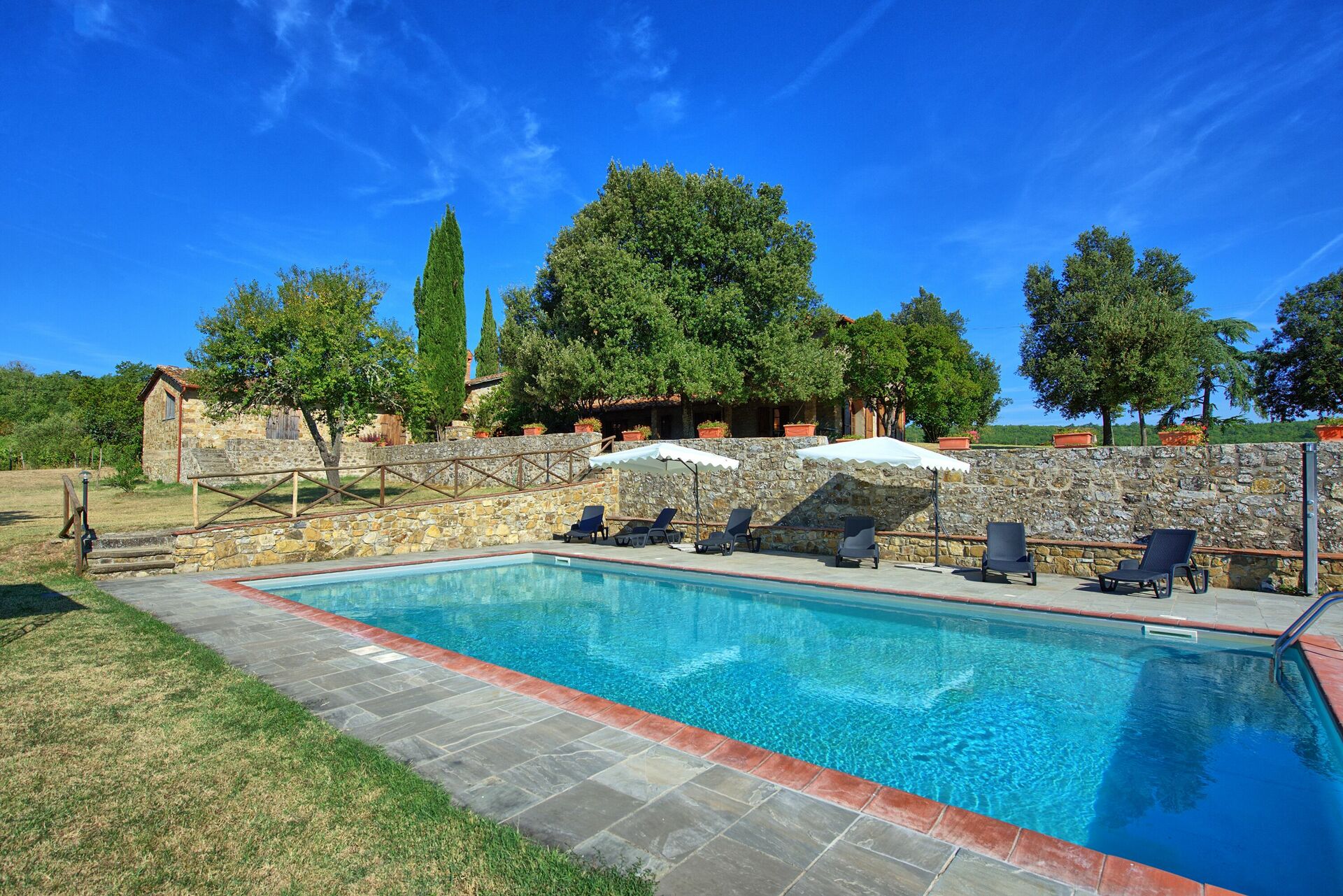 The property is in a beautiful but quiet location surrounded by vineyards and spectacular Tuscan scenery. The apartment was spacious and generally cool inside despite the high temperatures outside. The pool area is superb with extensive paving and plenty of sun-loungers