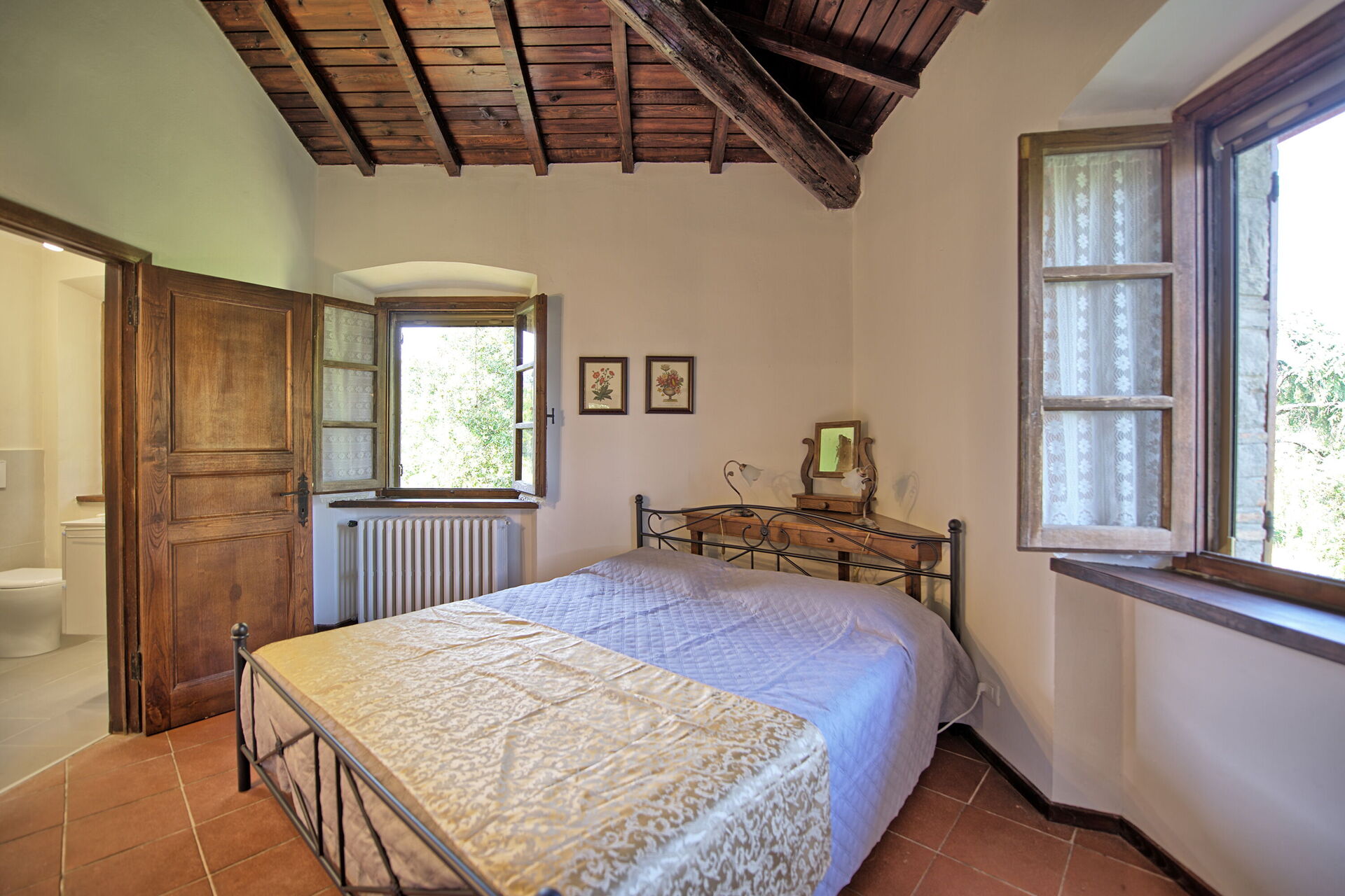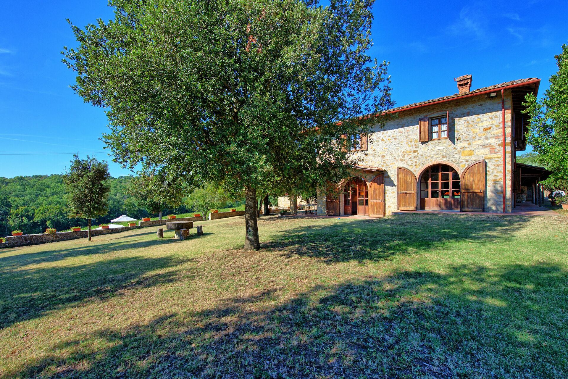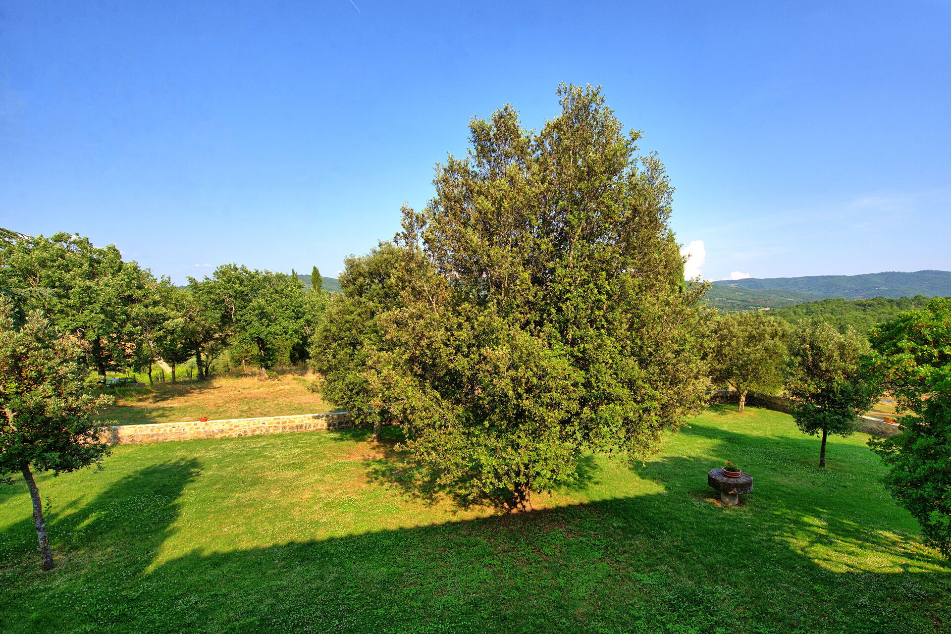 Feriehuset ligger frodigt i Toscana og har en skøn grøn have. Damen, der passer huset, bor på grunden ved siden af ​​i et anneks, fuldstændig diskret.