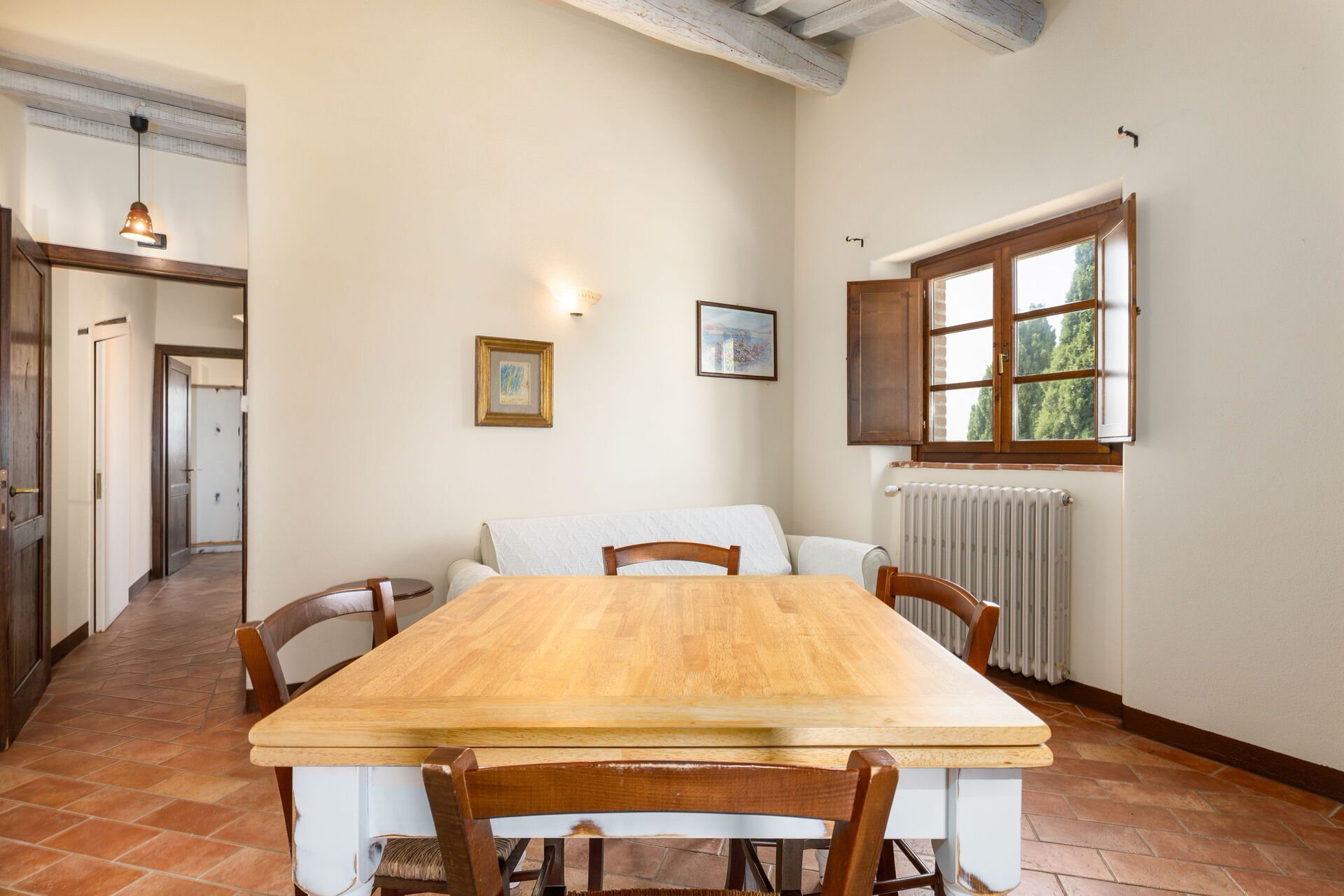Casale Santa Francesca er en smuk ejendom med swimmingpool. Perfekt til en afslappende og mindeværdig ferie i en smuk del af Toscana. Val d'Orcia ligger syd for Siena og er kendt for de charmerende byer i Pienza, Montalcino, Montepulciano, Bagno Vignoni, Bagni San Filippo, San Quirico dOrcia. Dalen er på UNESCOs verdensarvsliste af beskyttede kulturelle landskaber.