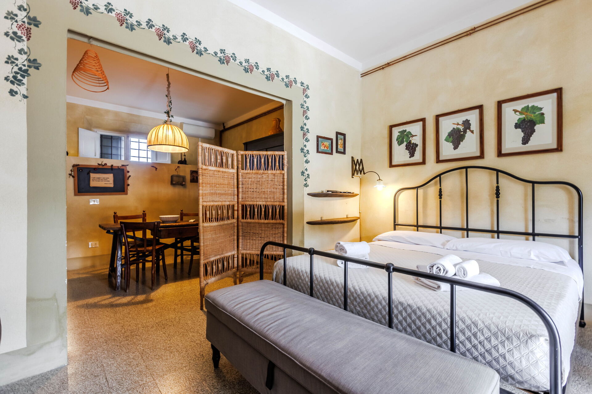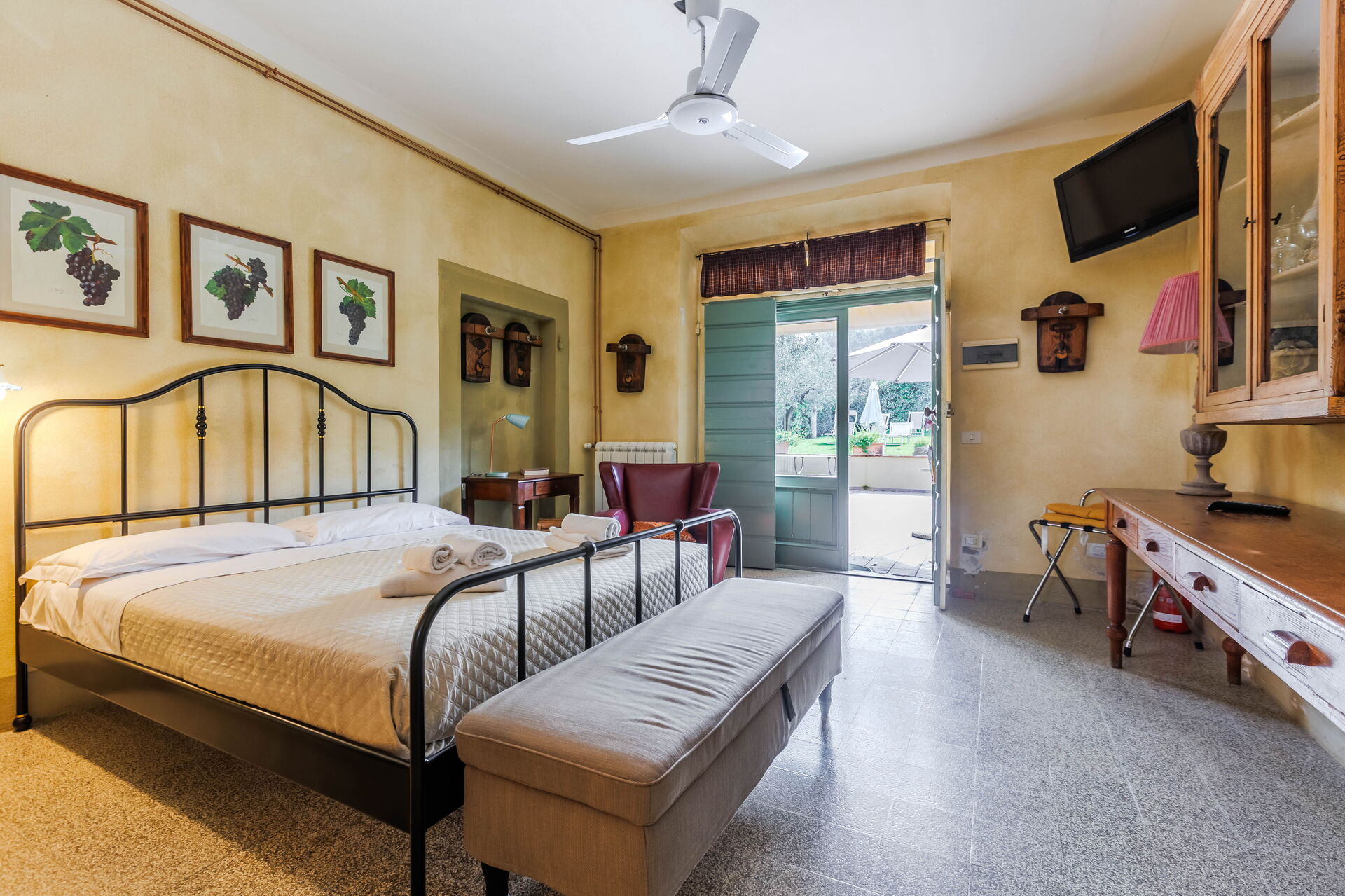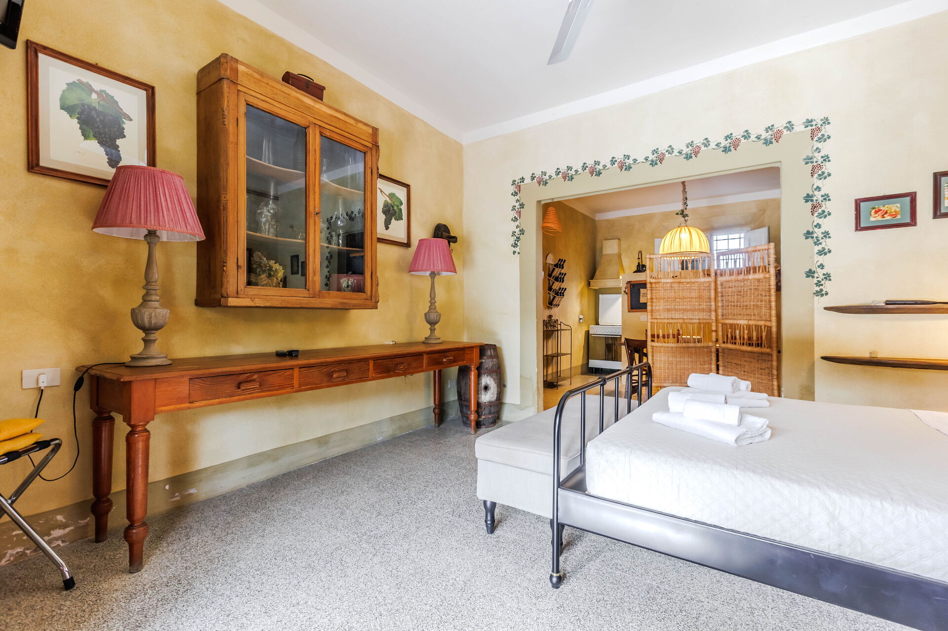 The room was very charming, fully equipped for our stay, and the surroundings were beautiful with the vineyards and the olive trees.