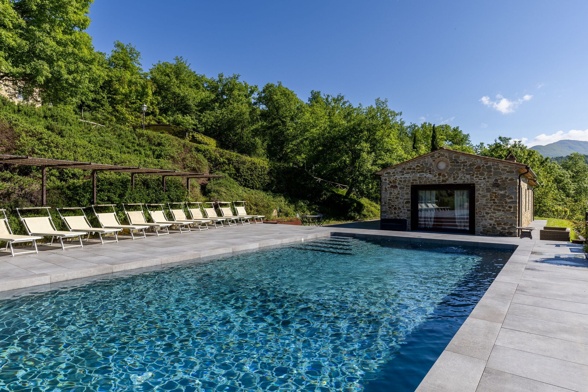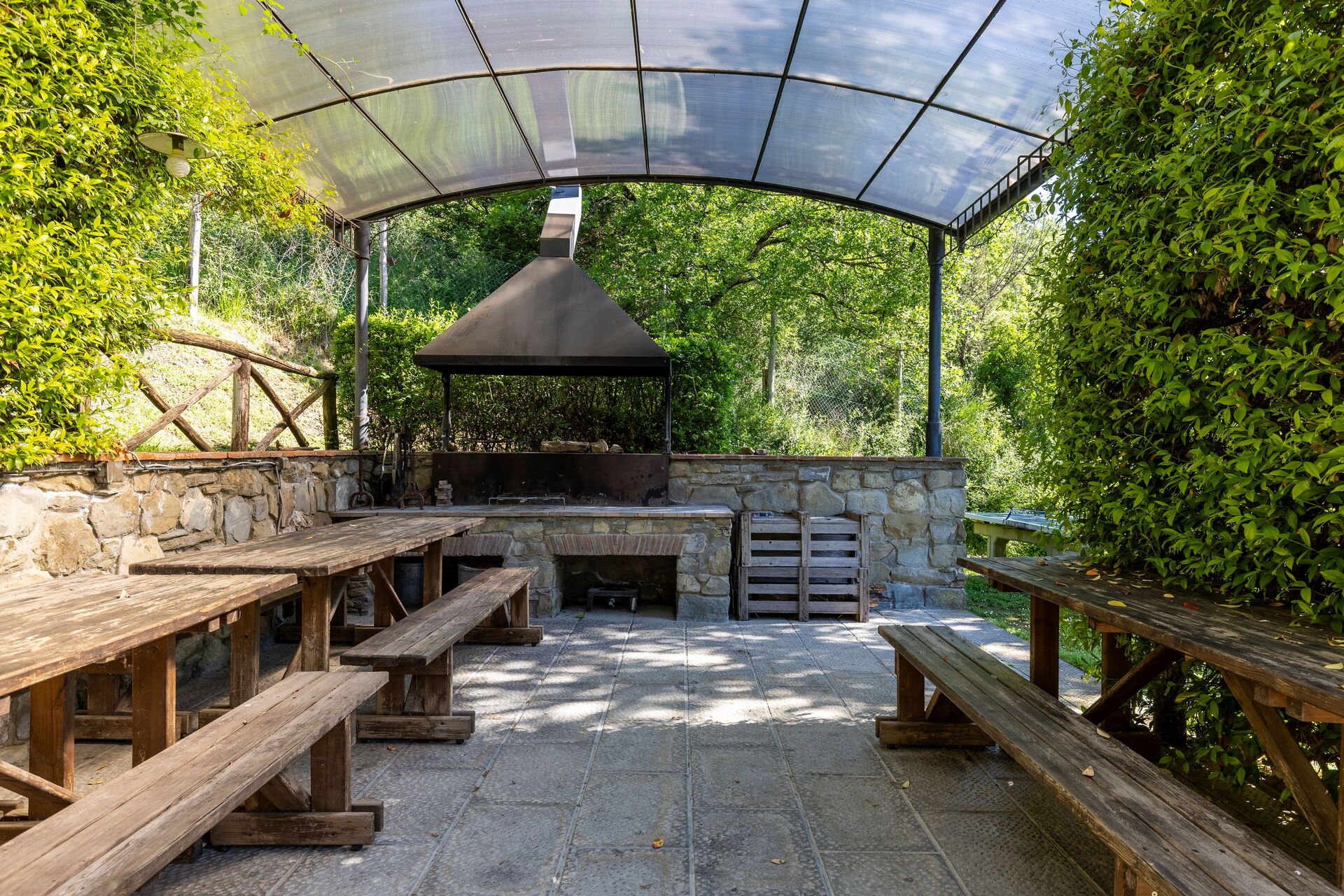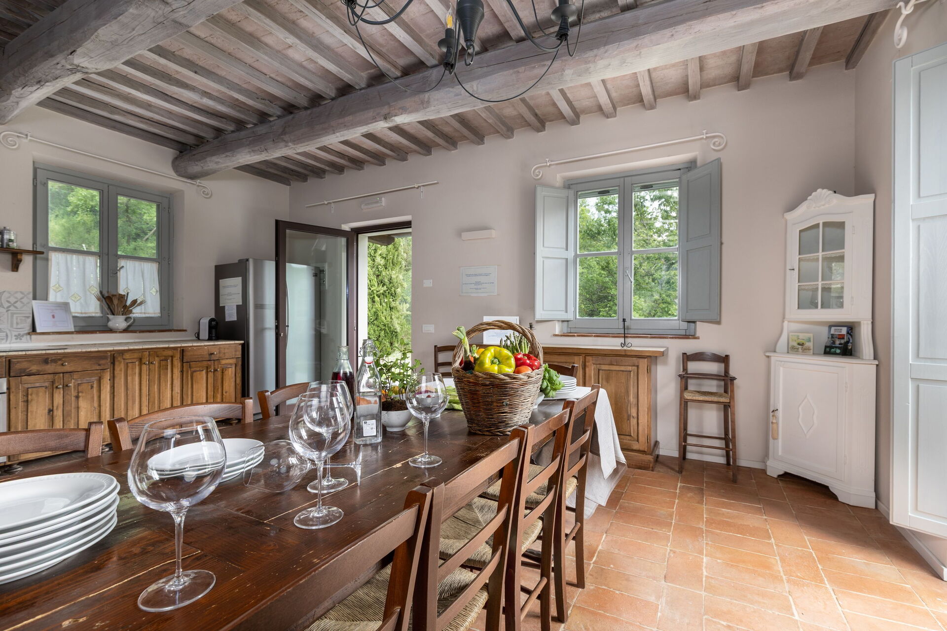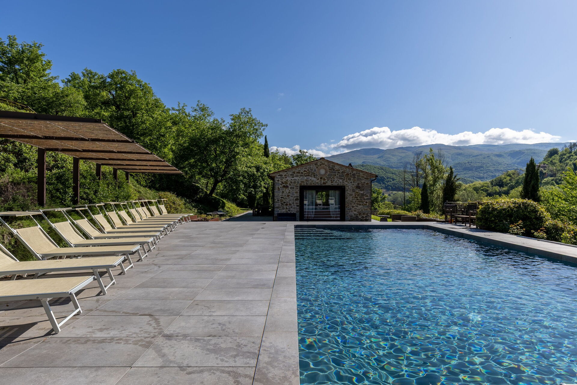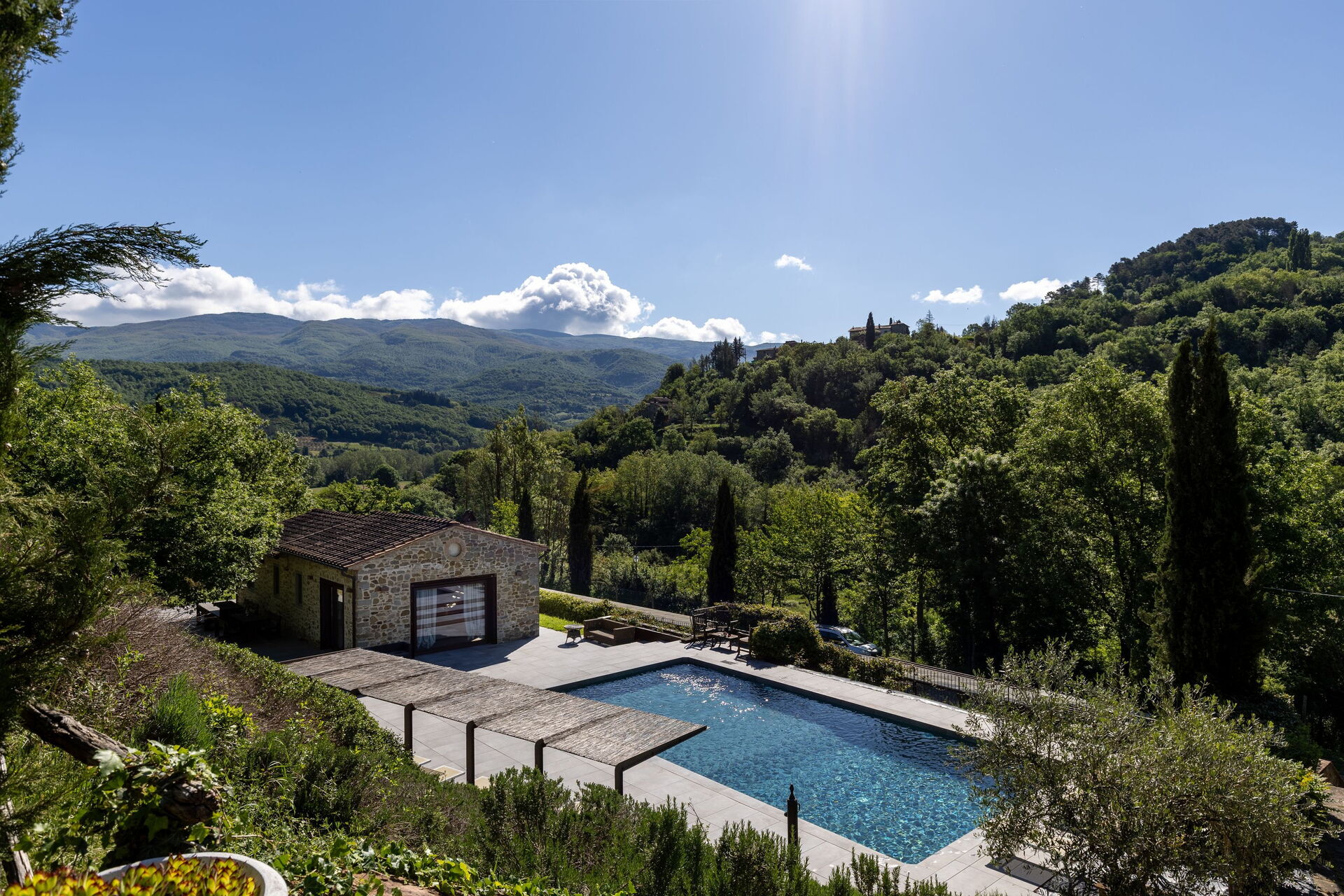 Smukt landhus beliggende på landet området nord om den dejlige by Arezzo (18 km væk). Feriehuset er blevet fuldstændig restaureret og forvandlet til en indbydende indkvartering med mulighed for overnatning op til 16/20 gæster. Ejendommen består af en hovedvilla og 2 restaurerede tidligere stalde, som begge er forvandlet til separate enheder (alle enheder er udlejes kun samlet som en privat villa). Et stort fællesrum med køkken hjørne beliggende i stueetagen i hovedhuset er til rådighed for felles måltider. Huset er pænt møbleret i en rustik stil. Udenfor kan gæsterne nyde brug af en indhegnet have, privat pool med solterrasse og en dejlig grillplads med en stor møbleret havepavillon, borde og stole.