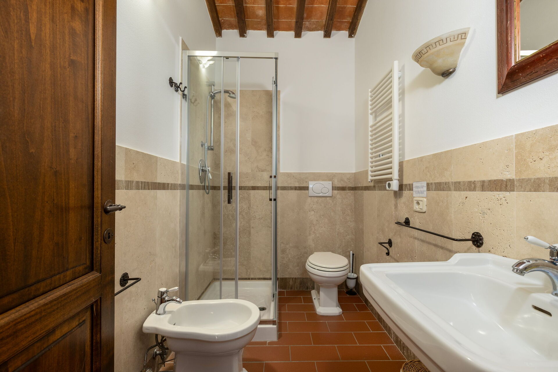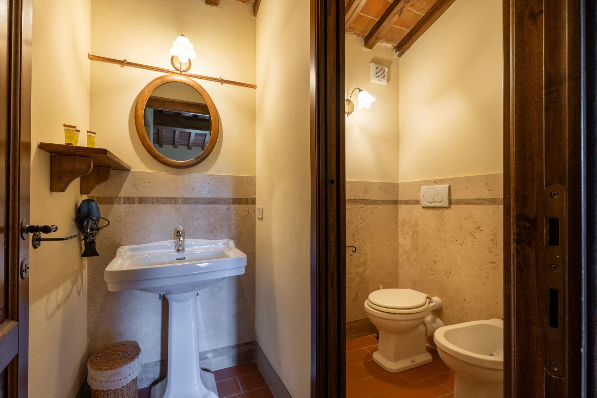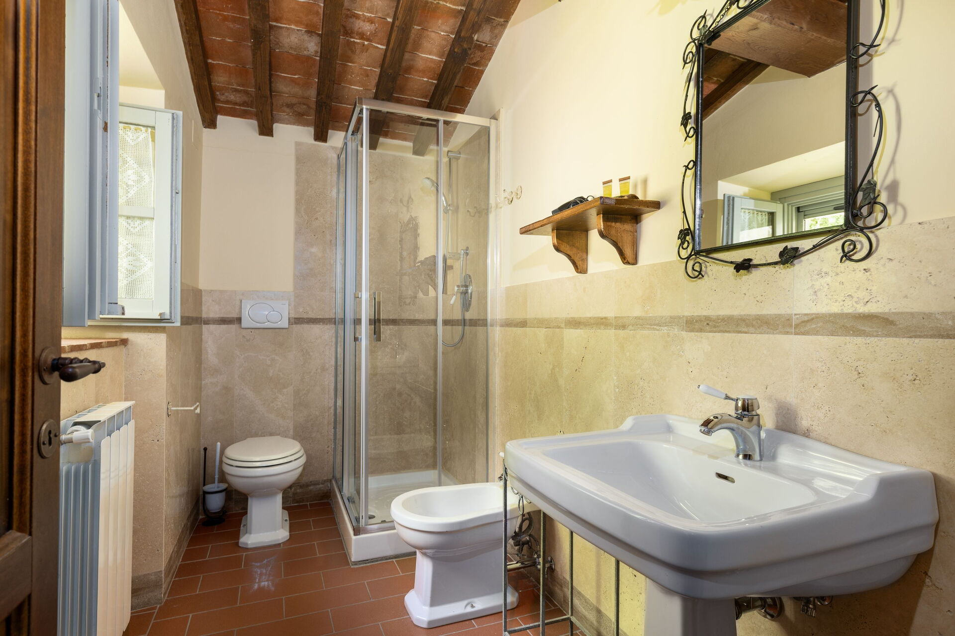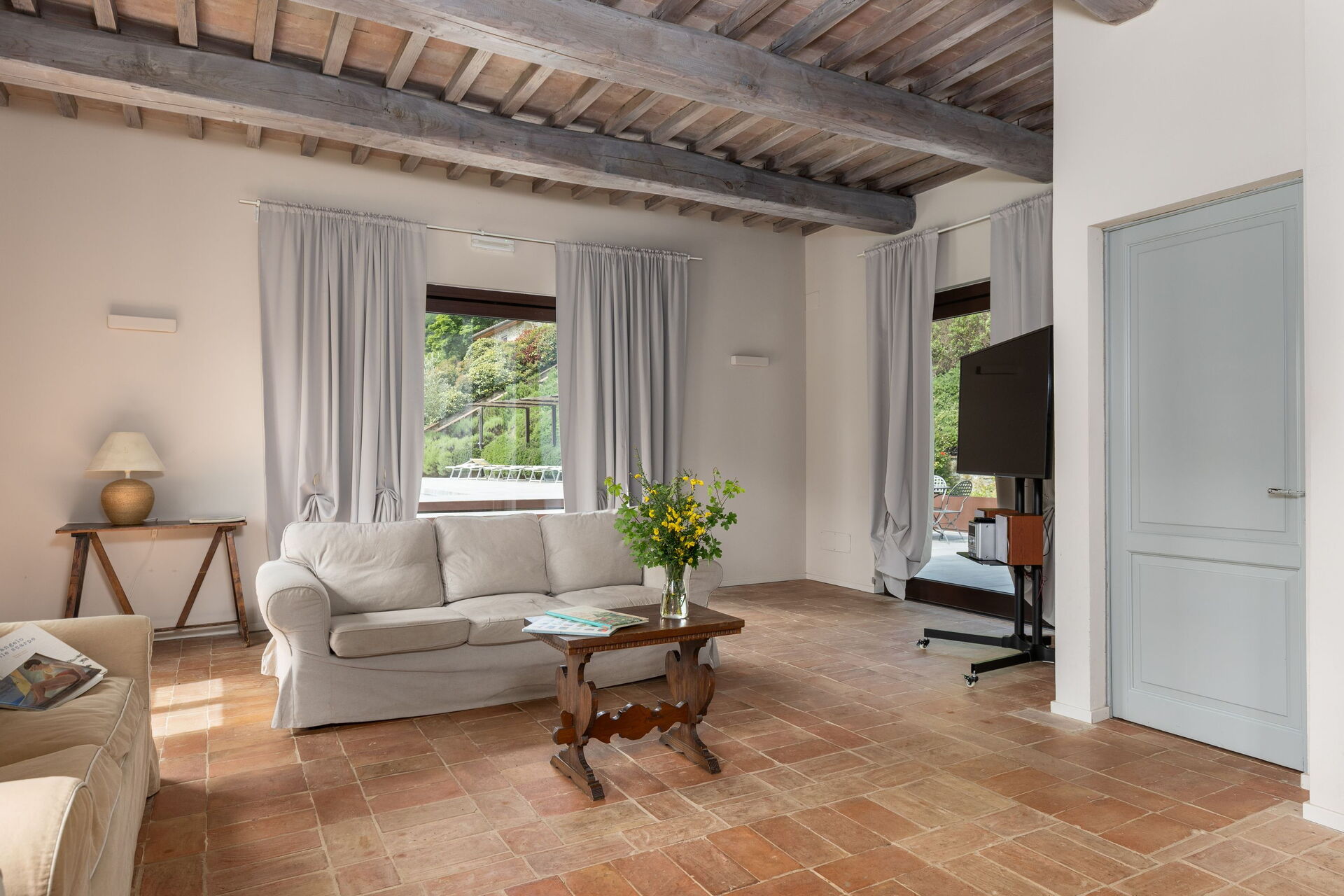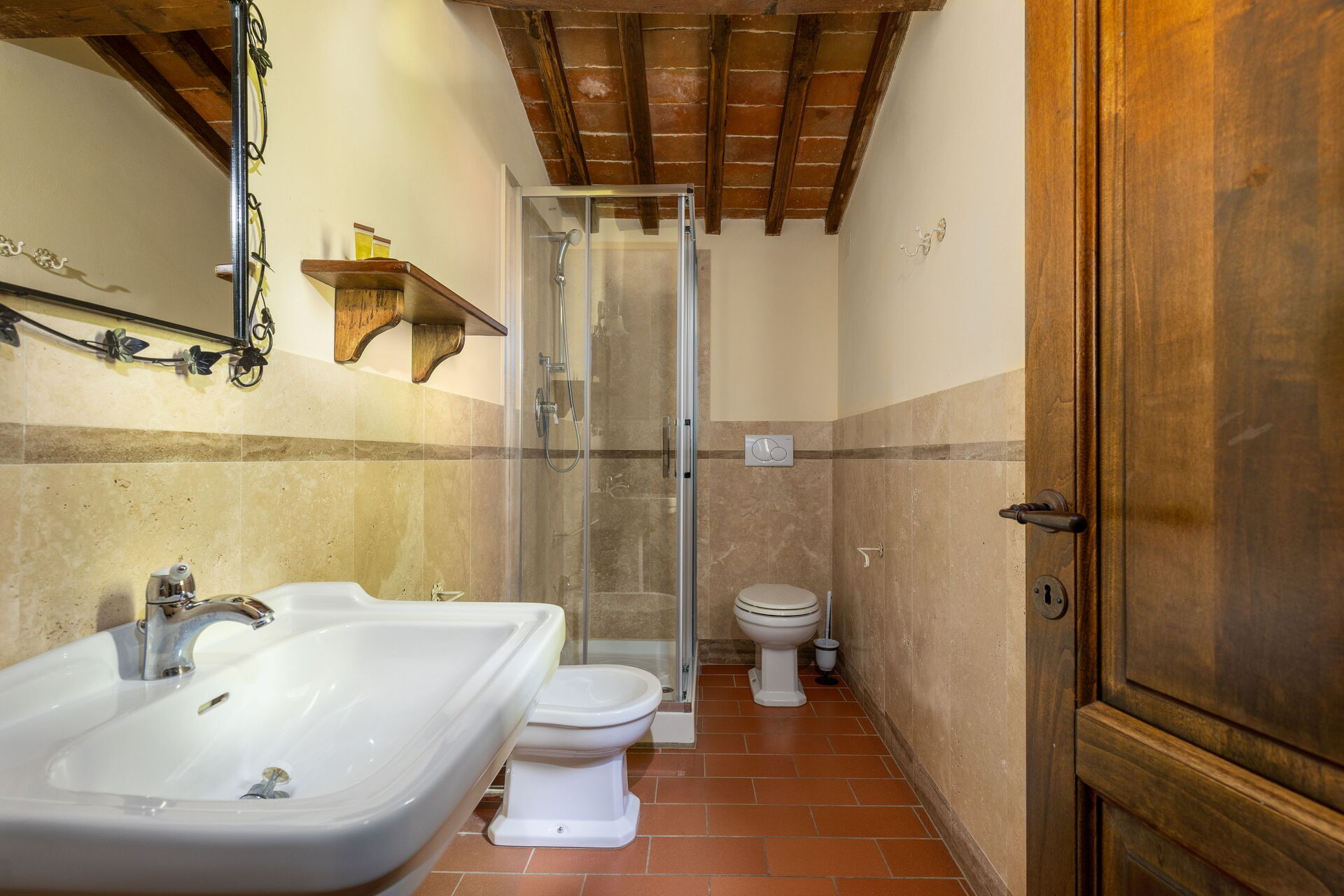 Smukt landhus beliggende på landet området nord om den dejlige by Arezzo (18 km væk). Feriehuset er blevet fuldstændig restaureret og forvandlet til en indbydende indkvartering med mulighed for overnatning op til 16/20 gæster. Ejendommen består af en hovedvilla og 2 restaurerede tidligere stalde, som begge er forvandlet til separate enheder (alle enheder er udlejes kun samlet som en privat villa). Et stort fællesrum med køkken hjørne beliggende i stueetagen i hovedhuset er til rådighed for felles måltider. Huset er pænt møbleret i en rustik stil. Udenfor kan gæsterne nyde brug af en indhegnet have, privat pool med solterrasse og en dejlig grillplads med en stor møbleret havepavillon, borde og stole.