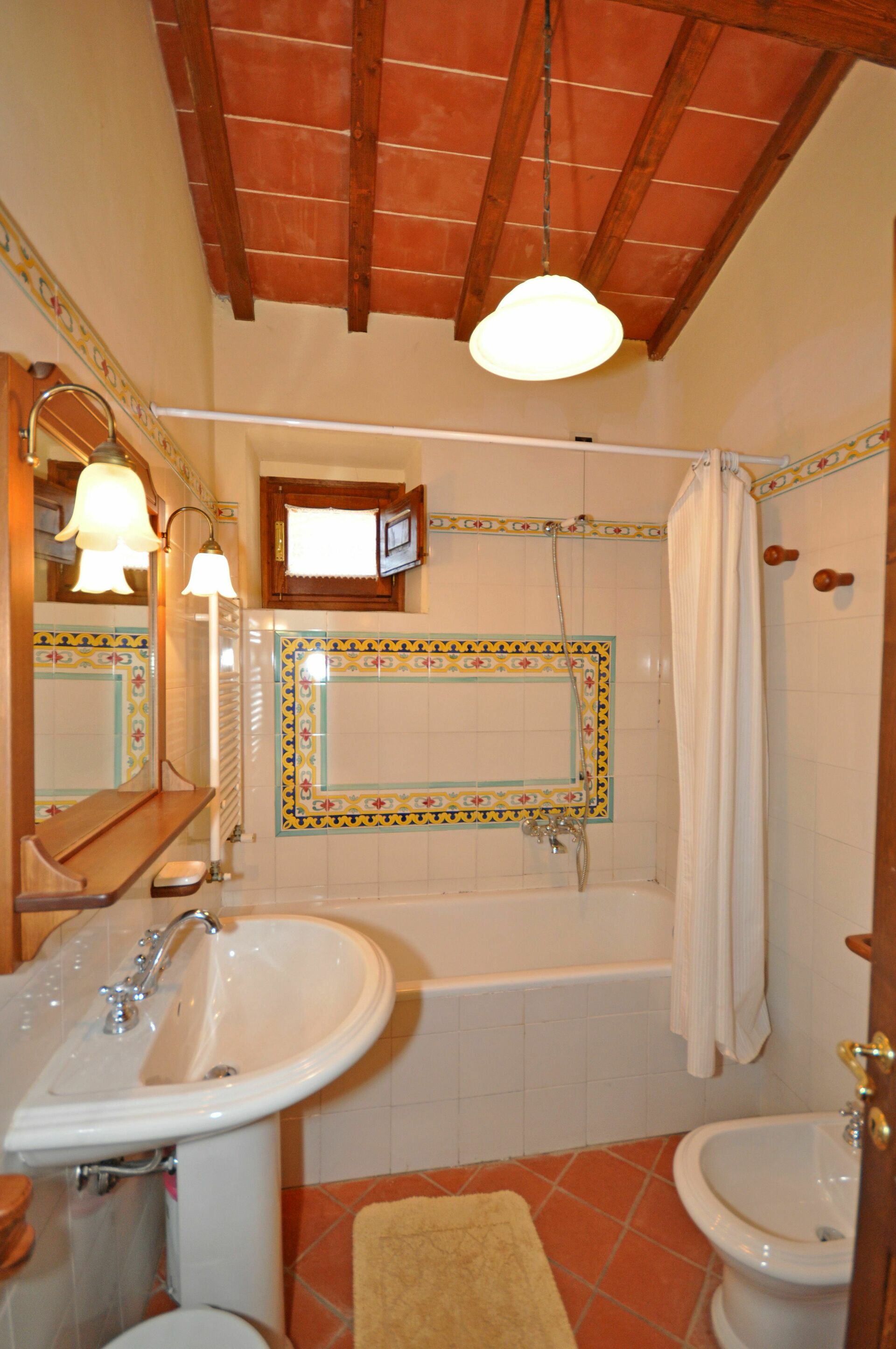 Første sal: soveværelse med dobbeltseng, værelse med 2 enkeltsenge, badeværelse med badekar (hårtørrer).