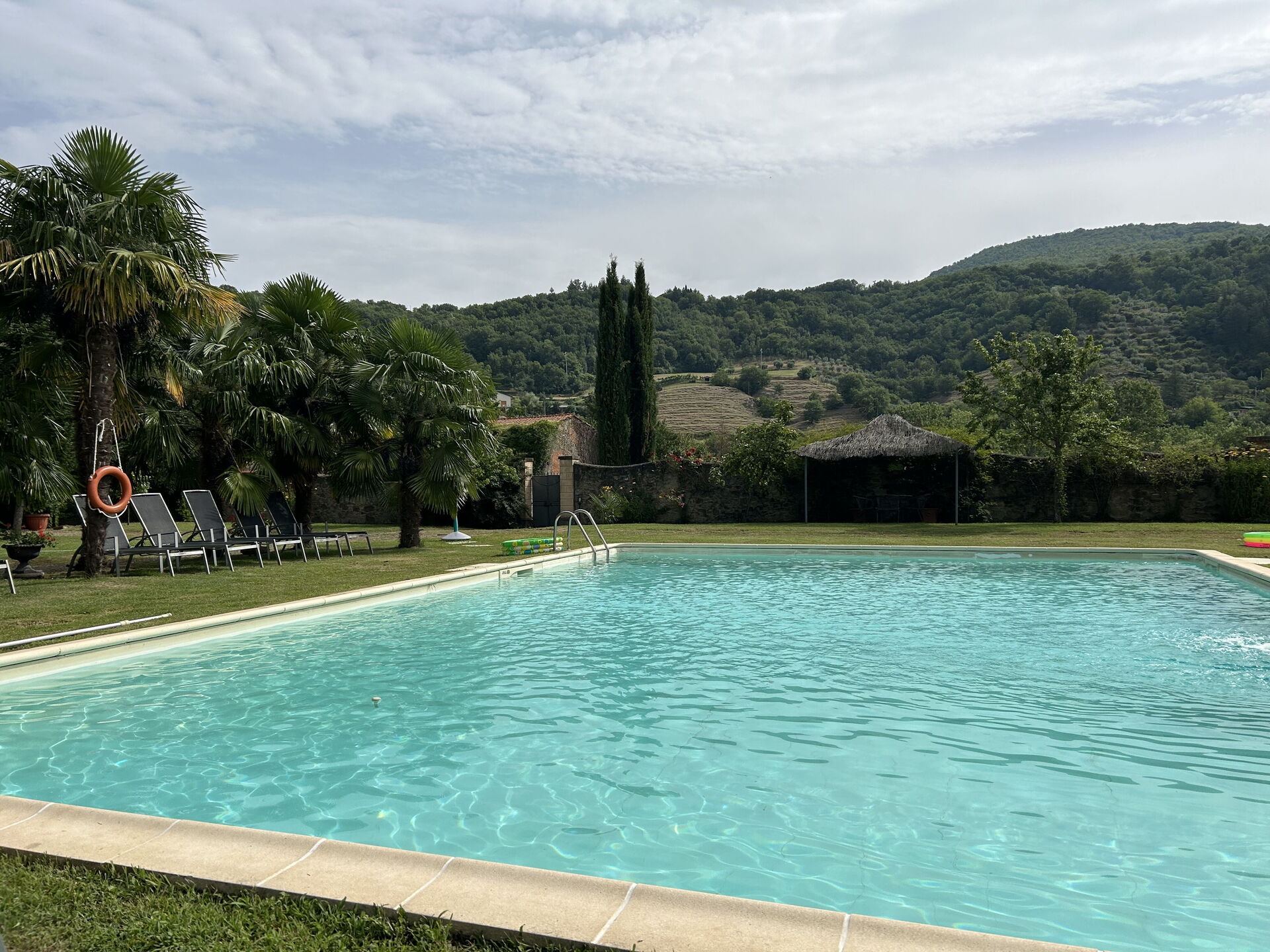 We were a party of 13, 7 adults and 6 kids under 10. Overall experience was very good. House is large, attractive and quiet. It is close to a local railway line into Arezzo but we didnt hear noise from trains. The garden is beautiful, large and walled off entirely, great for kids. The pool is a good size and cleaned regularly. It's not heated. There are many places to sit and eat outside and basic BBQ set-up in a courtyard. The main house has large bedrooms and most have bathrooms located across the hall which are nice, clean and towels provided are new. No shortage of hot water. All windows have closable wooden shutters and the beds are comfortable. It was August when we were there and it was hot. There are no fans in the bedrooms which seems like an easy fix to increase comfort. The kitchen is small and the pots/pans etc are pretty tired. There is one oven and a 4 ring gas surface. It all works fine but is very tight for space catering for a large group. There are plenty of stove-top espresso makers and plates/bowls etc, but dont expect too much overall here. No hand-blender, food processor etc. Silvia who is the lady in charge on-site is excellent and responsive. She has great ideas, recommendations and was top-class. We did the Tuscan dinner on-site one night and were so glad - it was really fun and the food was super. Strong recommend. Baciano (the house) do make their own wine and oil and you can buy it from the small store on-site. For a family gathering where people need a decent amount of space and a nice garden to laze and play in, this is a good choice of Villa. A few simple things could really make it even more comfortable. Thanks Silvia for hosting us for a super week.