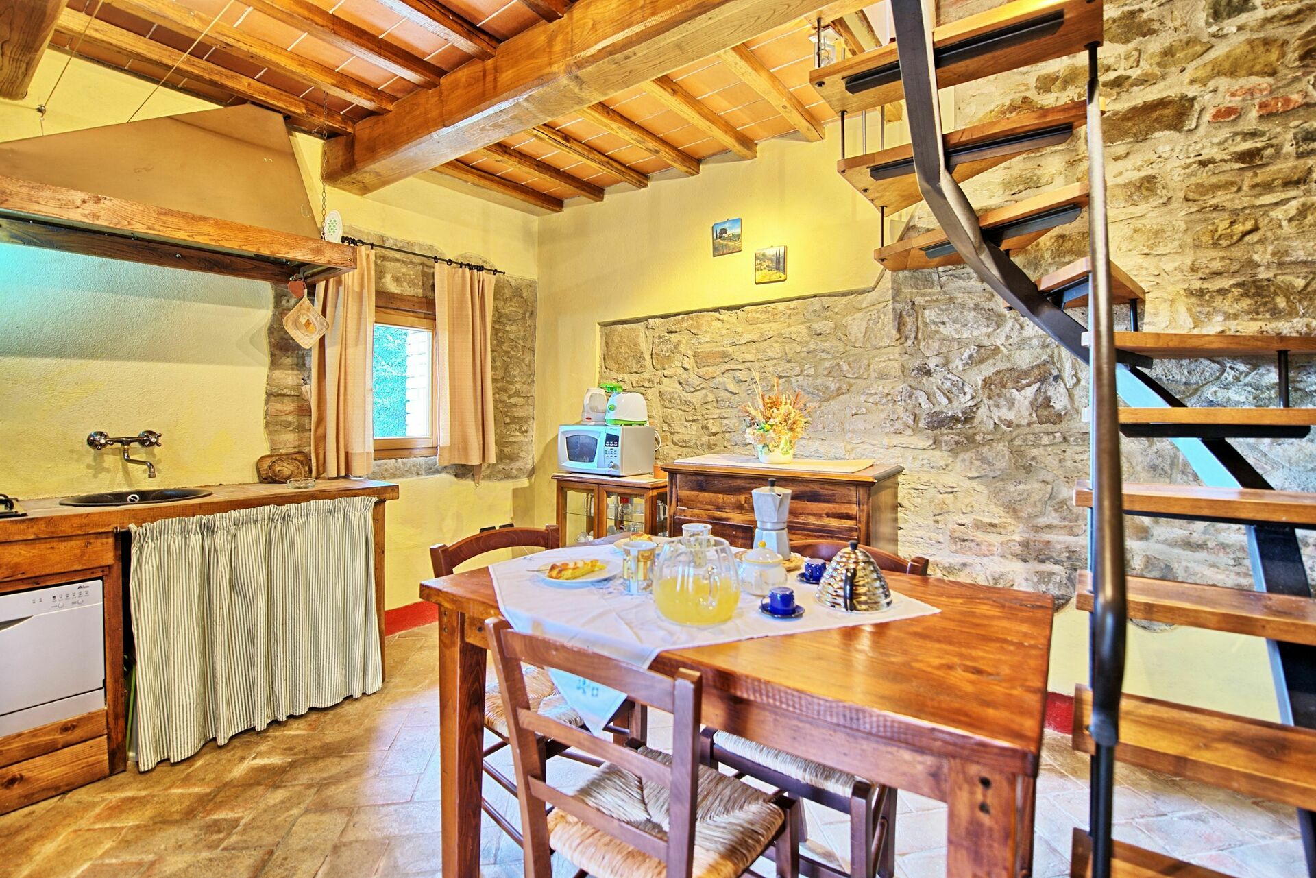 Stueetage: lille stue med spiseplads og køkkenhjørne (opvaskemaskine, mikrobølgeovn).